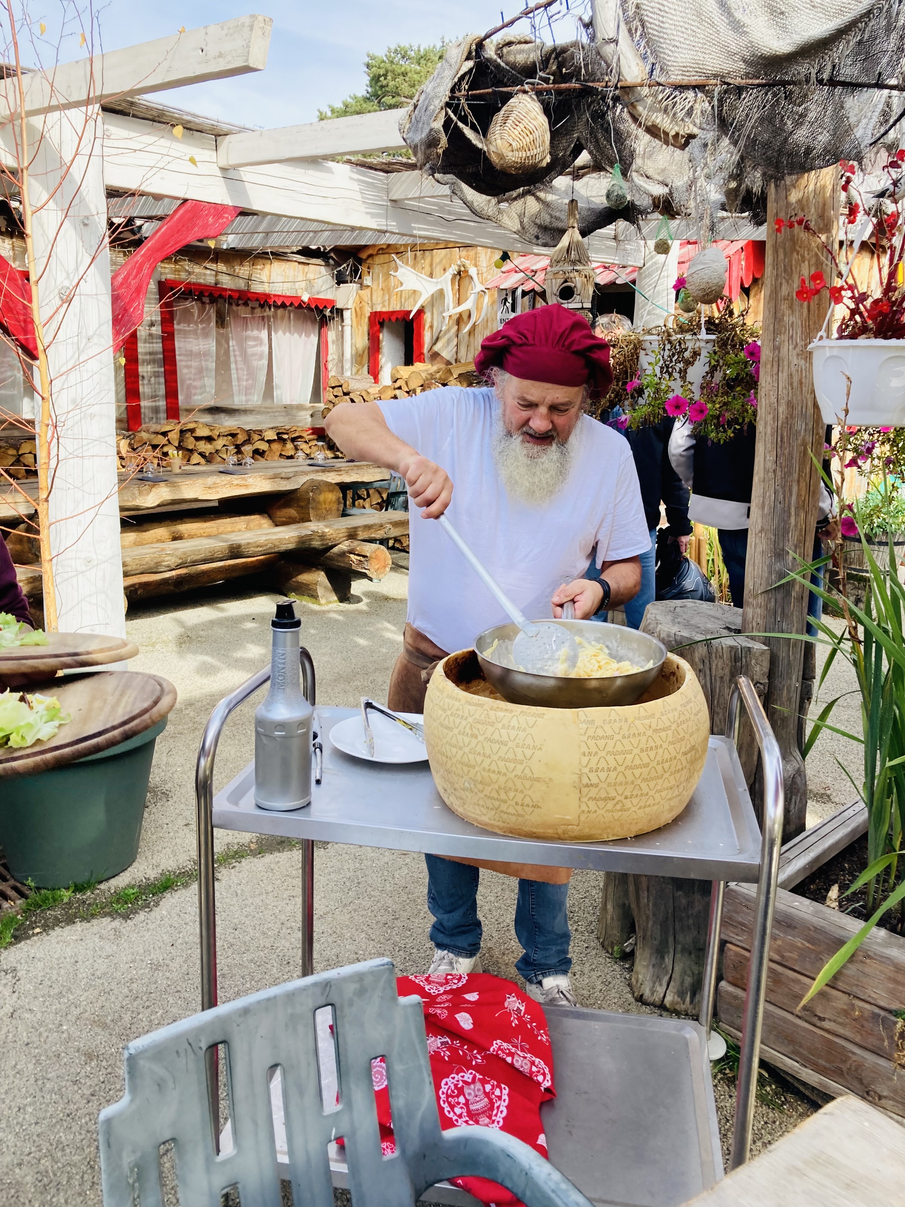 Très bon moment en terrasse, le cadre est superbe et reposant, très bon repas, plaisir de voir le chef préparer les gnocchis dans la meule de parmesan, un délice ! À recommander !