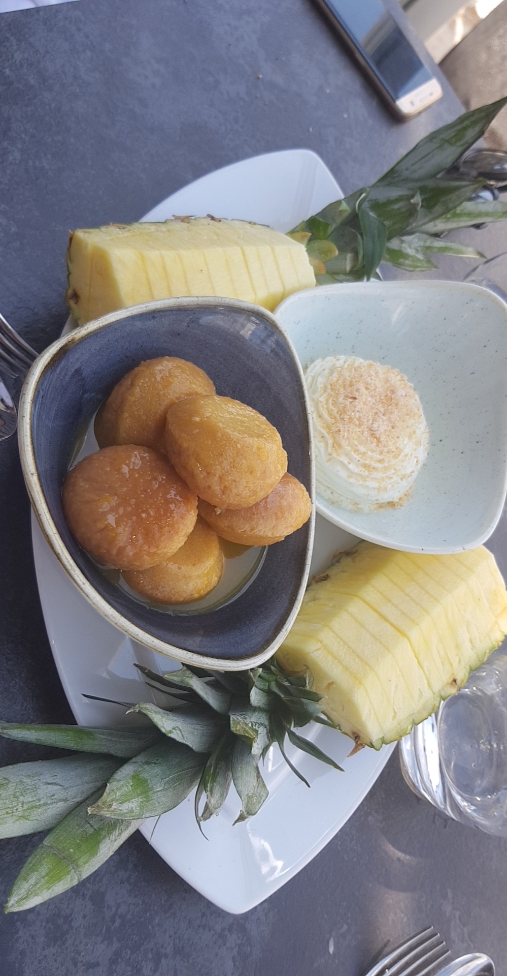 C'est le restaurant de plage qui était rattaché à notre hôtel Thalazur, la carte était donc la même que celle de notre room service (à quelques plats près je pense) On y a déjeuné le jour de notre arrivée puis un ou deux autres midis, je n'ai pas trouvé ça fou et surtout extrêmement cher pour les plats proposés. C'était bon mais sans plus, avec un service ultra-pressé et pas hyper attentif à ses clients.