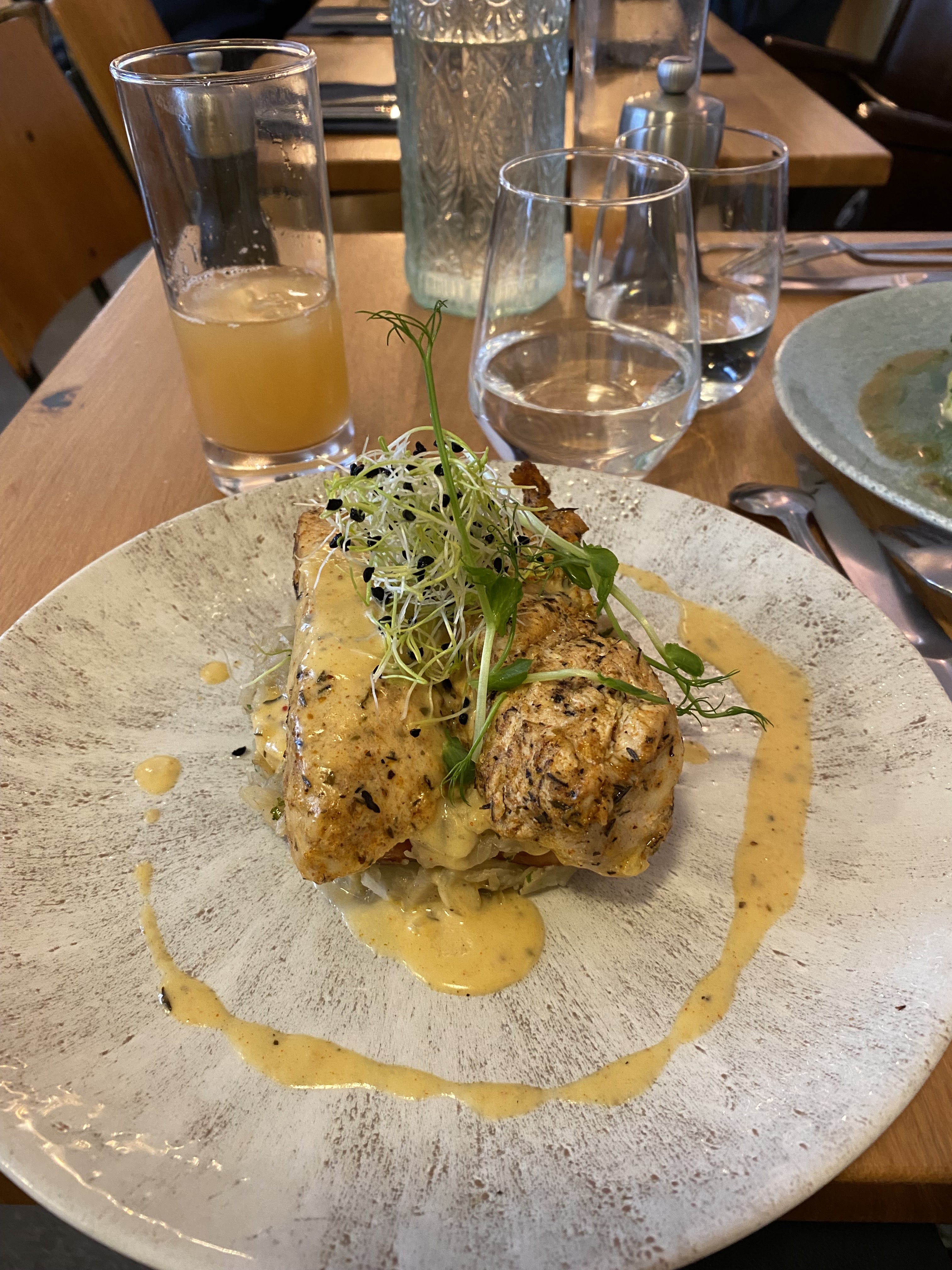 Je donnerais 5 étoiles pour le service absolument adorable ! Très attentionné, toujours souriant ! Le vin était super aussi. L'ambiance est sympa, un peu une touche scandinave. La nourriture était bonne, mais ne m'a pas vraiment fait perdre pied. J'aurais aimé qu'il y ait un peu plus de torsion. Mais peut-être que je suis juste un peu mécontent de mon choix de repas !