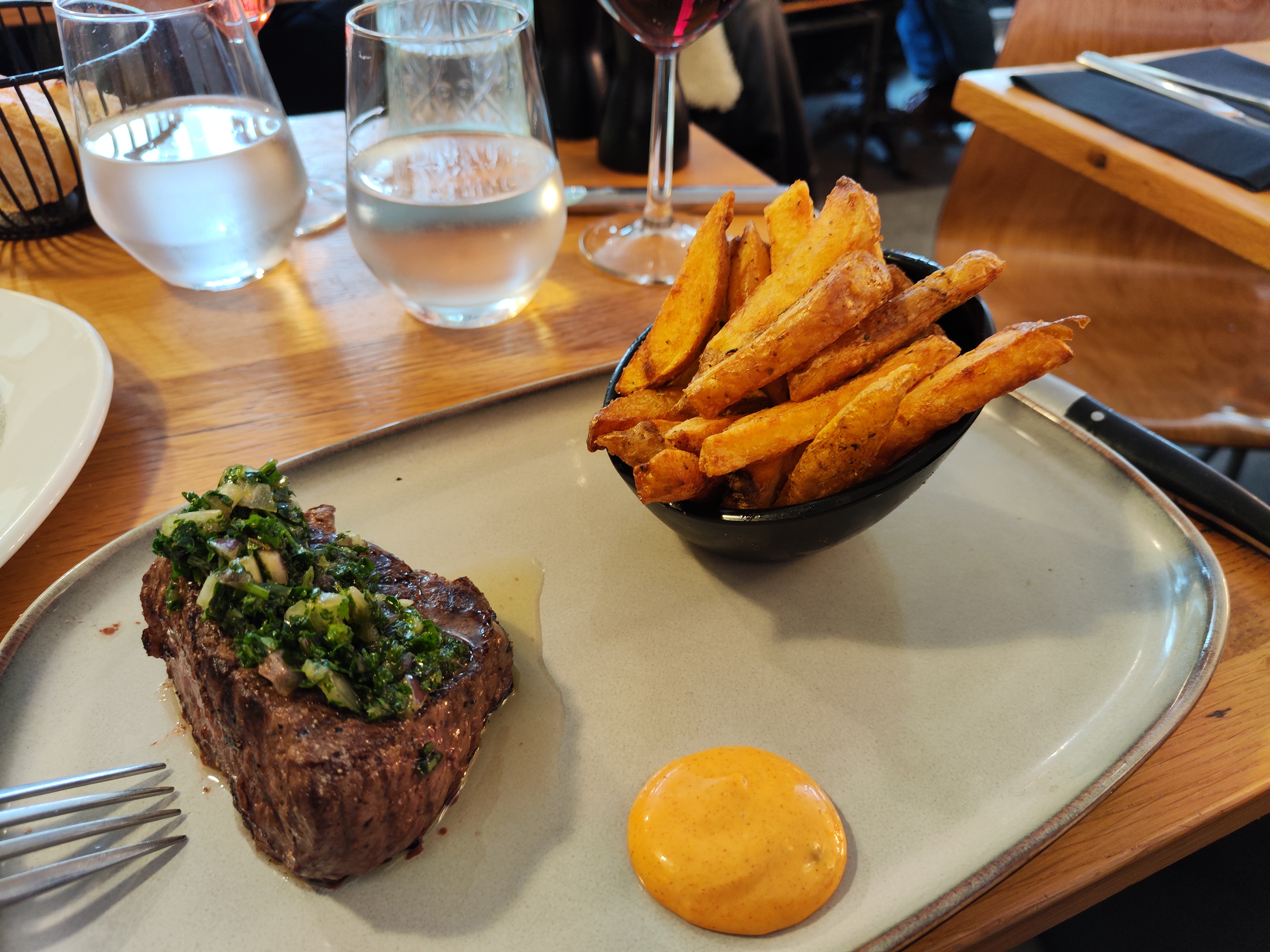 Une très belle carte avec des plats délicieux malgré une attente très exagérée de 1h15 ( annoncée 30mn à la commande) pour une cote de bœuf certes savoureuse et des frites maisons tops.
