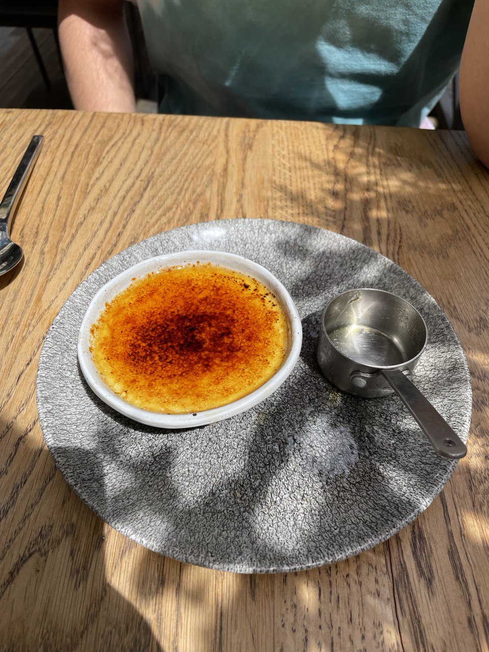 Bon déjeuner — j'ai eu la salade de légumes grillés et j'en ai apprécié chaque instant ! Crème brûlée de folie. Un endroit vraiment sympa hors des sentiers battus