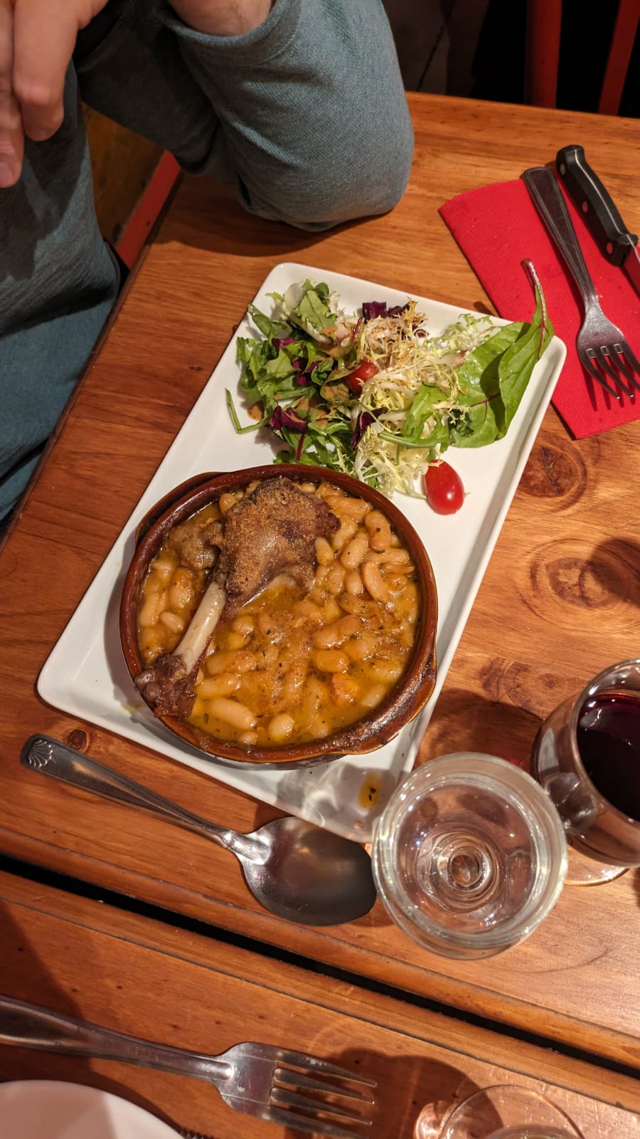 Un patron super sympa et un cassoulet au top bien cuit ainsi que du bon vin enfin tout es bien