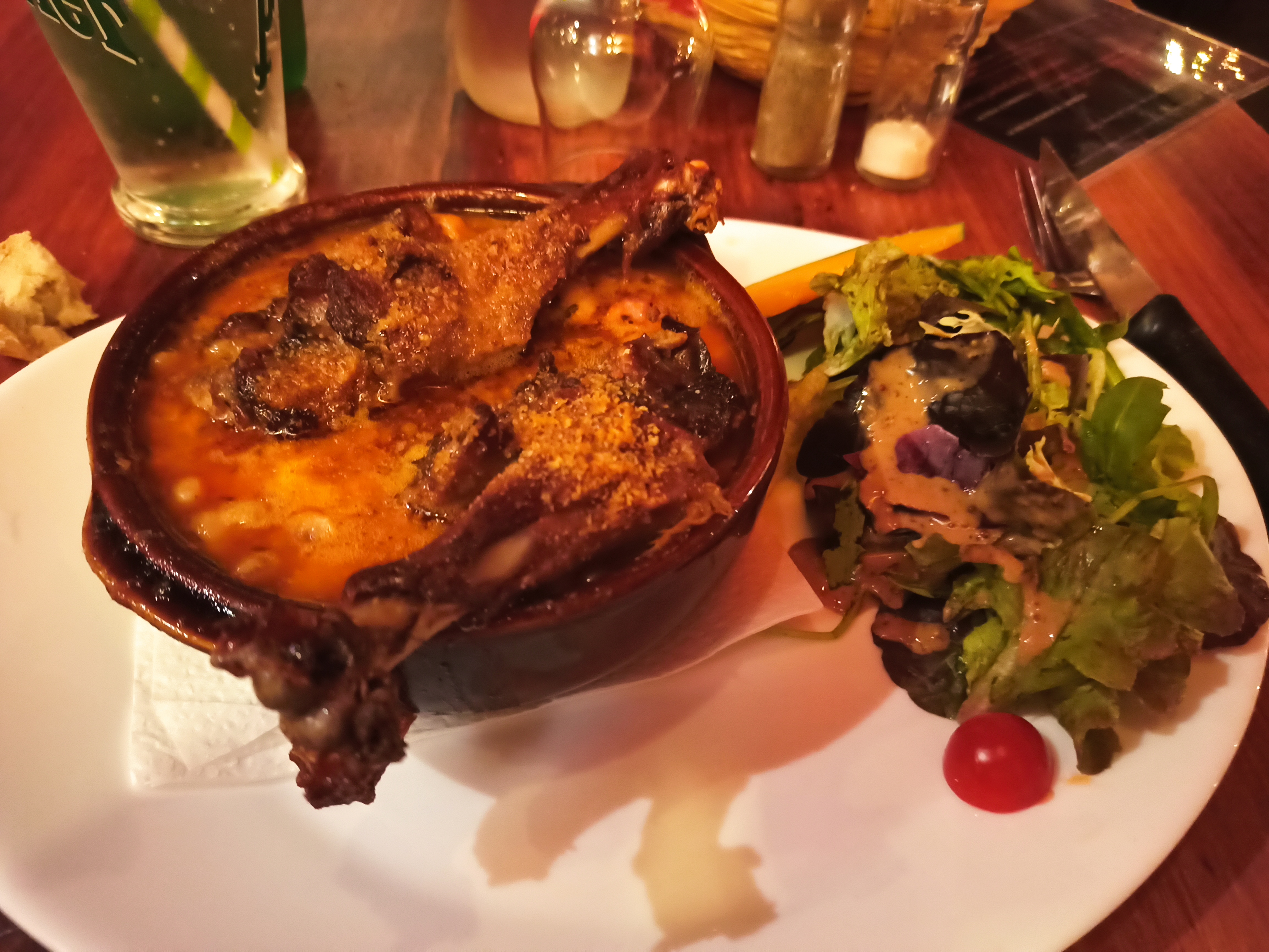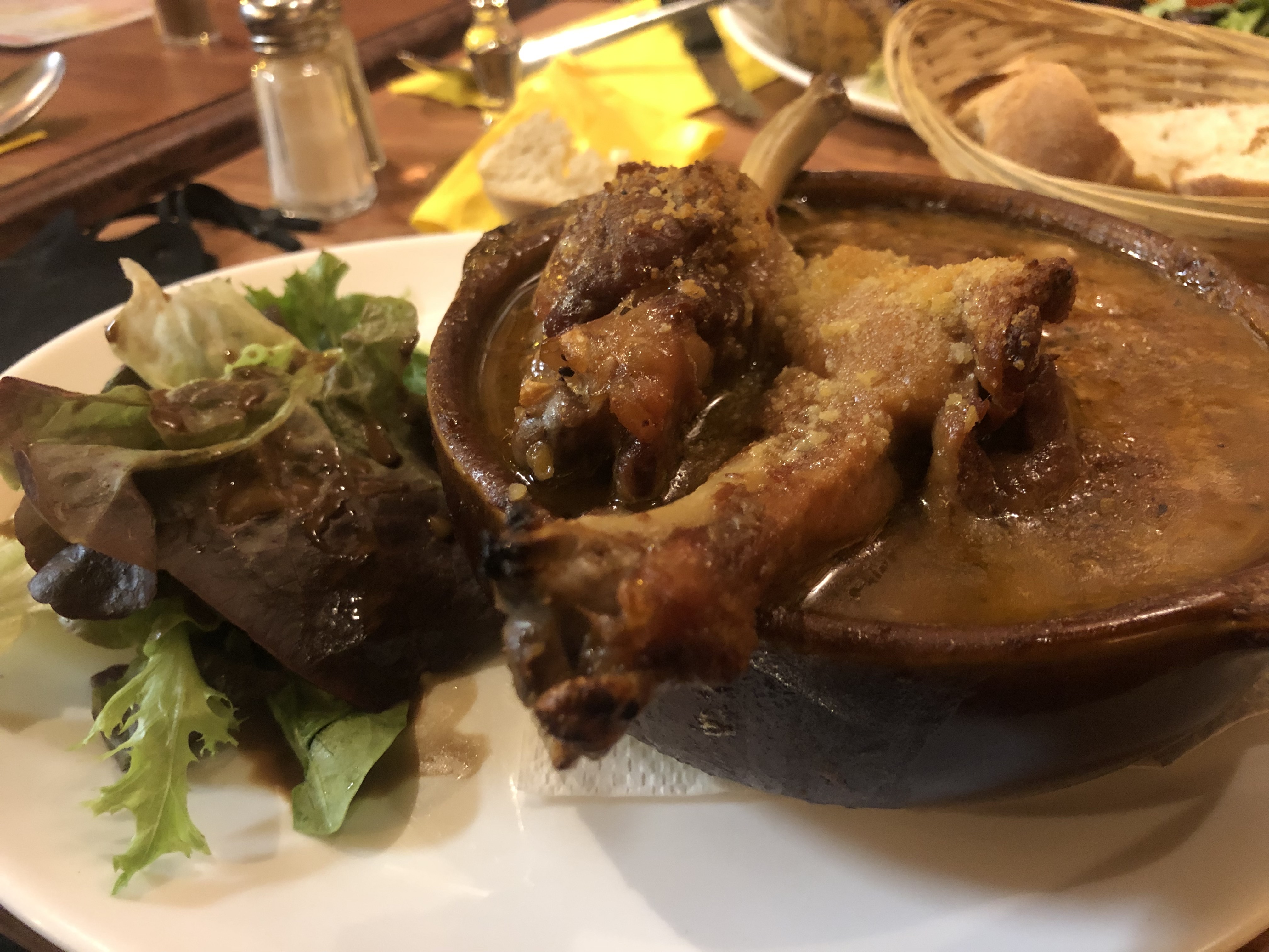 Nous avons mangé le cassoulet traditionnel, avec des saucissons et du canard, et c'était incroyable ! Nous avons adoré 🤩