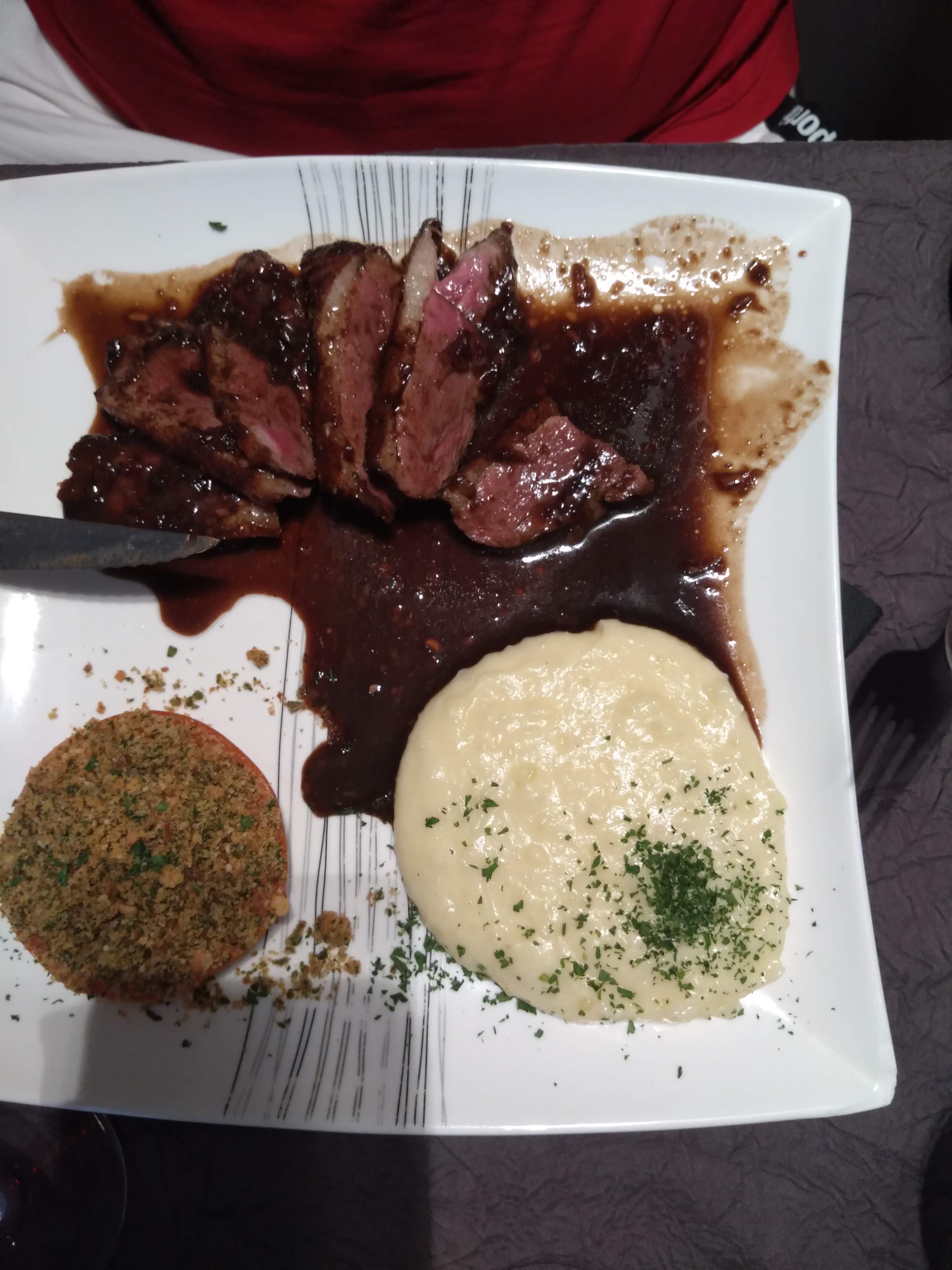 Désolé un faux filet qui porte bien son nom malgré sa générosité ressemble plus à une entrecôte voire de la basse côte suplement morille très bon si vous aimez le parfum de la trompette .. joli et très bon dessert dommage pour la déco un biscuit spéculos coupé en deux on se demande pourquoi. . Un menu enfant un peu dissimulé ..j en passe l ensemble reste très bon malgré tout un peu onéreux à mon goût