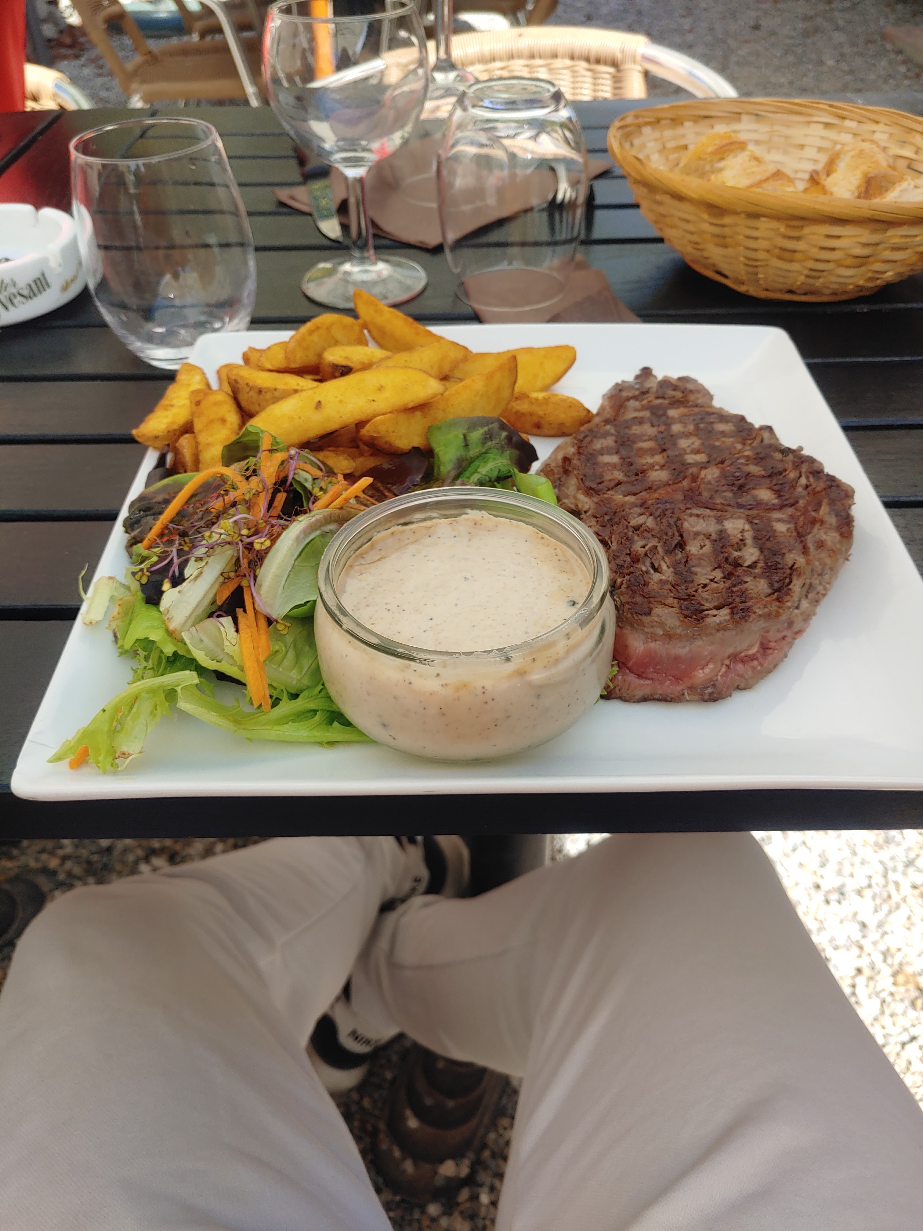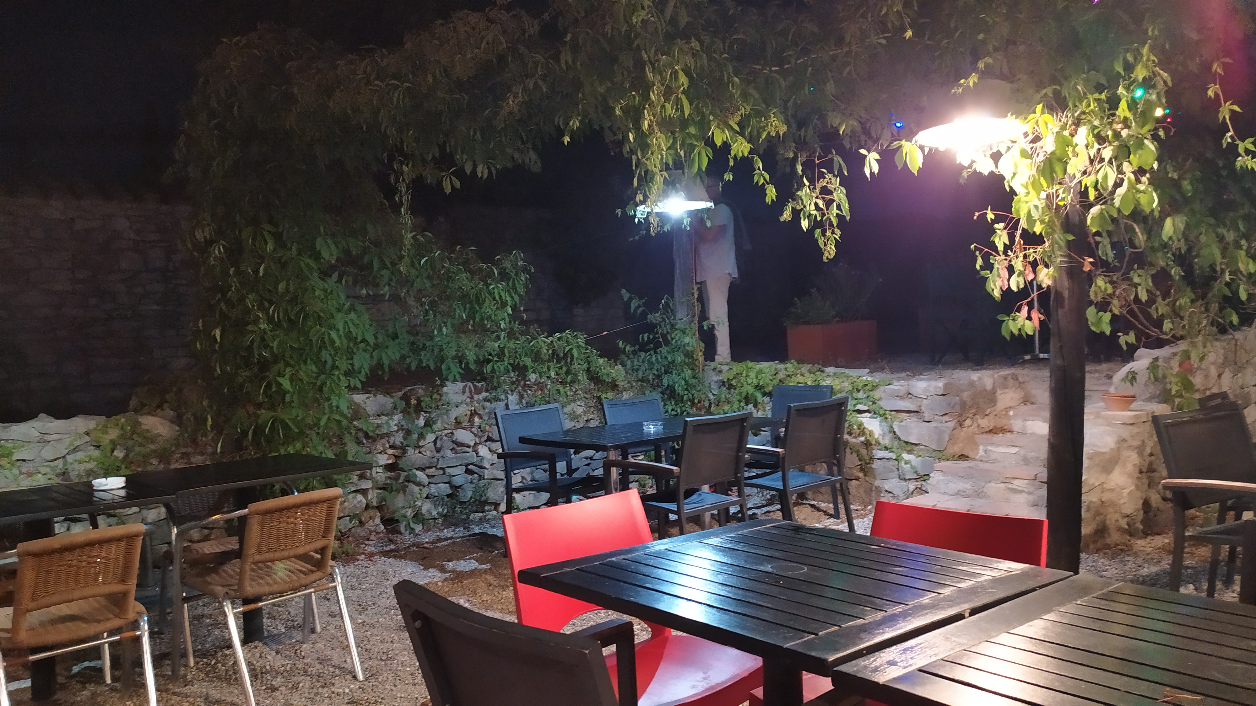 Quelle menace ! Après avoir échappé à Méjannes-le-Clap nous sommes allés en voiture jusqu'à cette perle au milieu de nulle part (de notre point de vue) Ambiance détendue et paresseuse. Tout semblait se dérouler à un rythme différent. Un rythme plus détendu. Le layoit et le jardin ont beaucoup aidé. Le service était super sympa et rapide. Les boissons sont arrivées et nous avons dégusté un très bon Rosé local des Cévennes. Nous avons tous les deux eu le très excellent Steak Tartare avec une touche « italienne ». Certainement un plat pour lequel revenir. Le café était bon et à en juger par la playlist de l'été, nous pourrions revenir vendredi prochain pour le groupe Pink Floyd Tributr.