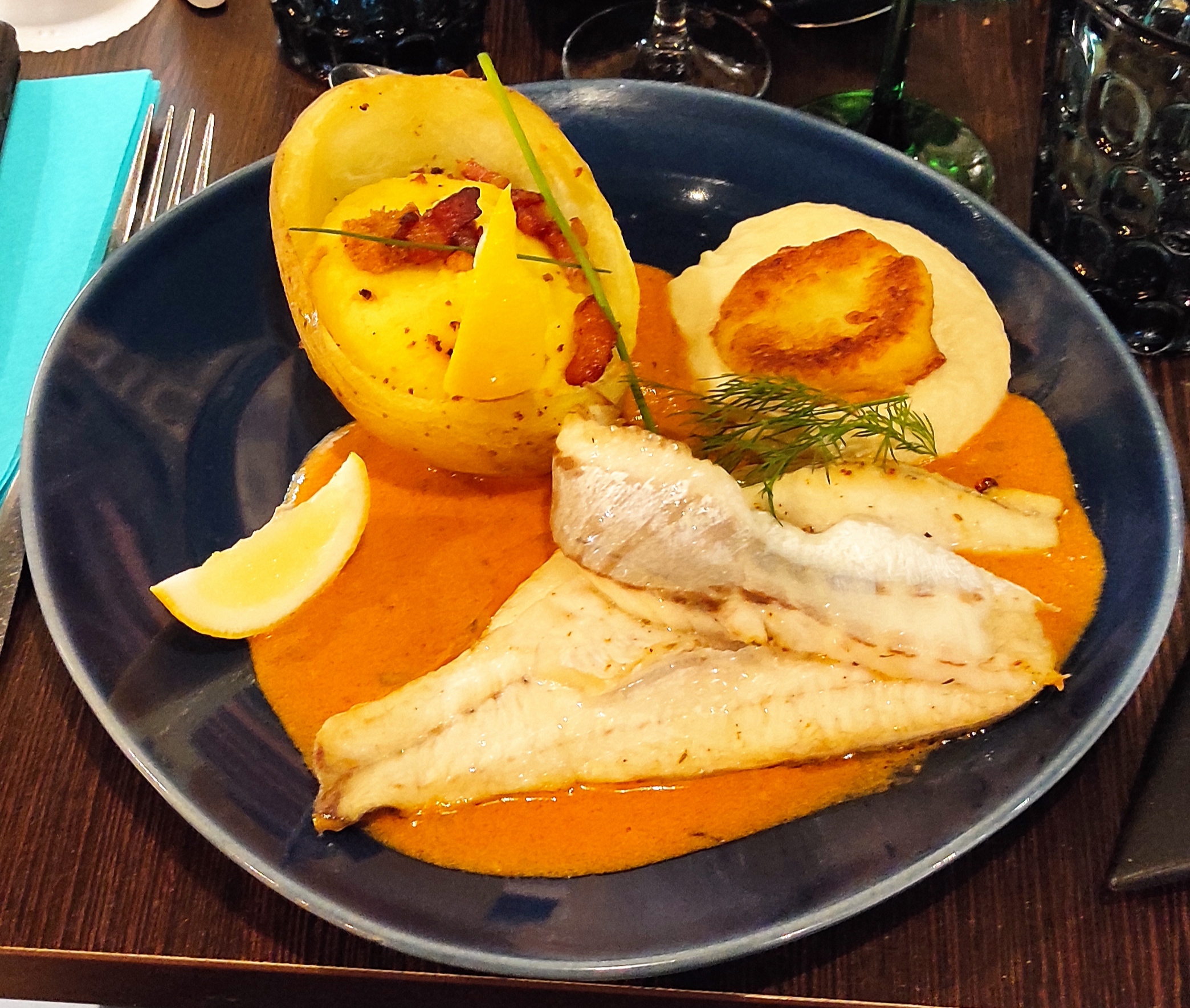 Choix des plats variés avec de la cuisine délicieuse. Le seul petit bémol c est les frites qui accompagne la lotte .