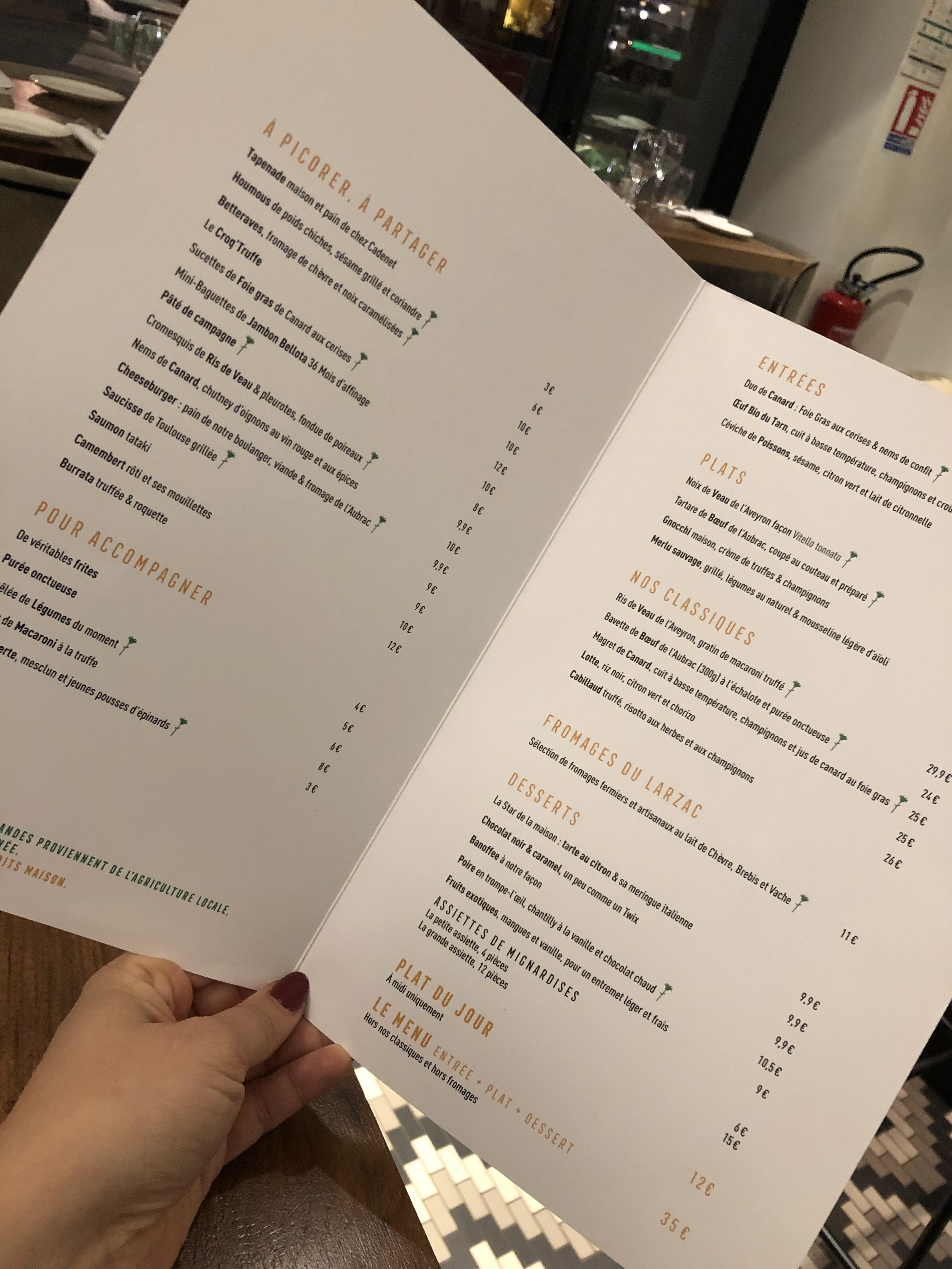 Produits frais, cuisine 100% maison, établissement de qualité et raffiné. Une cuisine chic et branchée pour un budget abordable. Une grande terrasse extérieure, idéale pour le soleil Toulousain. Vin de choix, serveurs souriants et professionnels. Nous avons mangé et adoré. C'est pourquoi je recommande cette adresse à quelques pas du marché Victor-Hugo.