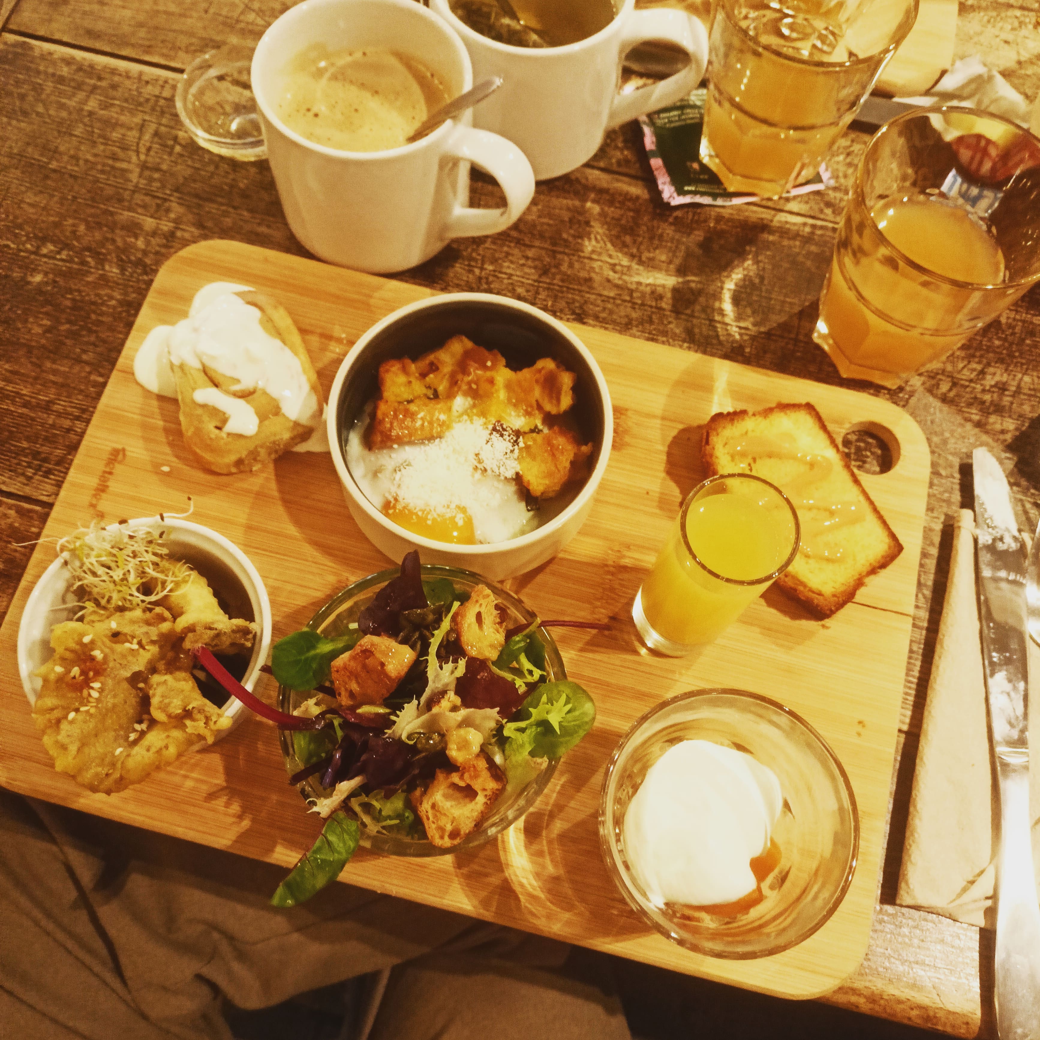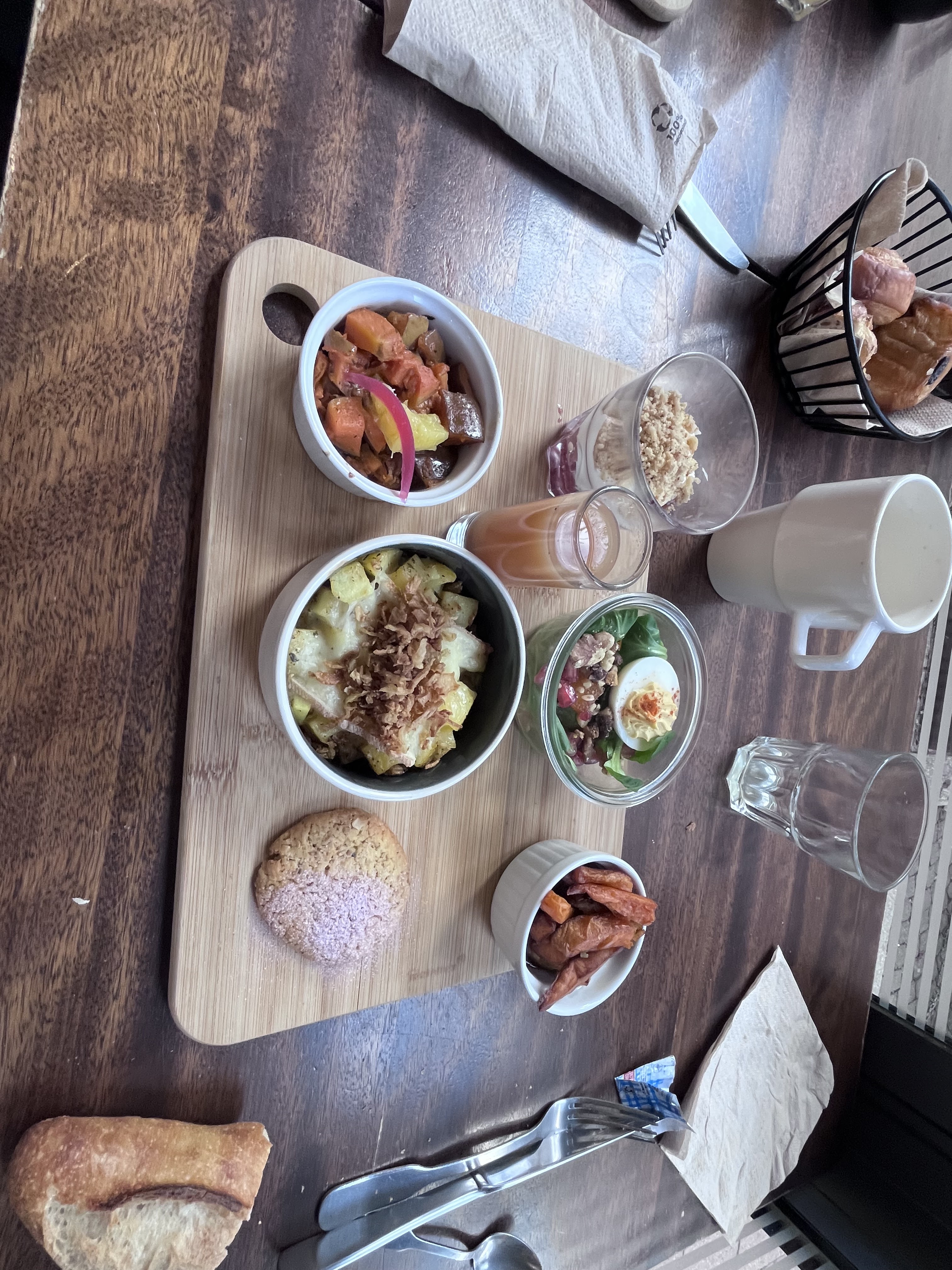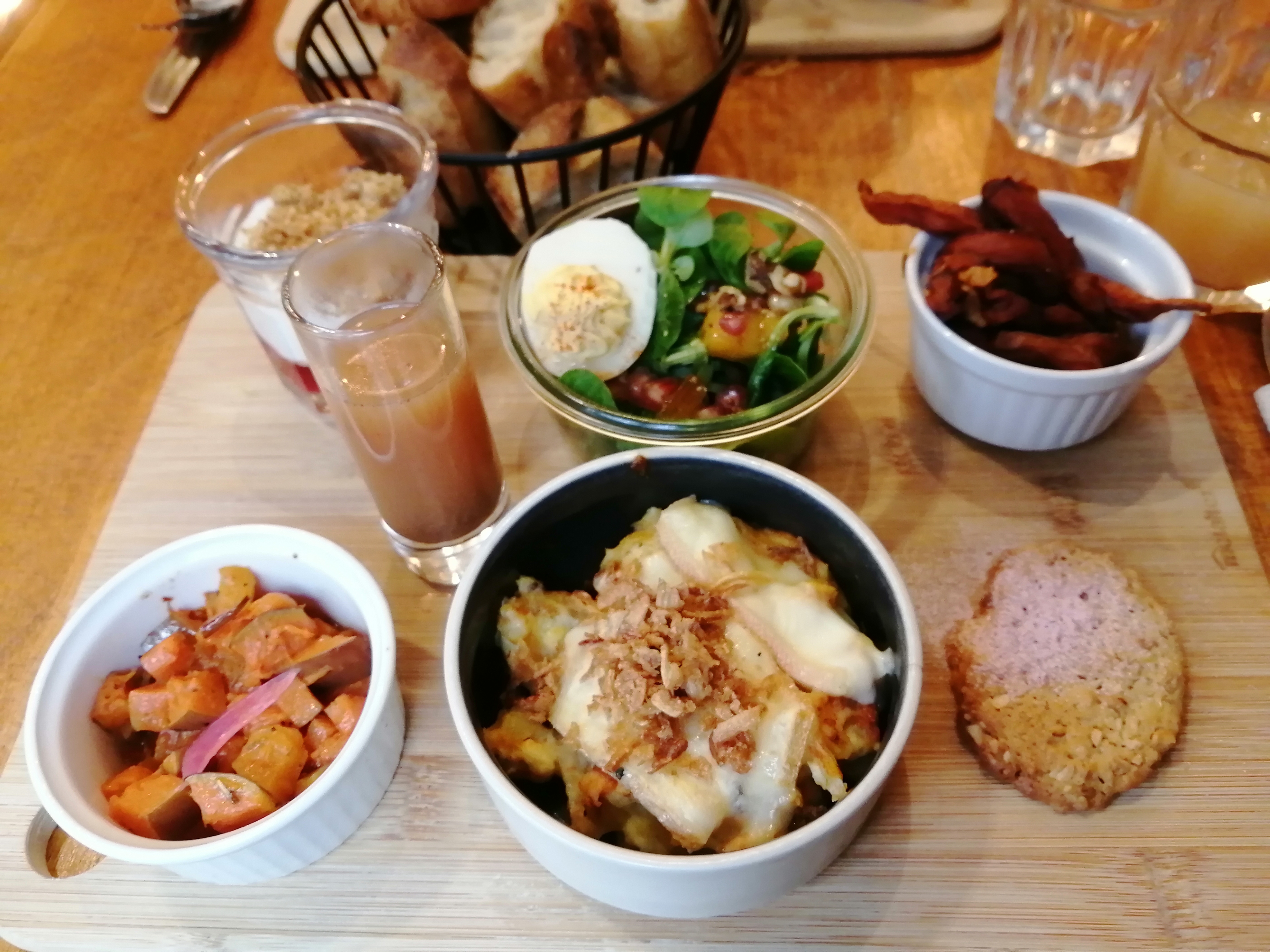 Je suis venue pour un brunch le samedi. La planche était très colorée, les petits plats étaient variés et en quantité suffisante. Cependant j'aurais préféré ne pas manger du cantaloup en automne et les viennoiseries n'étaient pas fraiches. Je recommande tout de même, mais je pense que le petit-déjeuner en semaine doit être aussi très bien. Pensez à réserver.