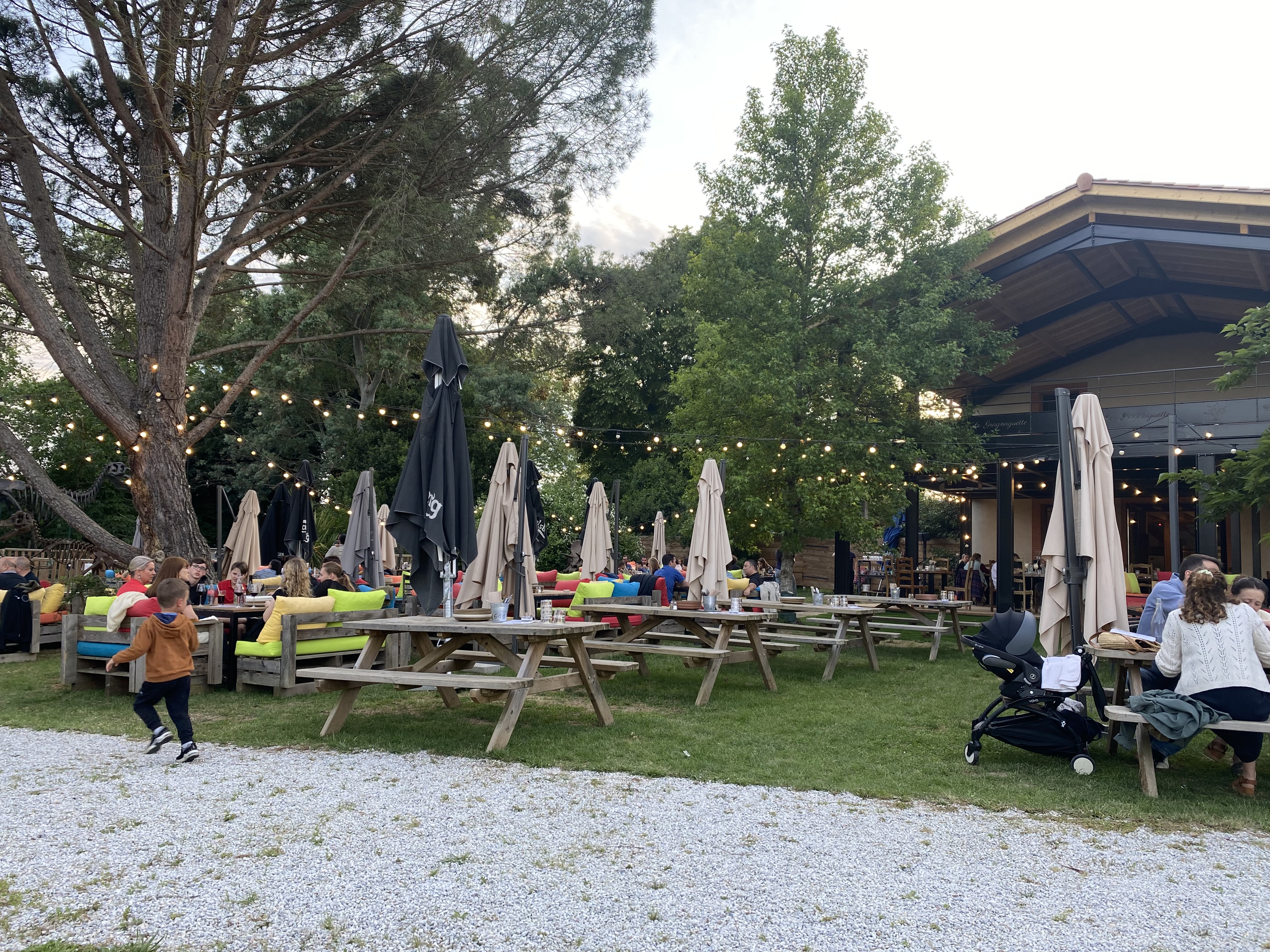 la Gragnaguette, c’est tout simplement NOTRE coup de cœur niveau bonnes adresses, cet été en Haute-Garonne. Les propriétaires des lieux rêvaient d’aménager leur jardin pour en faire un coin relax et hyper convivial, et bien on peut vous dire que c’est réussi ! A la Gragnaguette, on a trouvé de grands canapés en mode palette et gros coussins colorés super chouettes. La Gragnaguette peut accueillir beaucoup de monde et en même temps on ne se sentait pas serré. Dans l’assiette, c’est un régal. Leur cuisine est savoureuse et on sent la qualité des produits, et le fait maison. ♥ Ce lieu atypique nous a séduit. En famille, on s’est senti vraiment à l’aise. Les week-ends jusqu’à fin octobre, il est possible d’assister à des spectacles de cirque et cerise sur le gâteau, il est même possible de faire un tour de grande Roue “la grande roue du jeu télévisé Boyard Land sur France 2”. Enfin, lorsqu’il fait froid, “La Gragnaguette” installe des chapiteaux chauffés pour manger la raclette en mode guinguette d’hiver. En bref, on recommande !