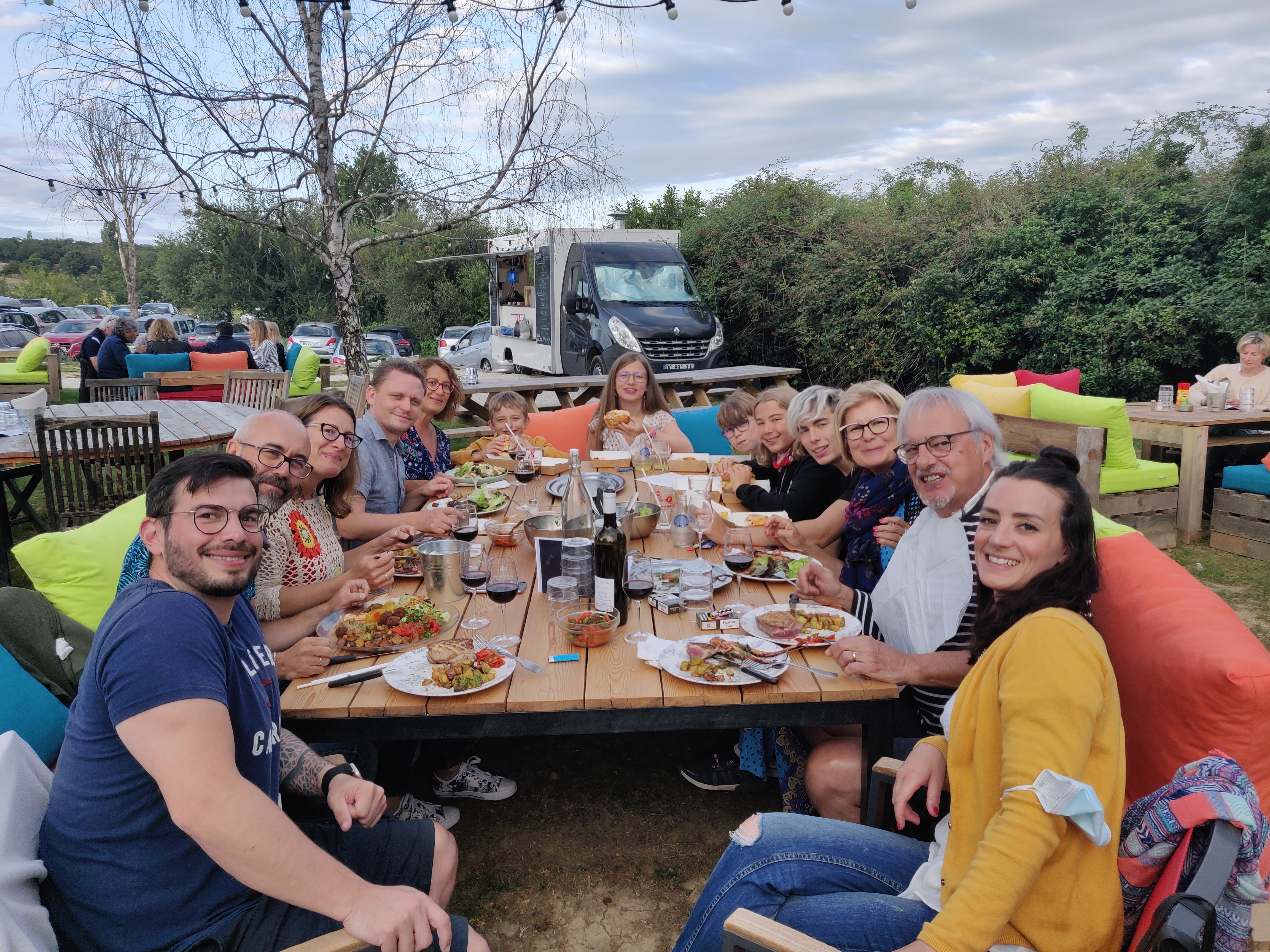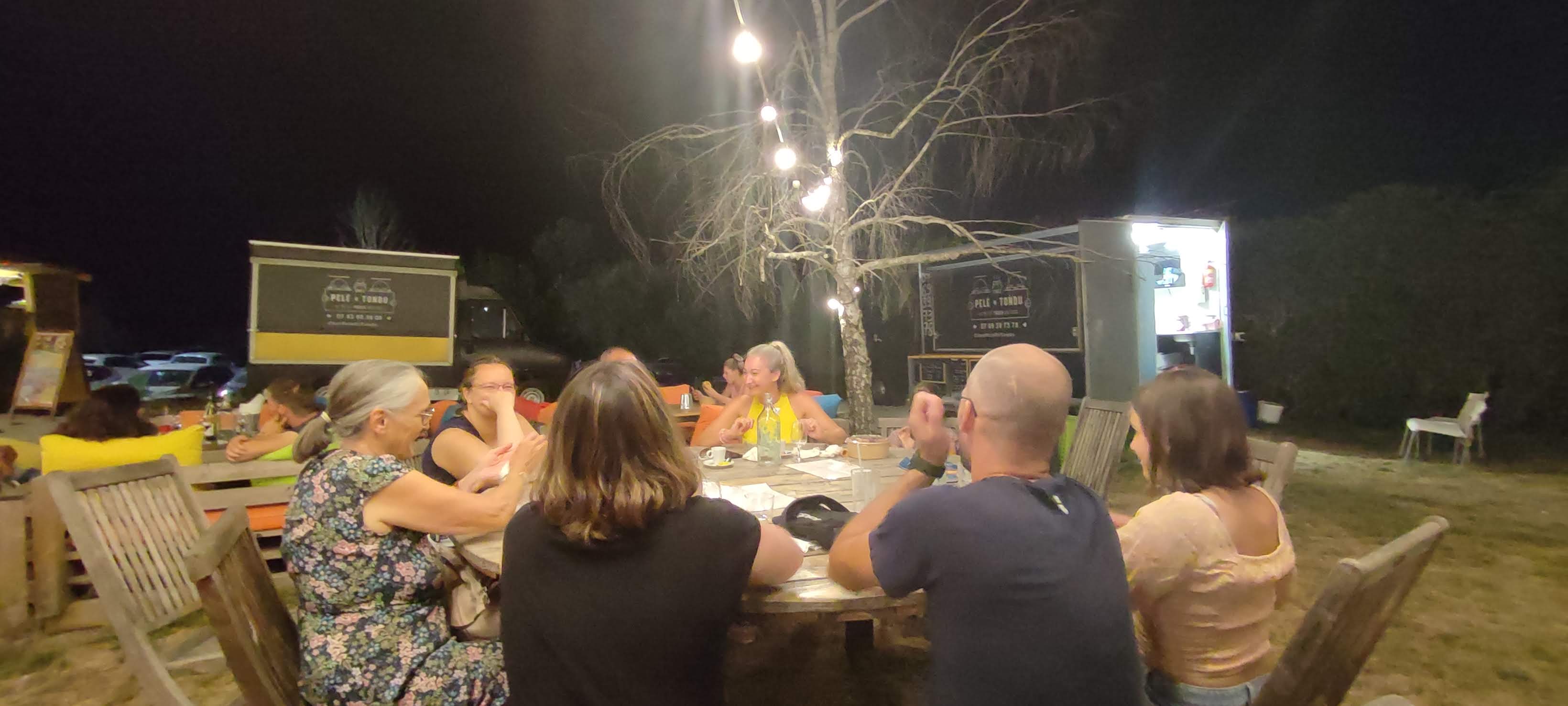 Excellent endroit Dîner en plein air très ludique. Les tables sont à dispositions avec en son centre une pile d assiettes couverts à disposition. Les grillades sont excellentes avec un service de qualité . Des jeux pour les enfants . Possibilités de prendre son dessert chez le voisin Je recommande vivant cet endroit simple et très convivial !