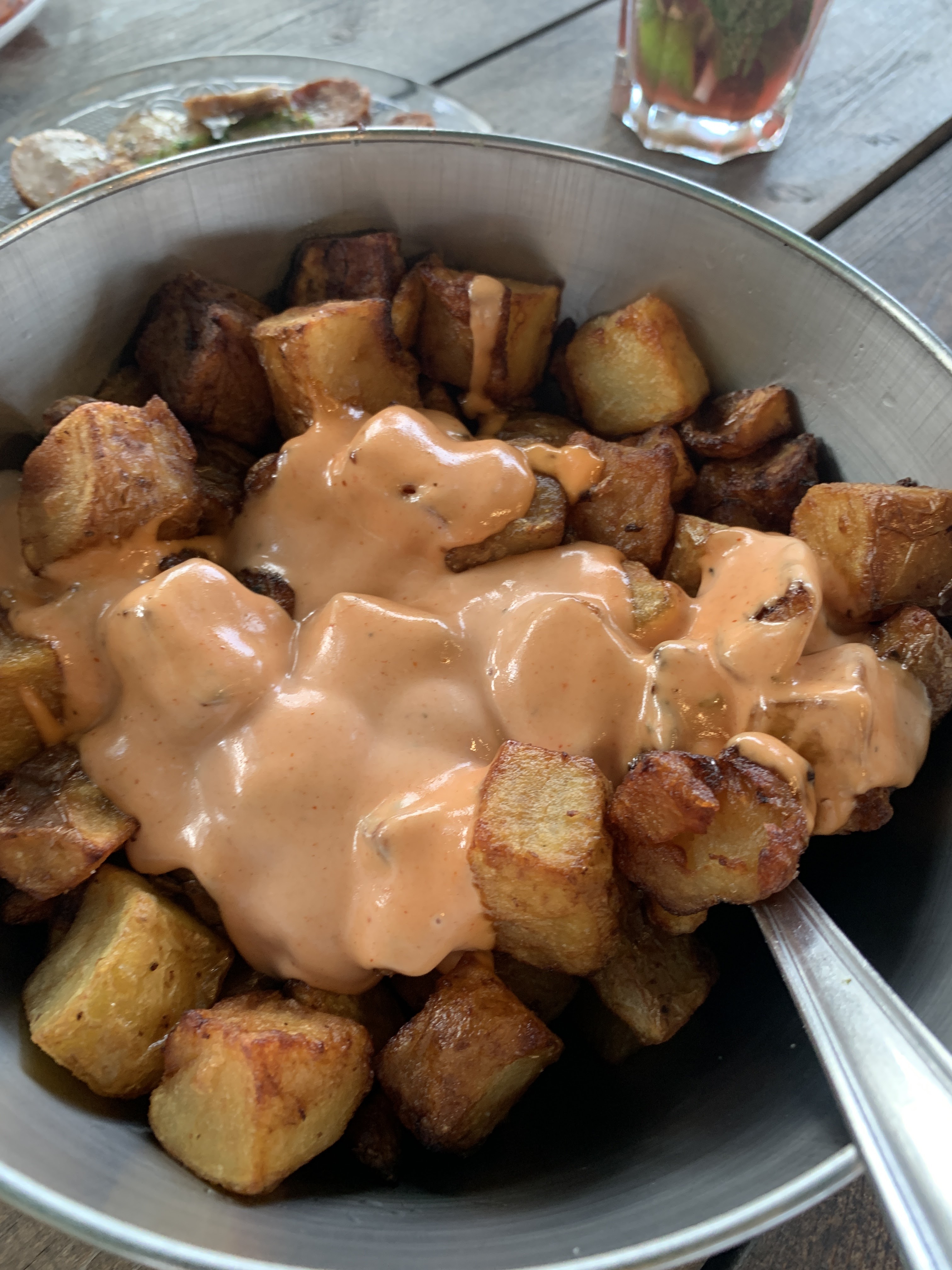 Déçues......Endroit super mais voilà.....très cher pour le contenu des assiettes, serveurs pas très souriants(e) et pas forcément aimables . Charcuterie bof bof , le fromage n'était que de la chiffonnade, le dessert au goût chimique +++. Nous avons apprécié les patatas et heureusement qu'elles étaient là pour nous remplir l'estomac. Bref, ne pas y aller pour bien manger ou alors , avec un porte monnaie bien rempli . C'est très dommage !