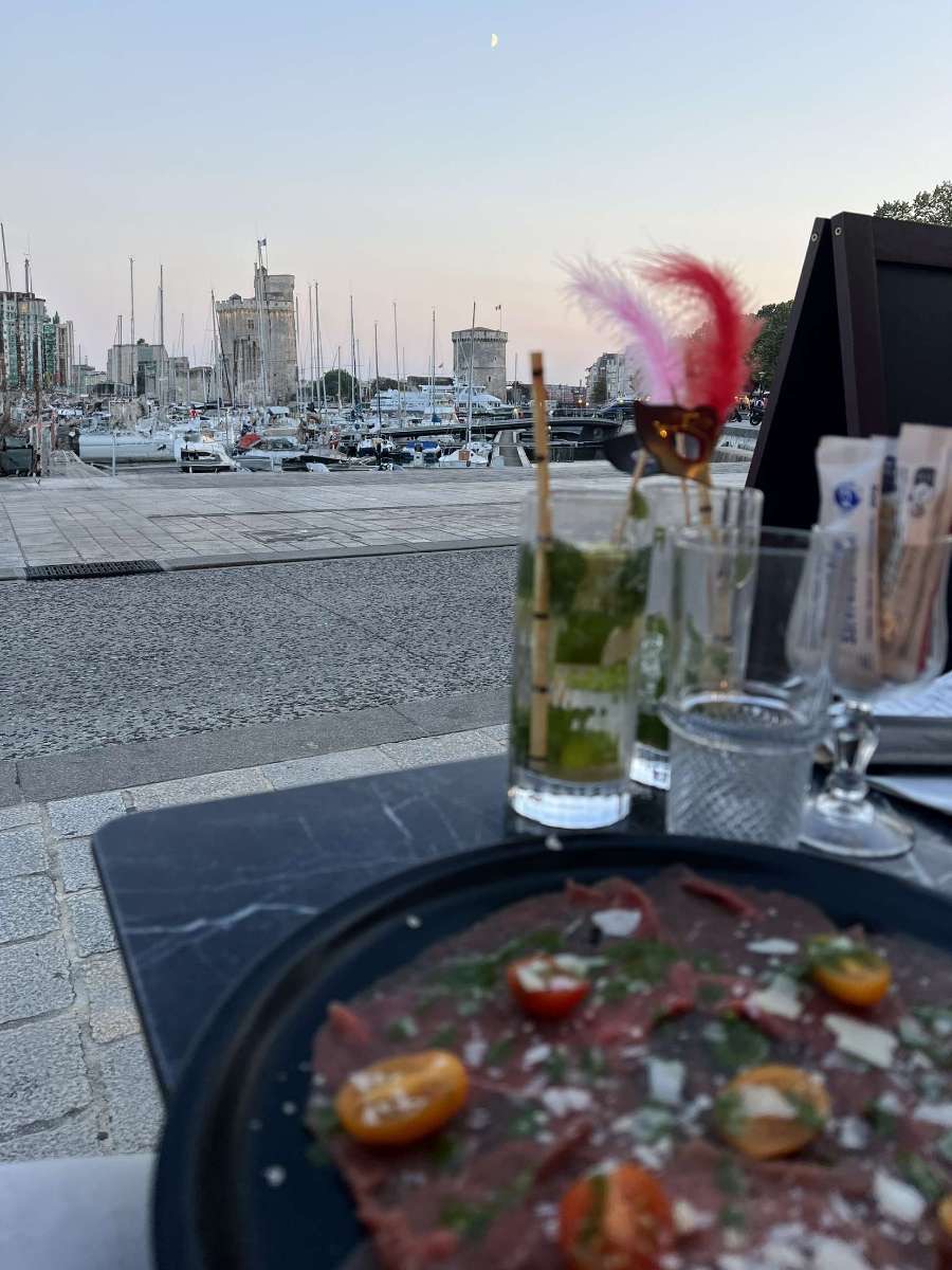 Une superbe vue sur le port de La Rochelle; un très bon accueil. Nous étions venus juste pour un verre et nous sommes restés dîner tant nous étions bien. Service impeccable, un émincé de seiche chorizo excellent, une assiette de fromage la plus copieuse et qualitative que j’ai goûté. Les deux bémols : notre choix de Bordeaux quelconque et un baba au rhum pas assez imbibé à notre goût mais bien entouré de fruits frais.