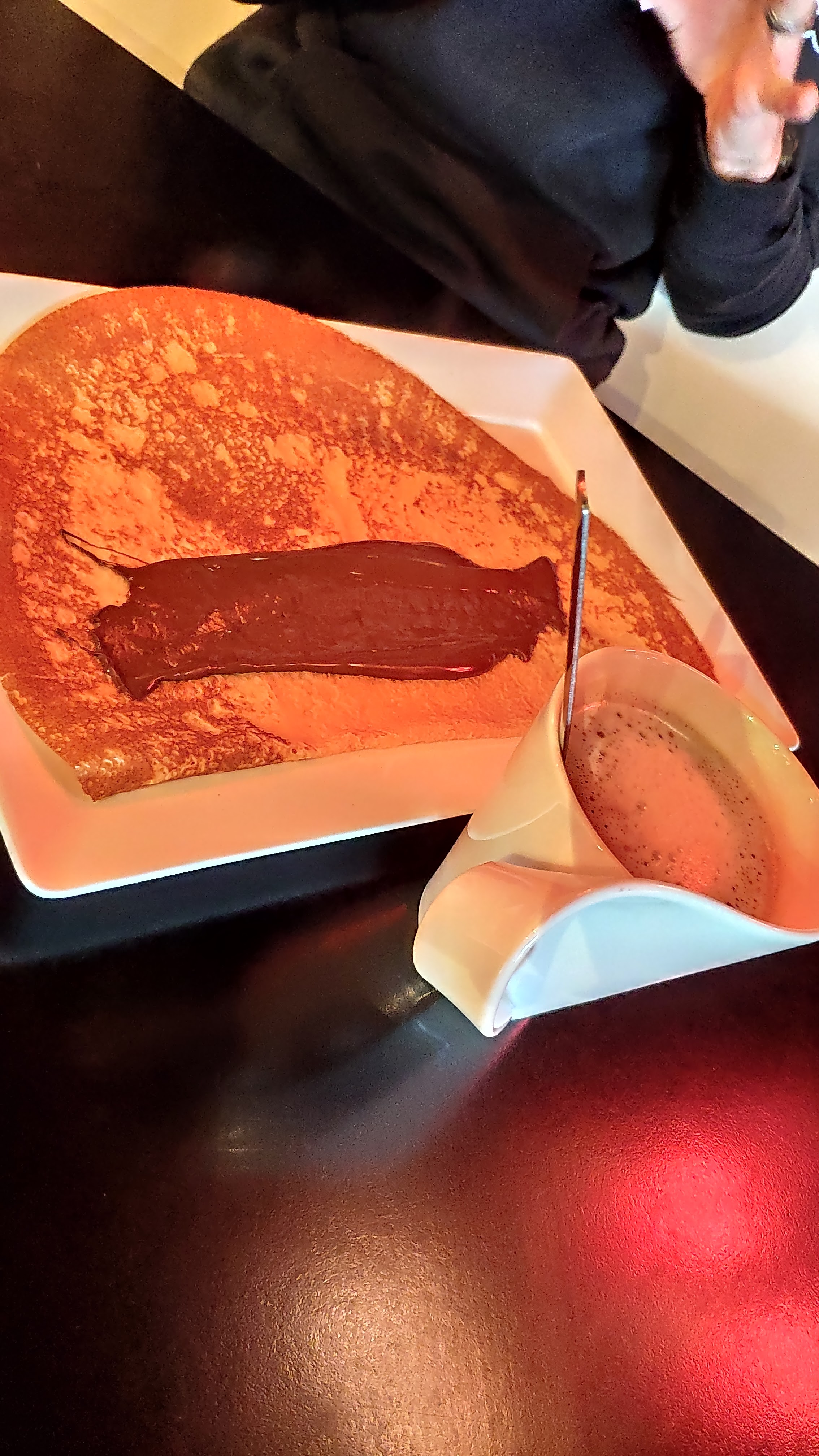 Serveur très souriant et accueillant mais déçu du chocolat maison. Que ce soit la crêpe ou le chocolat chaud, le gout était du chocolat à l'eau (fade).