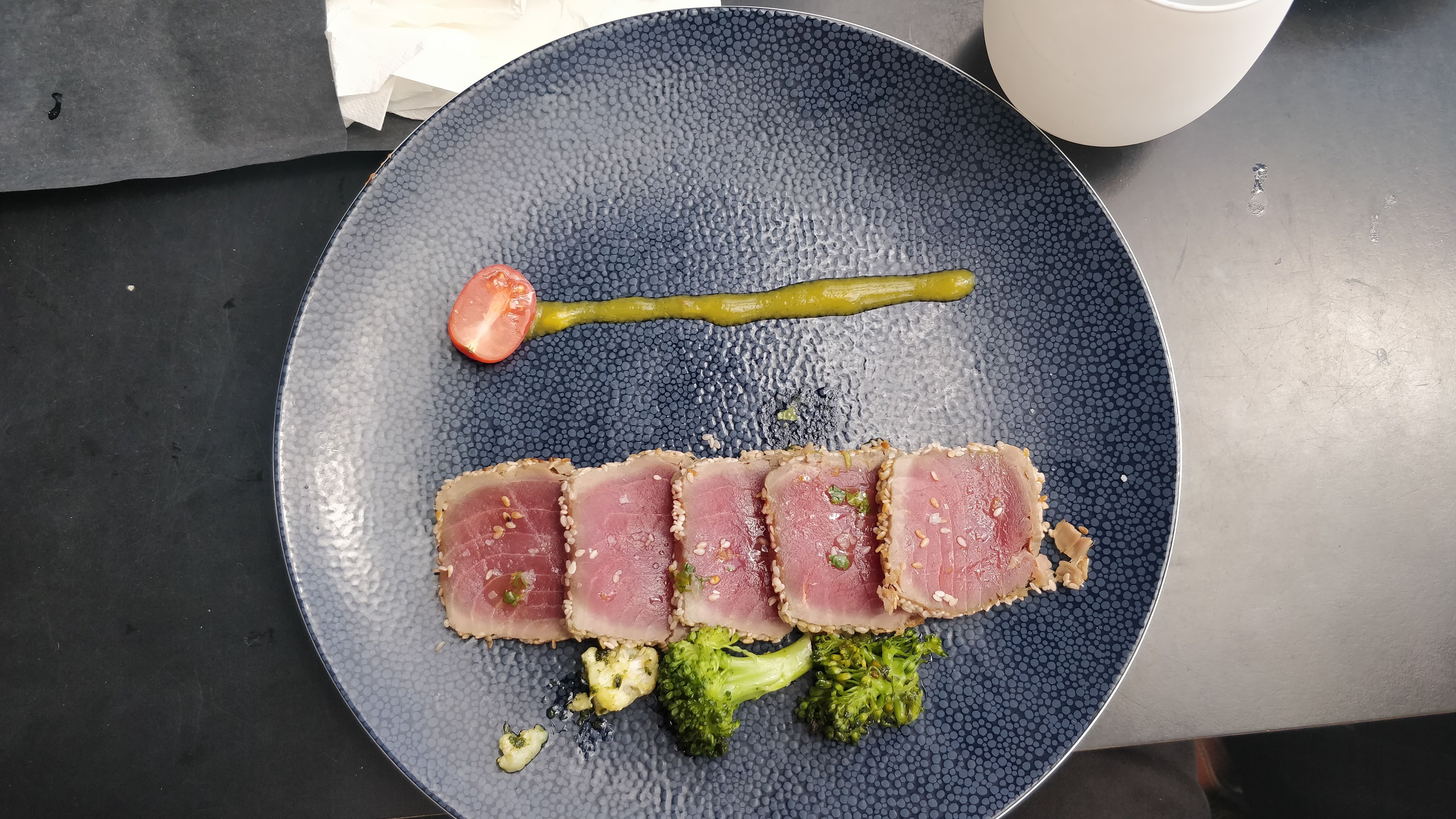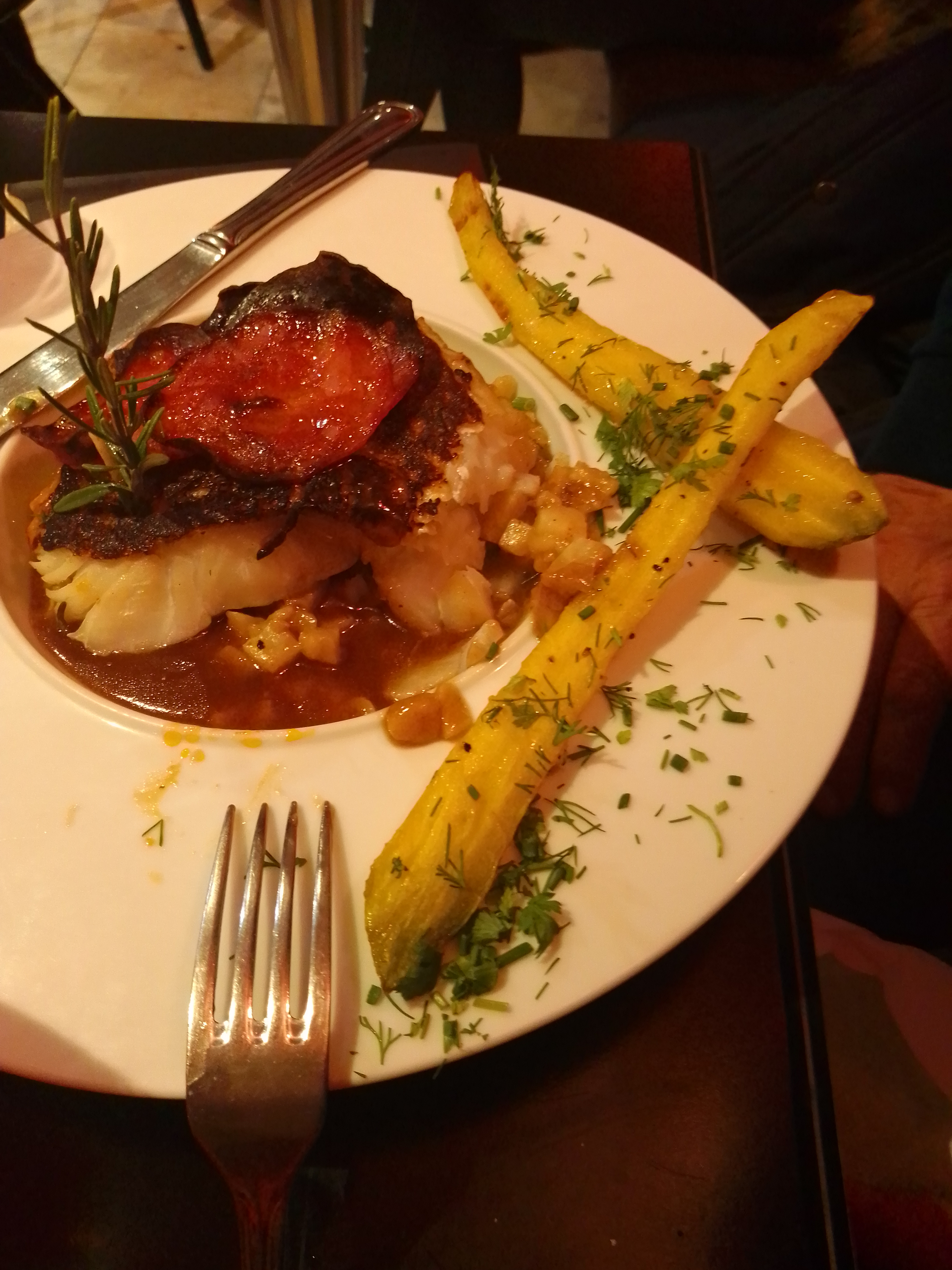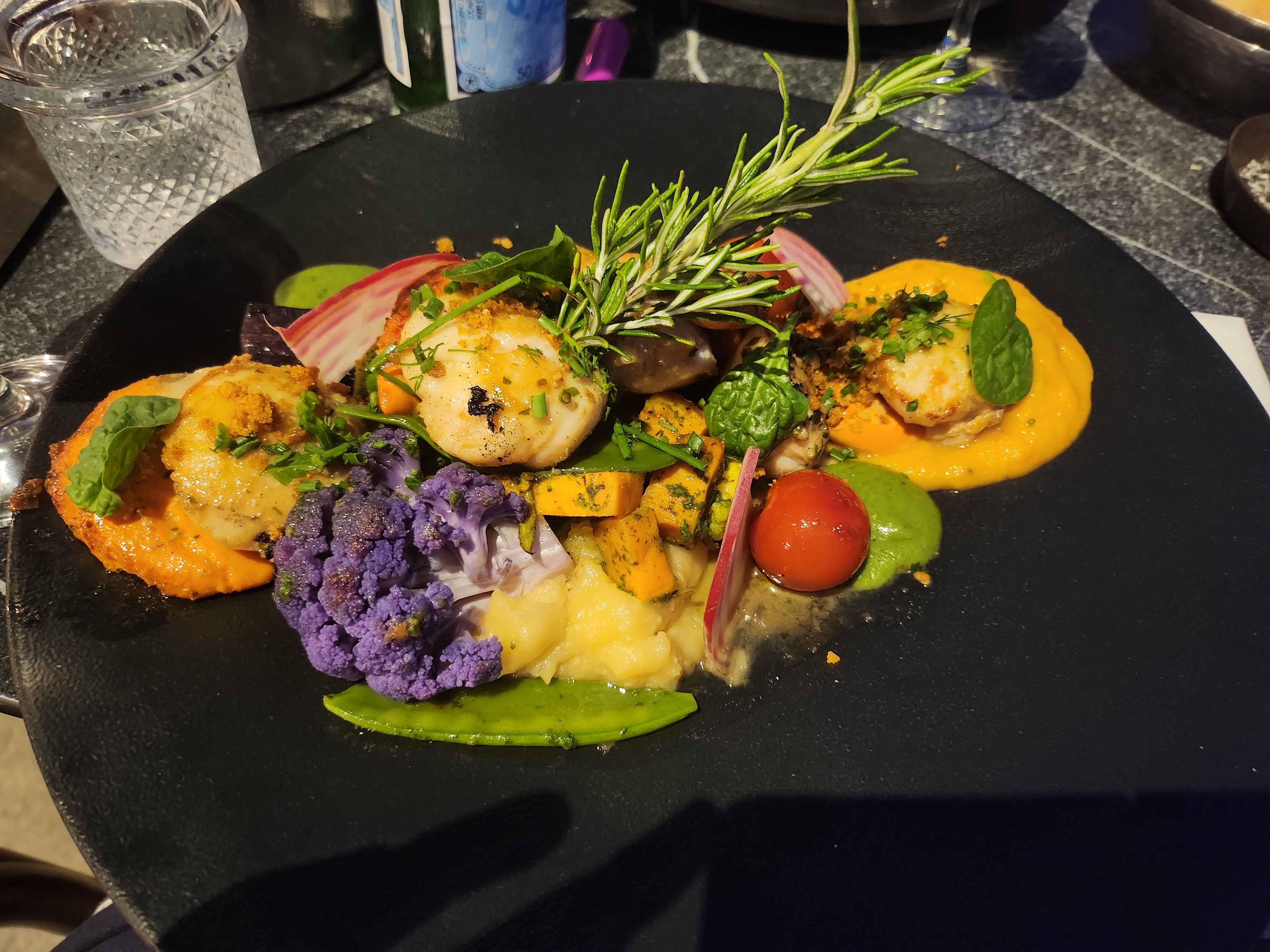 Je suis vraiment désolé, mais nous avons eu un repas horrible ici. Les entrées de poisson contenaient tellement de fruits que le goût délicat du poisson était perdu. Les pétoncles étaient tous granuleux et non saisis. Le bar flottait dans l'eau des légumes, qui n'étaient qu'une bouillie sans aucun croquant. Vraiment décevant 😞