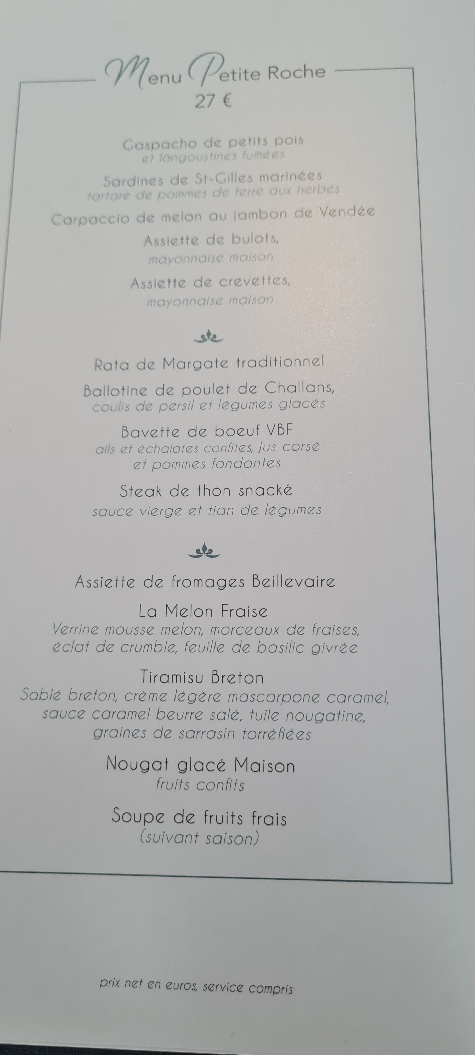 En ce jour de canicule, direction Bretignolles sur mer et le restaurant La Grand’Roche. Avec aux commandes Alain Bouton et le chef, disciple d’Escoffier, Patrick Rougeon. Un moment exquis, face à l’ocean. Une très très chouette adresse !