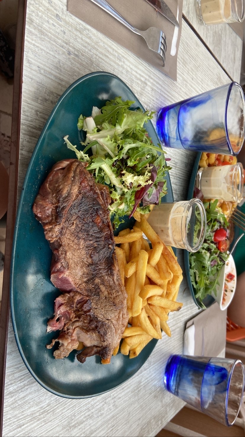 Petite carte maison (toujours bon signe) avec poisson et viande. Le cadre est très joli avec vue sur mer. Repas et service excellent, je ne peux que recommander cette adresse. A l'année prochaine sans hésitation. Les belges qui n'ont finalement pas perdu leur portefeuille 😉