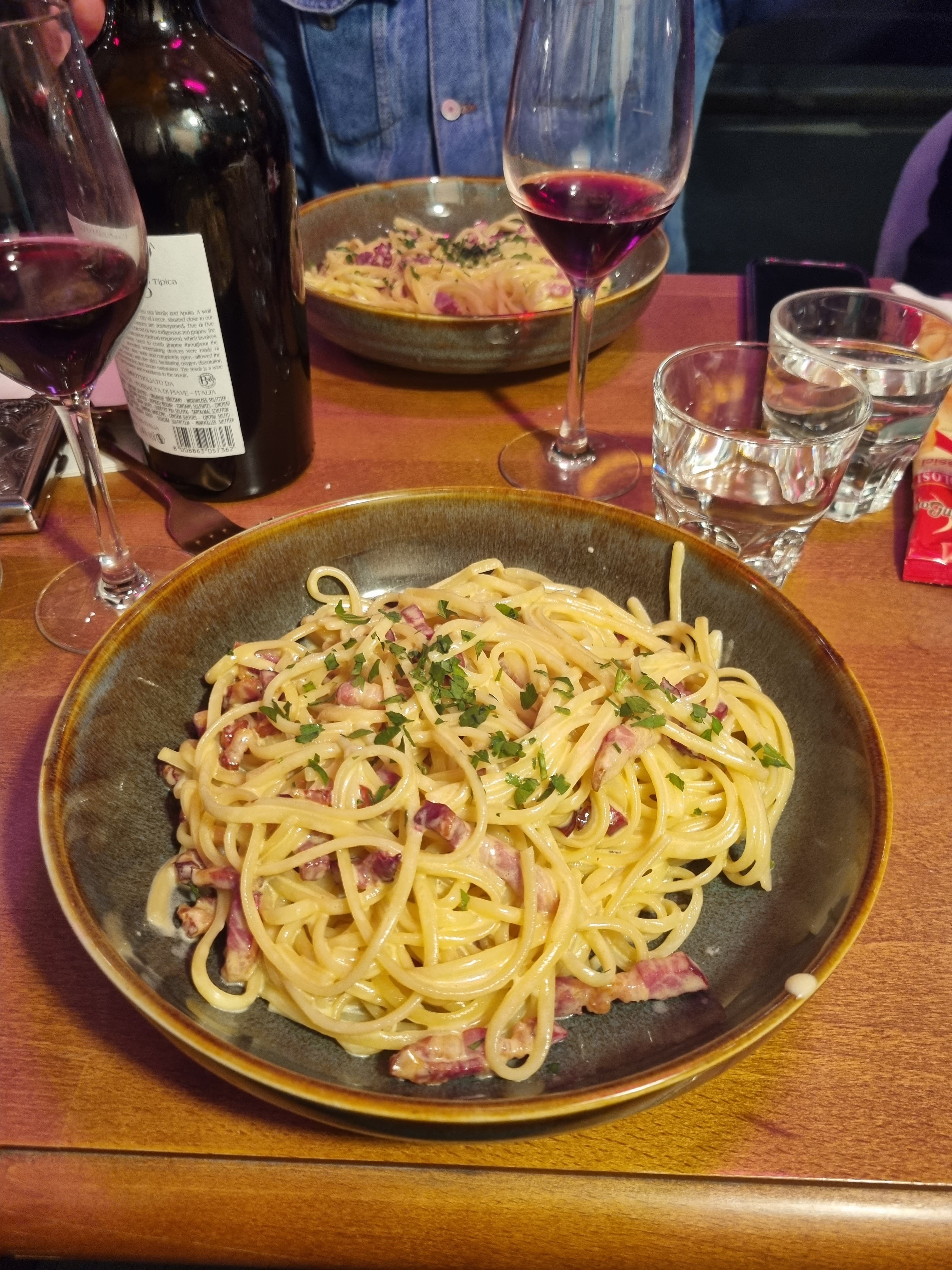 Nous avons été bien accueillis, le restaurant est bien décoré bien qu’il fasse très chaud à l’intérieur ! Un peu déçus cependant par la cuisine. Les pâtes carbonara sont à la crème fraîche…. on ne s’attendait pas à ça. Les pizza sont bonnes cependant avec une bonne pâte.