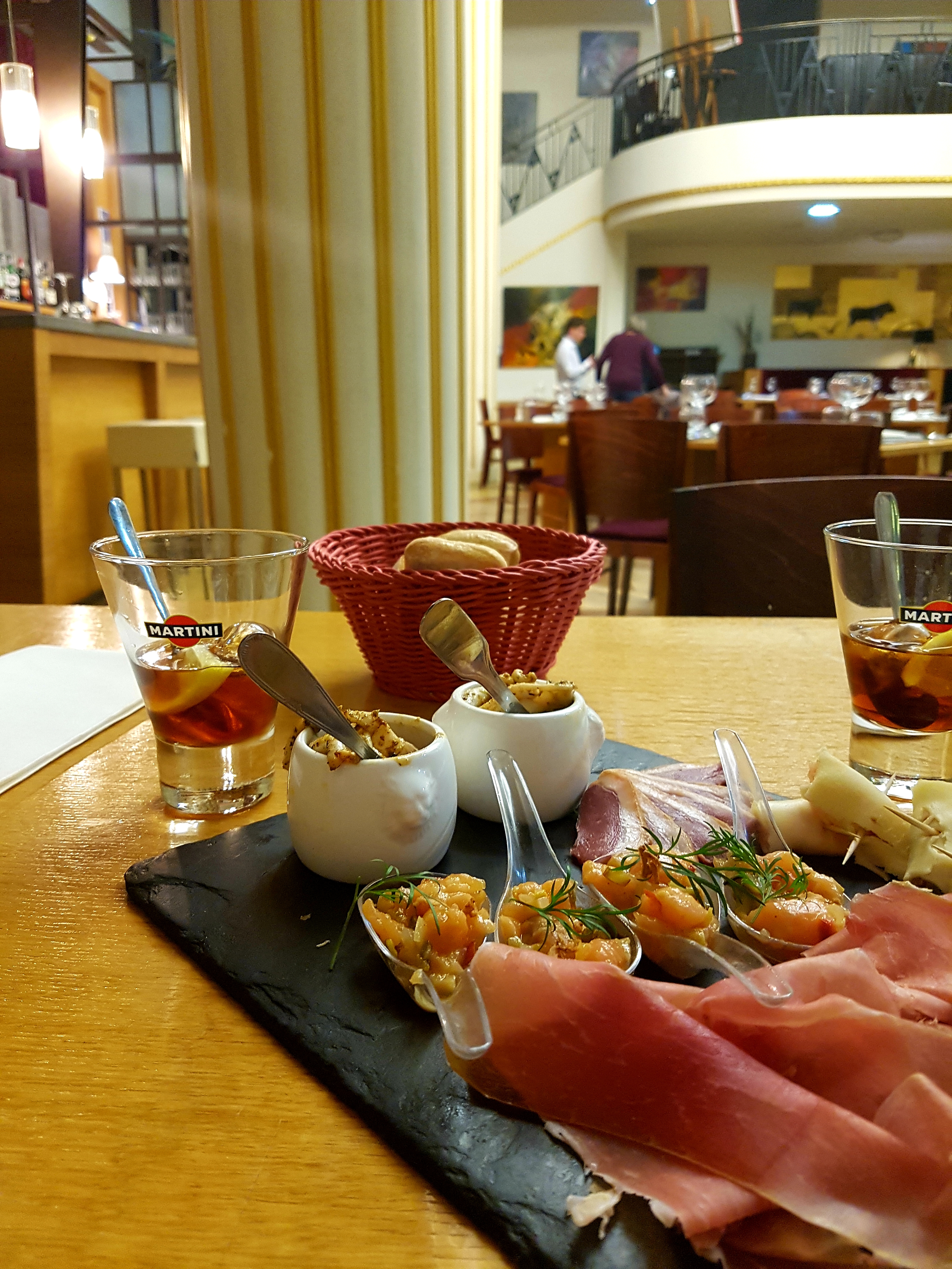Cocktail moyen avec du pain desseché... Salle hyper bruyante mais belle