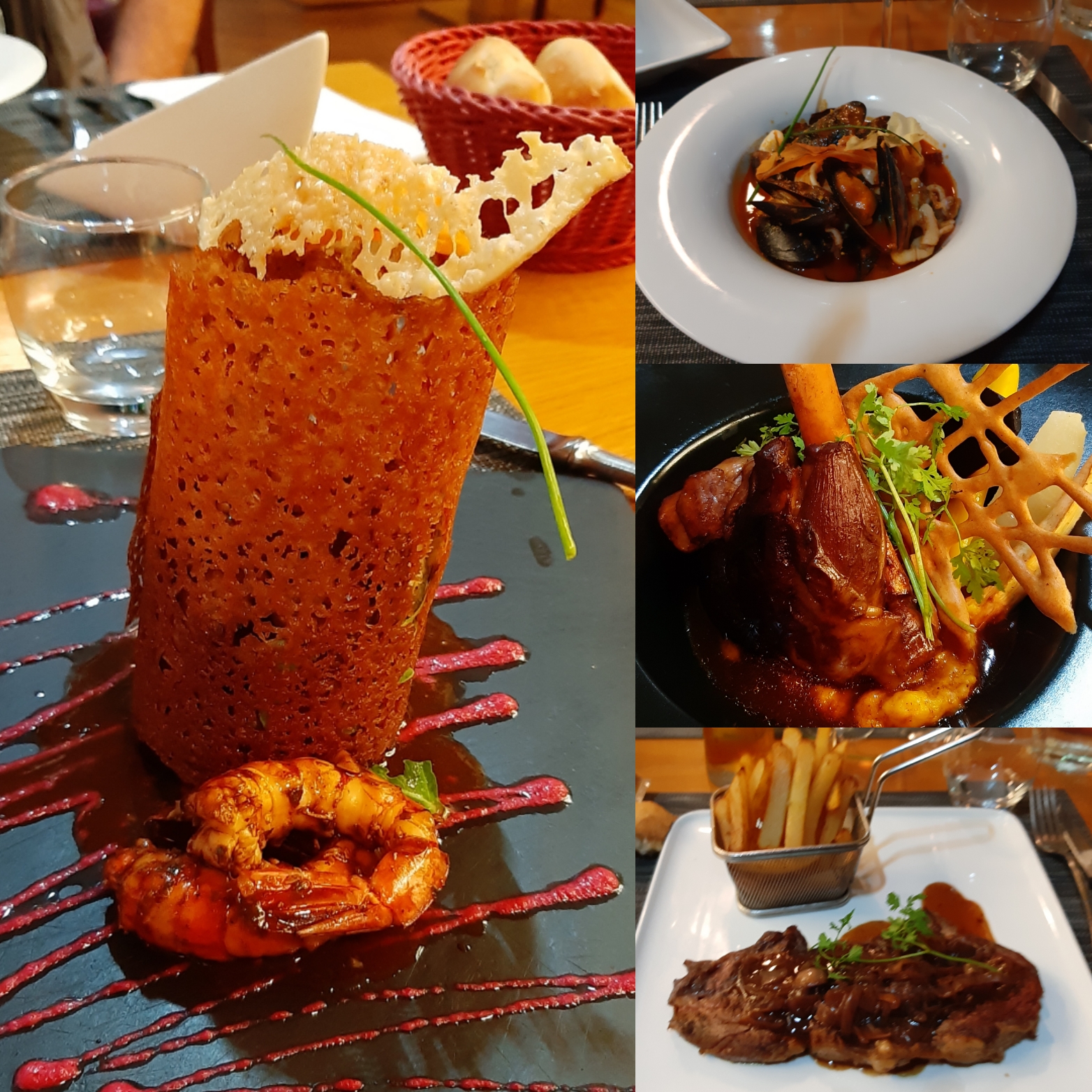 Plats excellents, avec le choc de ris d'agneau et gambas, le boeuf au foie gras et e dessert rafraichissant, je me suis regalée comme rarement. Service efficace et agréable (peu de mondes ce soir). Un delice