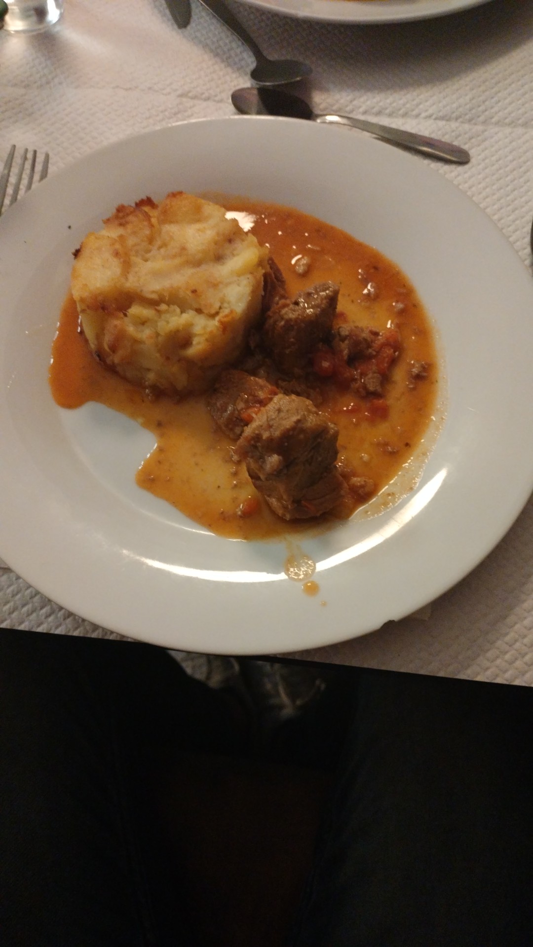 Nous avons mangé ici quelques soirs lors d'un voyage scolaire. Personnel peu professionnel, sans uniforme et pas très attentionné, la nourriture n'était pas mauvaise mais il y a certainement mieux : la sauce de la salade était pleine de vinaigre et était la même que la viande, qui était dure et pleine de côtes. Des clients impolis, qui se taisent et regardent les convives. Je ne reviendrai pas.