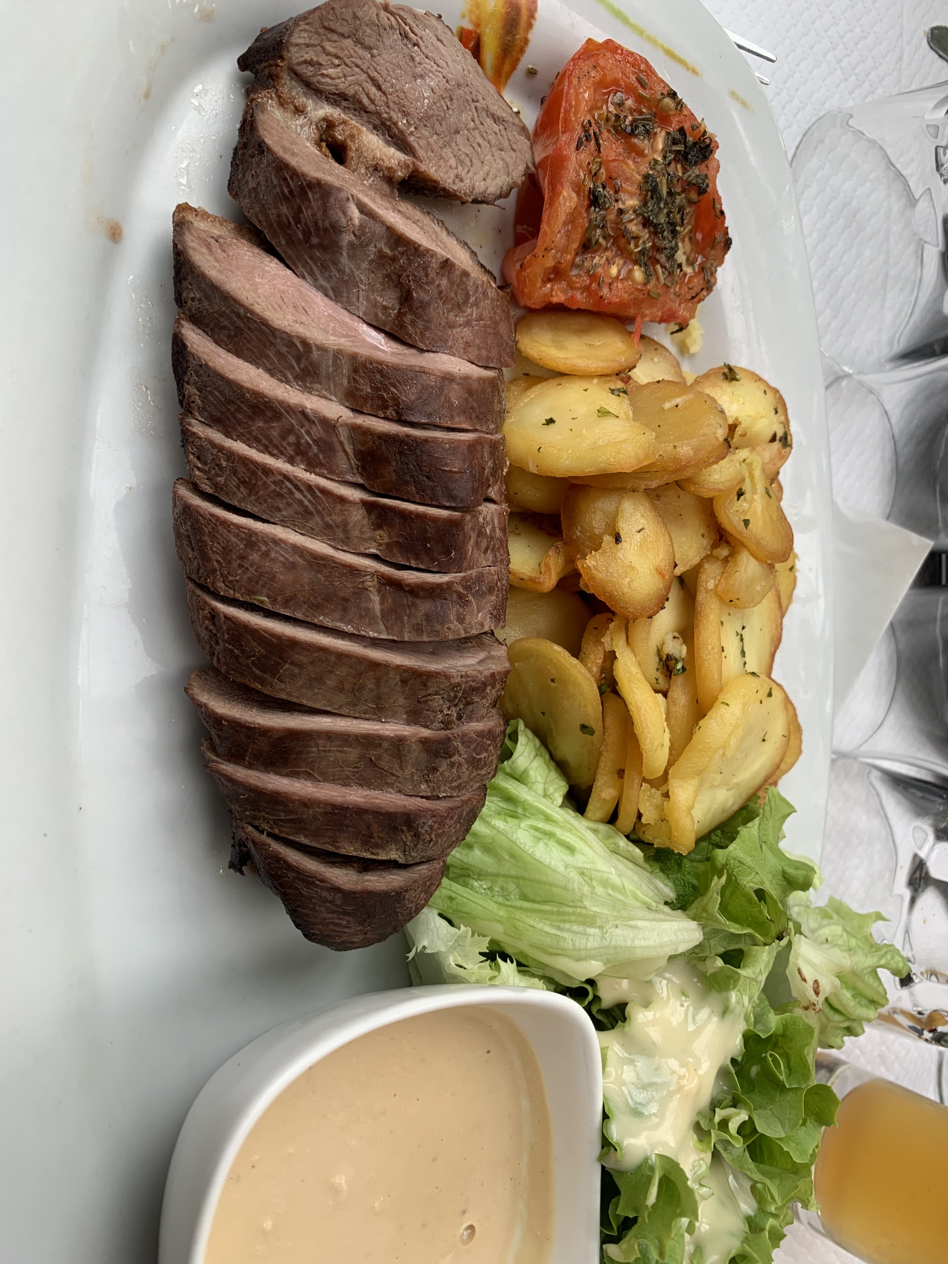 C'était très bon, il faut passer l'accueil un peu austère, viande tendre et serveurs agréables. Plats copieux.