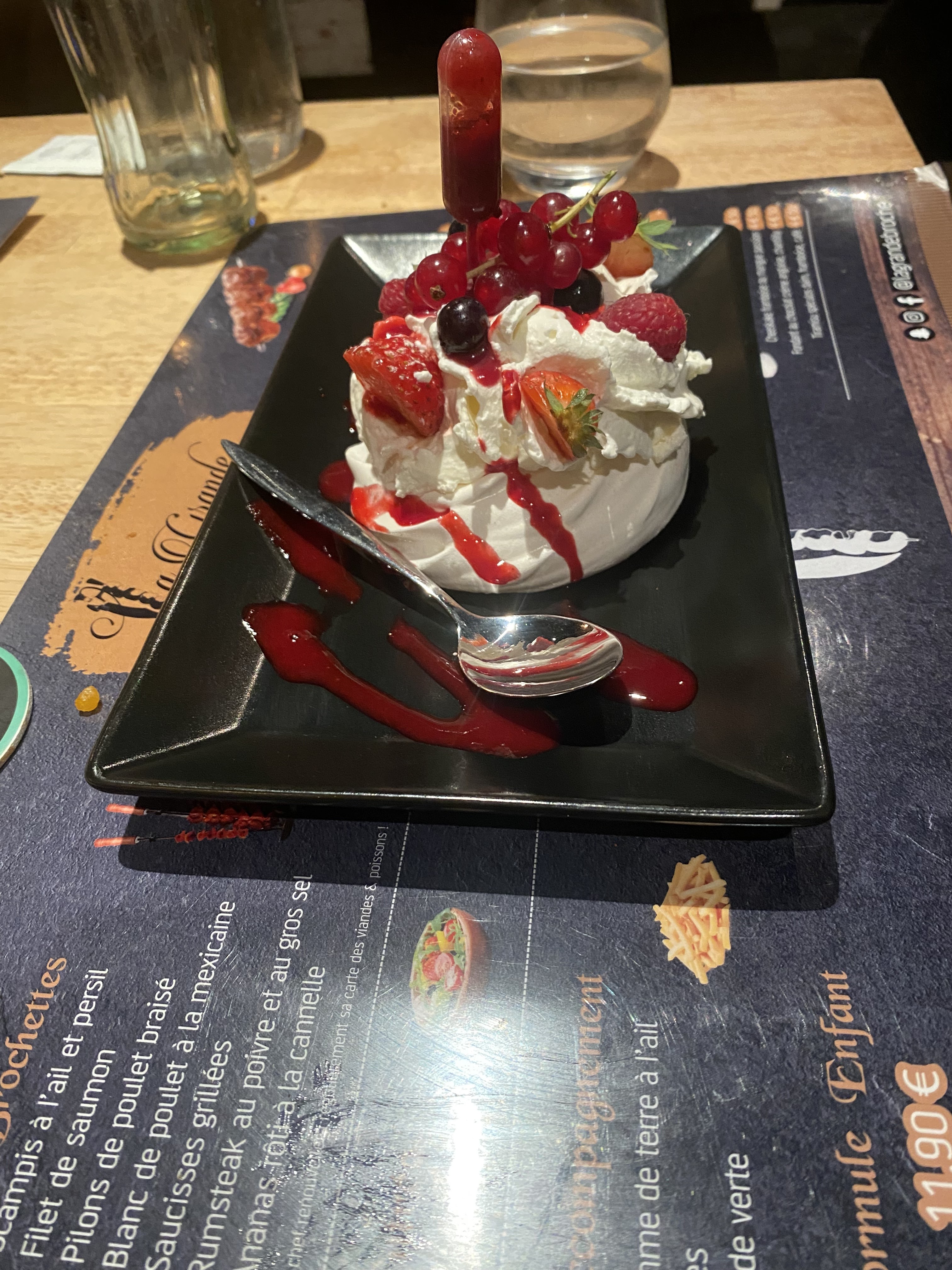 Un joli cadre, un concept sympa ou tout est à volonté viandes et poissons. Cuisinés à la broche, c'est vraiment bon ! Et pour finir l'ananas à la broche 😍 canon !!!! On oubli pas de repartir avec un dessert à emporter parce que sur place on ne s'est plus rien avalée avec tout ça 😅 mention spéciale pour La pavlova une tuerie !!! Seule remarque...service trop rapide ...