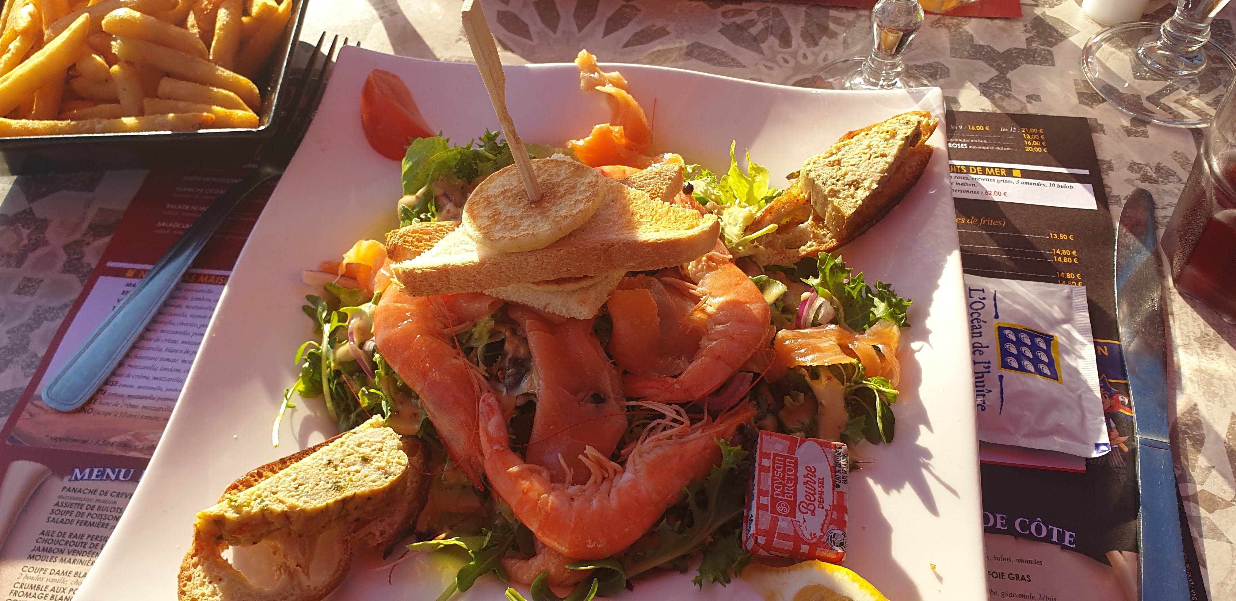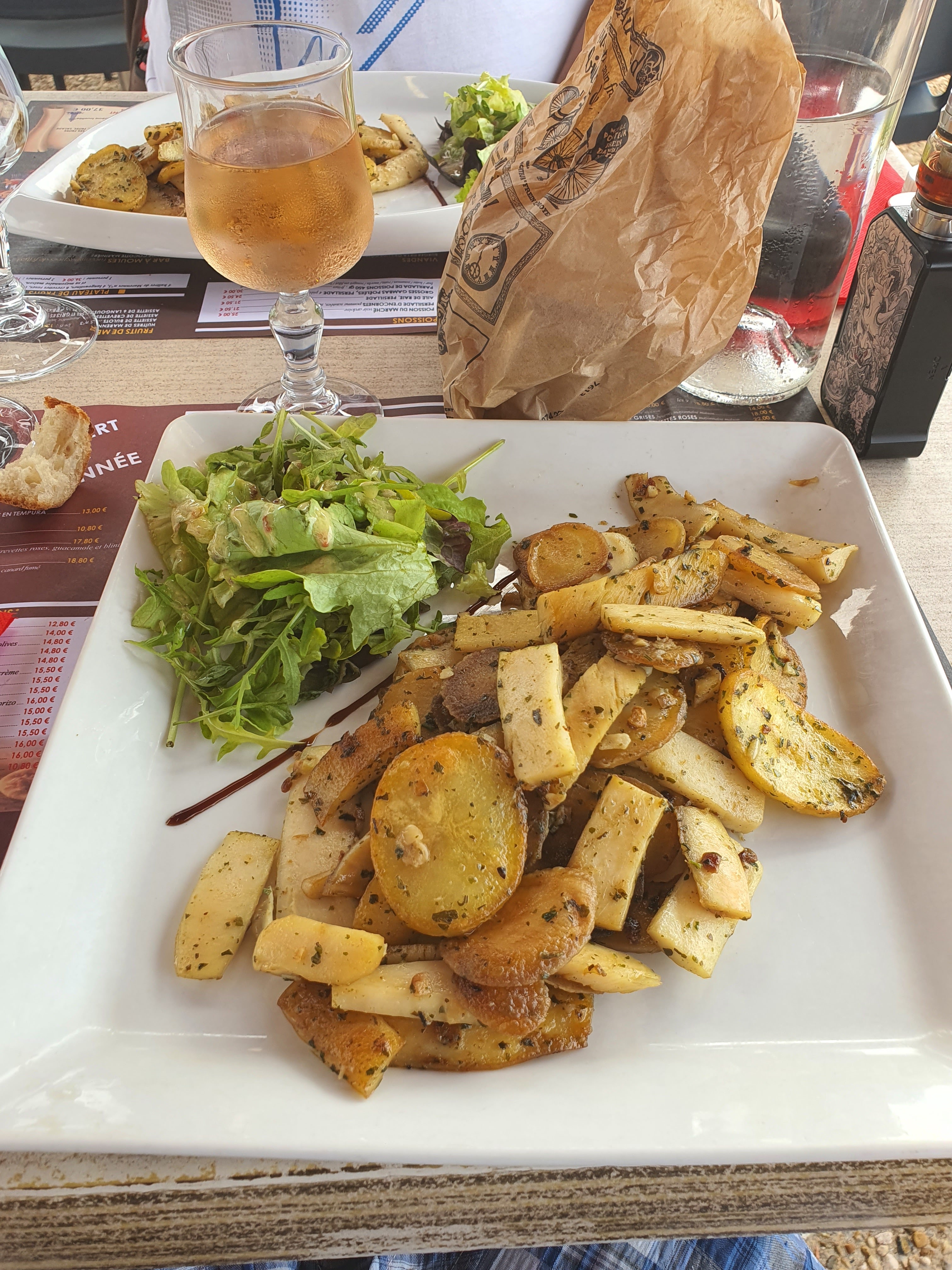 Nous avons déjeunés dans ce restaurant. Les pommes de terre cuites et recuites, les encornets surgelés alors que nous sommes près de l'océan, la photo sur la salade parle d'elle même, elle avait une bonne semaine. Ce qui les sauvent c'est la vue sur mer, pour le reste... ZERO.Nous sommes des clients locaux, alors inutile de vous dire que nous sommes pas près d'y retourner, dommage pour les gens de passage.