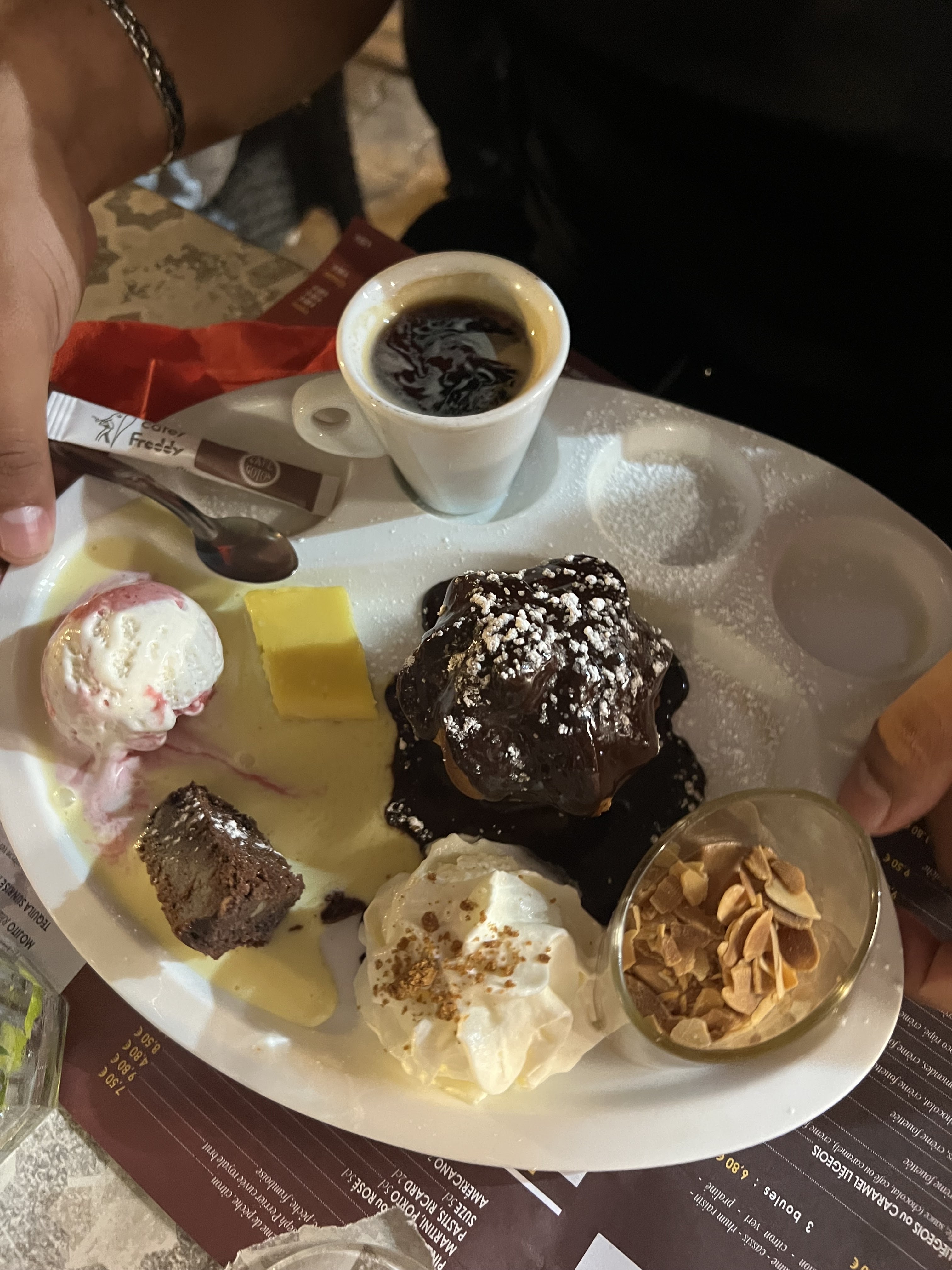Quelle differences avec l'an dernier, oubliés par les serveurs on a eu des portions enfants avec une garniture inexistante.la glace est arrivée fondue seul le prix n'a pas fondu!!!! dû a un changement de proprietaire.