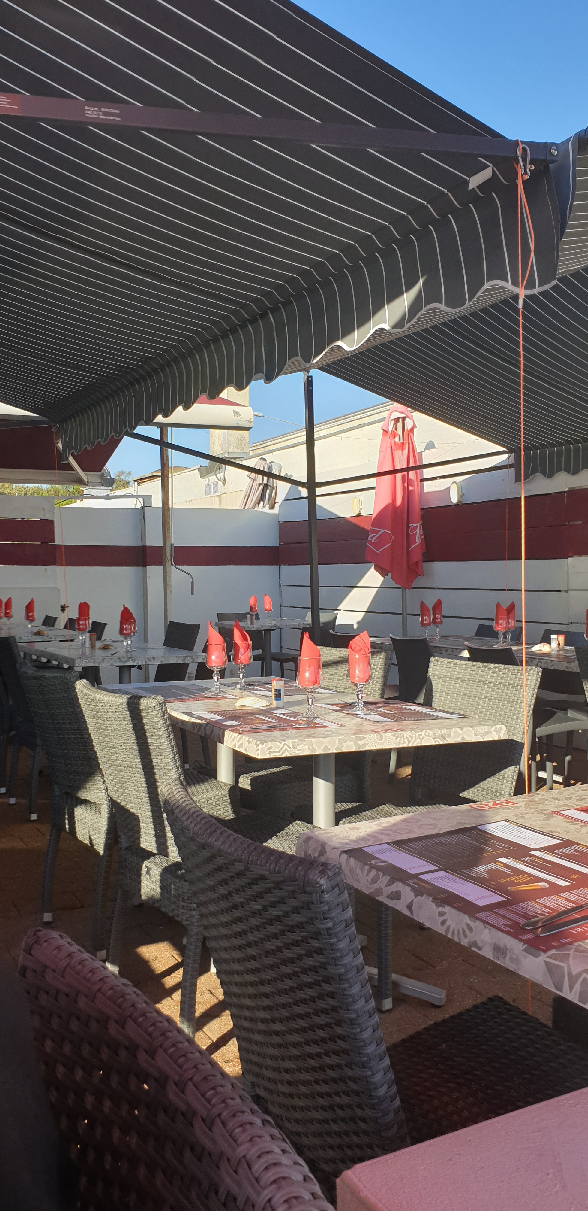 La terrasse en extérieur en phase de beau temps un régal, une vue sur le coucher de ☀ parfait. Les plats sont raffinés et servi avec rapidité.
