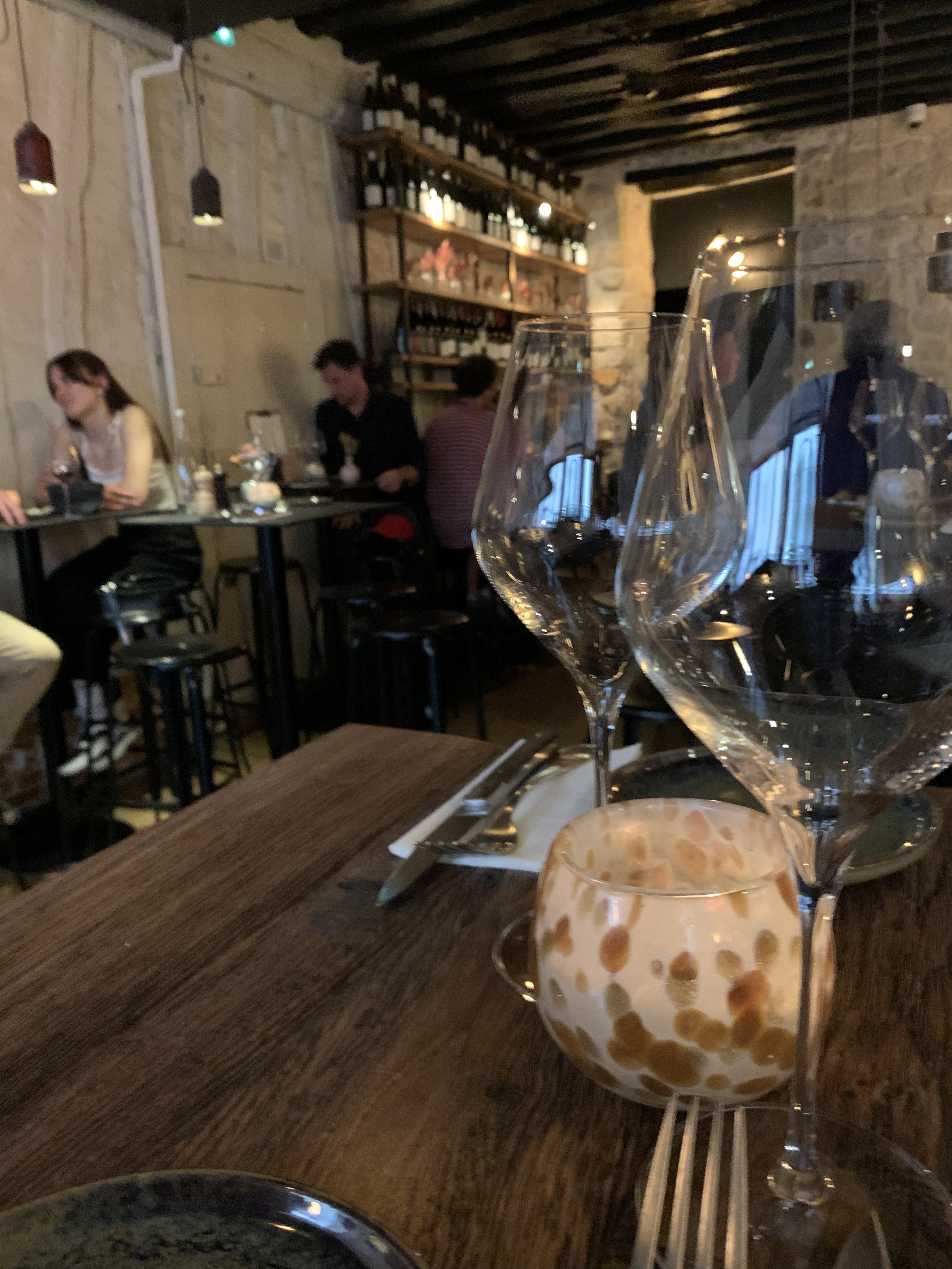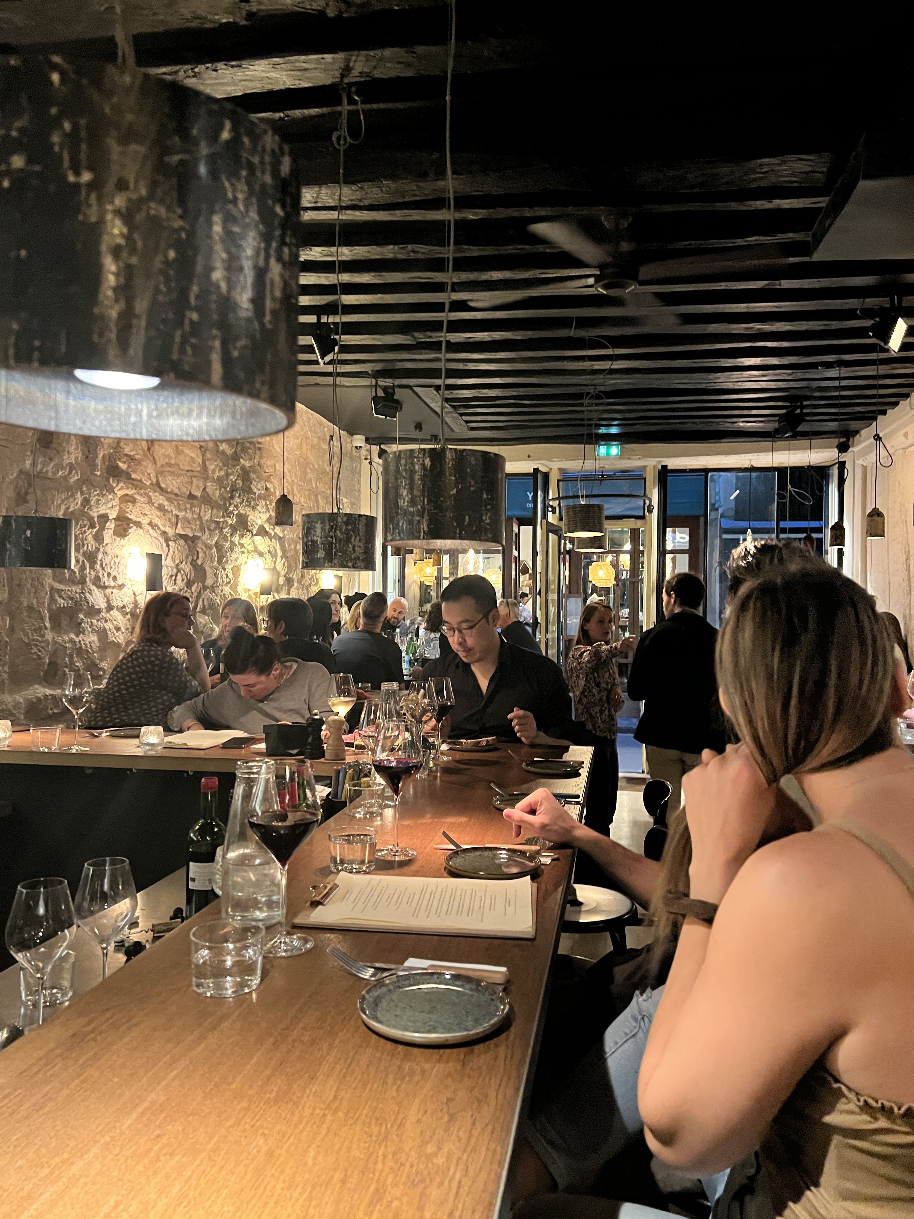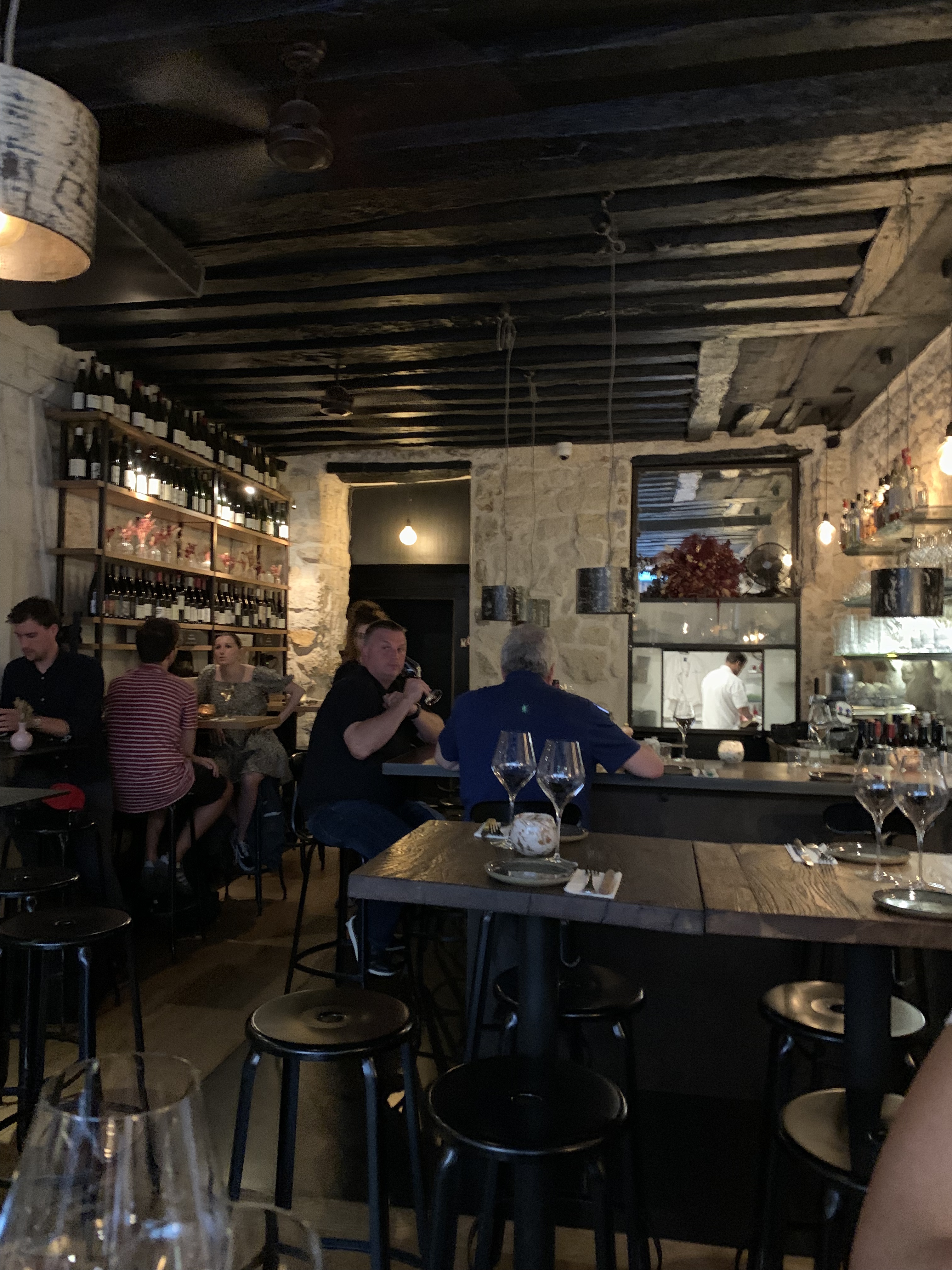 Une très bonne adresse et un cadre superbe avec des murs en pierres et un éclairage agréable qui donne envie de rentrer ! Le service est affable et prévenant et la carte propose des plats assez simples mais avec une touche d’originalité. Beaucoup de plats à partager. Peu de desserts en revanche ! Idéal entre copains ou à 2.
