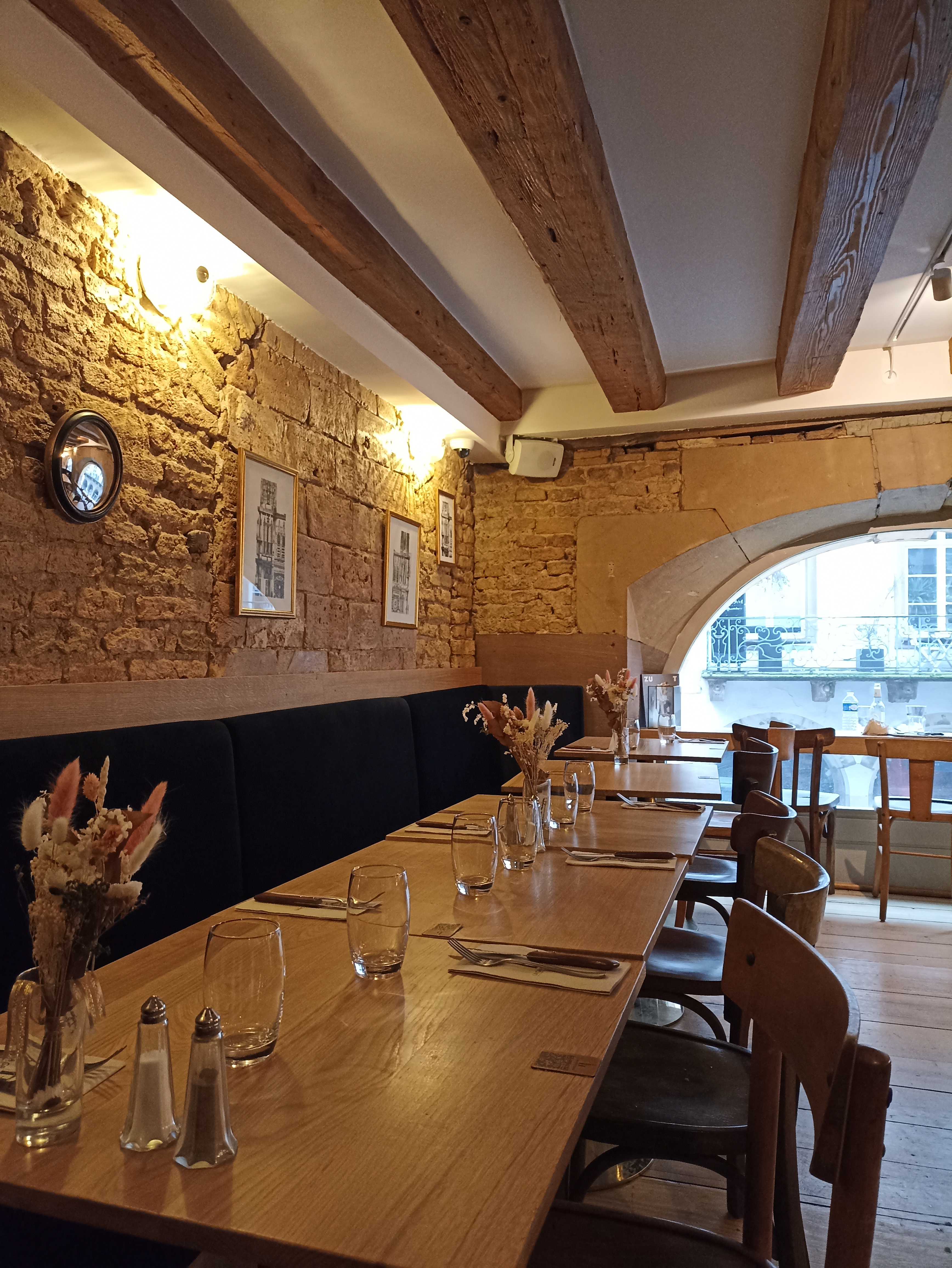 Une adresse qui mérite le détour. Il y a un vrai chef en cuisine et des sourires derrière les masques en salle. Dans ce spot exceptionnel, on retrouve des plats délicieux, des touristes, mais aussi beaucoup de Strasbourgeois qui sont comme à la maison, dans un cadre chaleureux. Au programme du jour, 4 entrées très bien servies et partagées à deux... Un gravelaax de saumon accompagné de salicorne croquante, une tartine de pain frais avec mirabelles, burratina fumée et roquette, un velouté artichaut truffé avec croûtons et une poêlée escargots girolles dans une sauce dont nous n'avons pas laissé la moindre goutte. PS : en plus de la vue de folie sur la Cathédrale, l'étage a été refait avec goût, les prix sont franchement raisonnables et il y a un menu du jour.