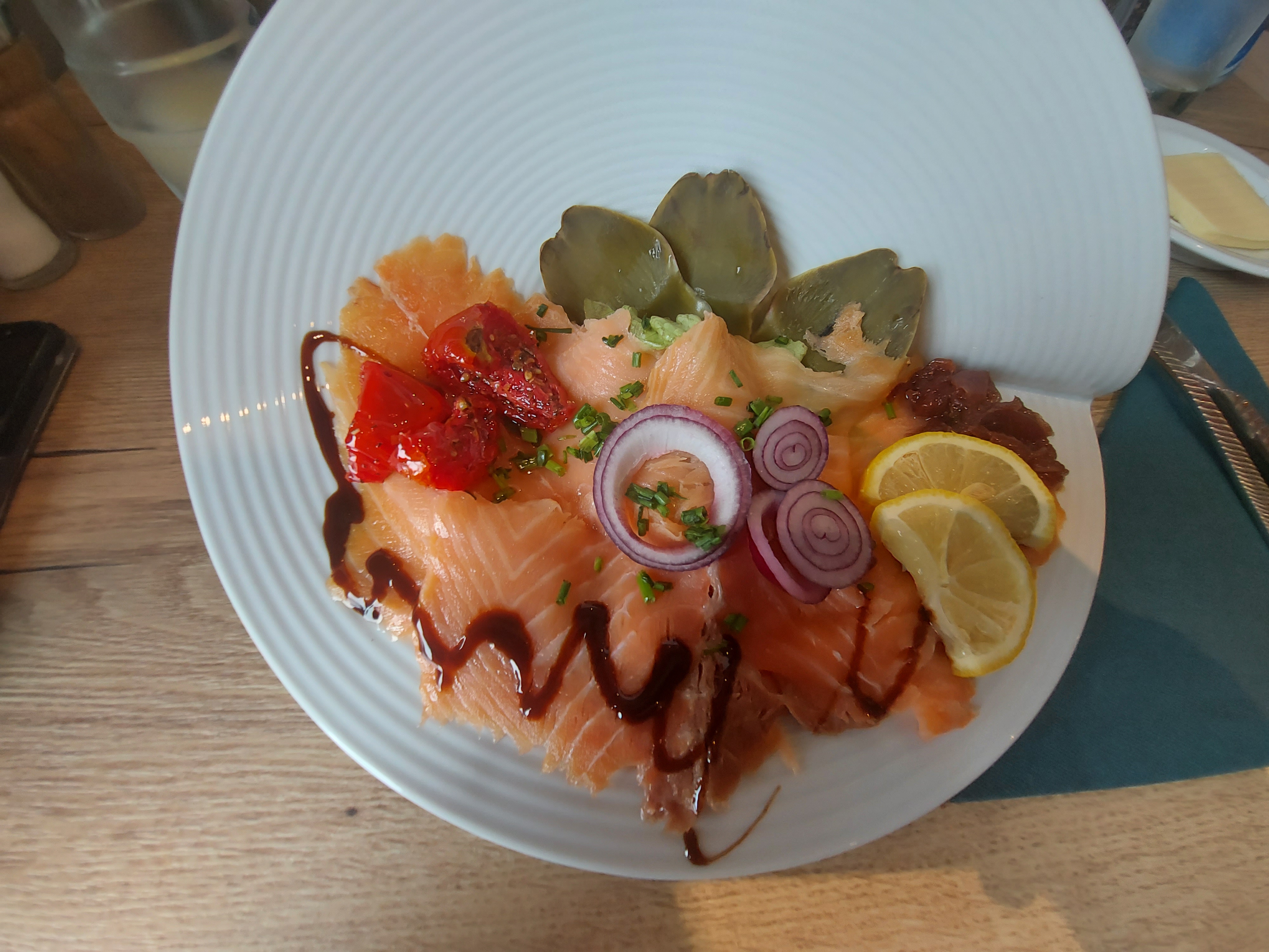 Je ne me suis arrêté que par hasard et nous sommes très heureux de l'avoir fait. Je viens juste de descendre de la moto et la pluie est tombée. Nourriture délicieuse, personnel adorable, ambiance charmante. La pluie s'est arrêtée et nous nous sommes dit au revoir. Un de ces moments de tournée qui restera gravé dans votre mémoire.