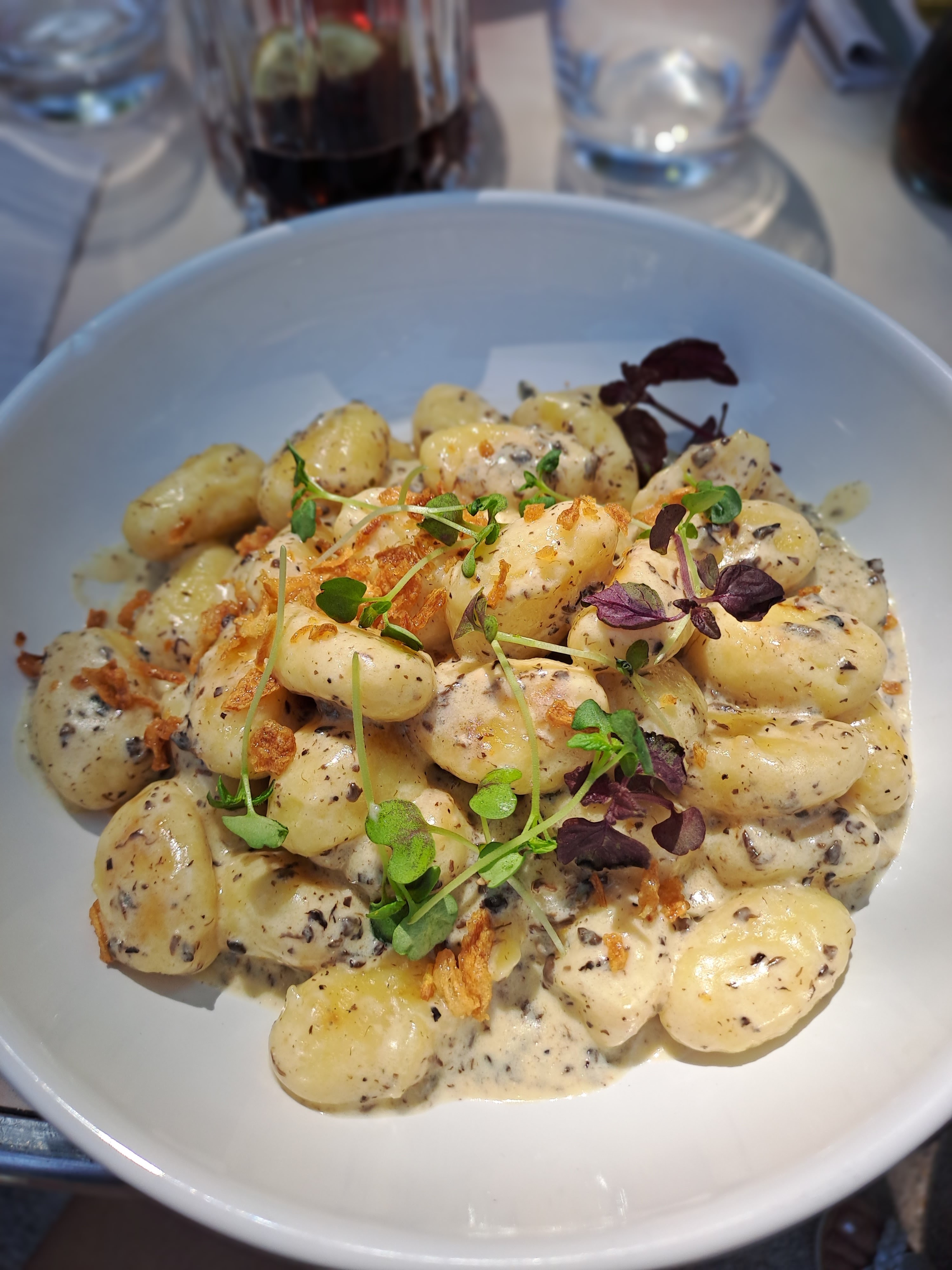Deuxième passage dans ce restaurant qui réitère une très grande qualité de service et de plats. Cocktail : Margarita 10€ Entrée : Carpaccio de St Jacques 17€ (plat que j'ai le moins aimé) Plat : Gnocchi sauce crème de tartufata 18€ - j'ai goûté le pluma de cochon, il était vraiment excellent Dessert : Café gourmand 10€ Total : 55€ - Je recommande