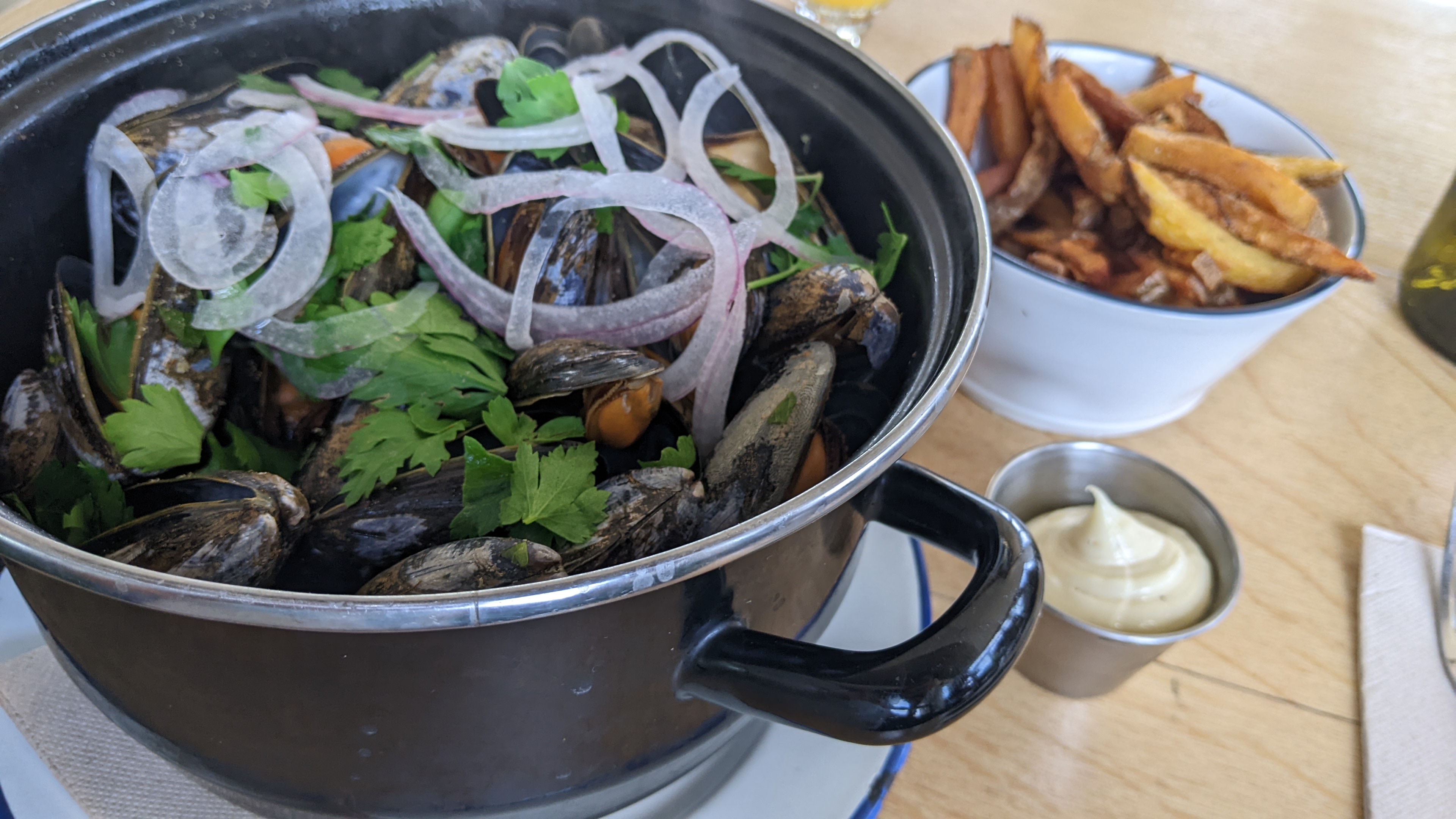 Très bon restaurant, et merci au personnel de nous avoir trouvé une table sans réservation. Petits plats à partager en entrée et de très bonnes moules en plat. Nous reviendrons rapidement pour le dessert !