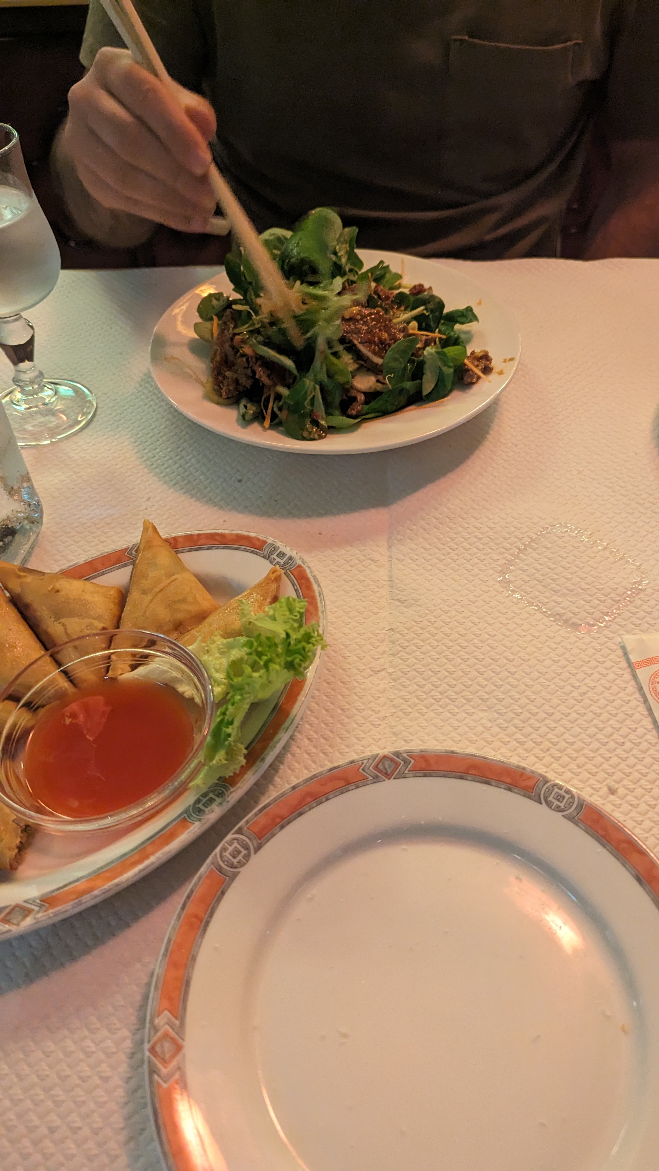 Plateau entrées nem, samoussas, ravioli frit. Je conseille pour 2 . Excellent pot au feu thaï. Tout était délicieux et raffiné. Je recommande sans aucune hésitation. Le cadre est vraiment agréable.