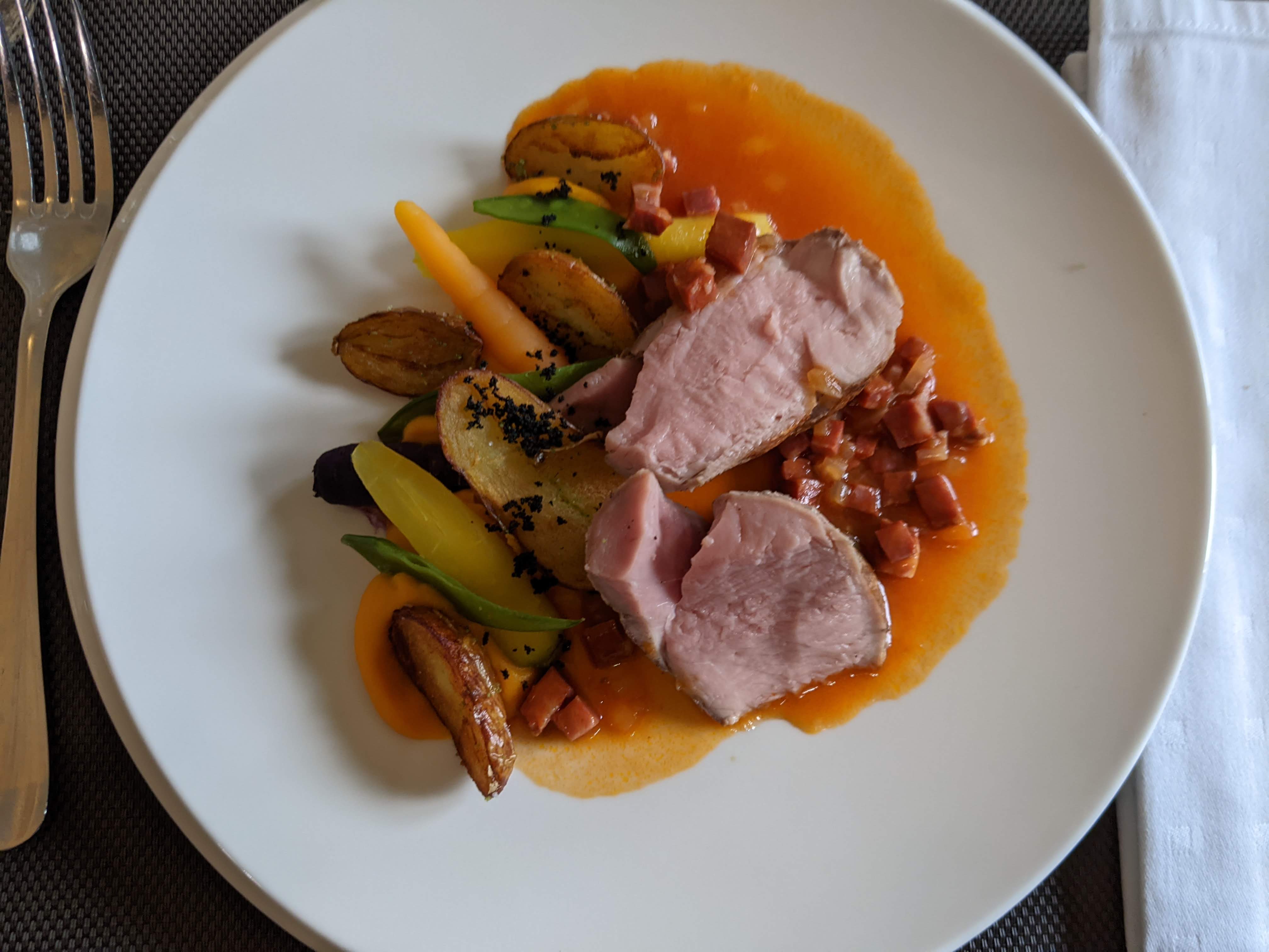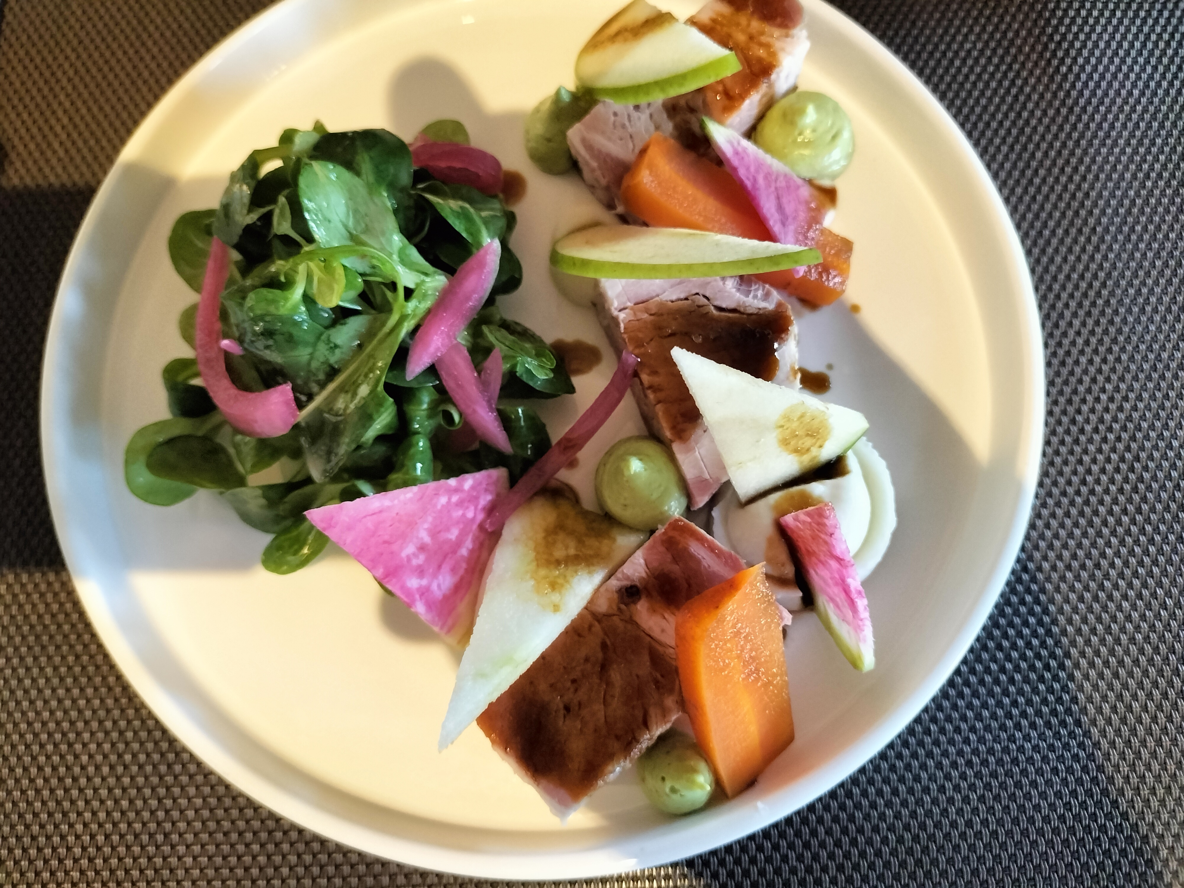Repas délicieux avec des mets raffinés. Présentation et produits de qualité. Service impeccable. Une cheffe de salle efficace et un service impeccable. Parfait. Excellent