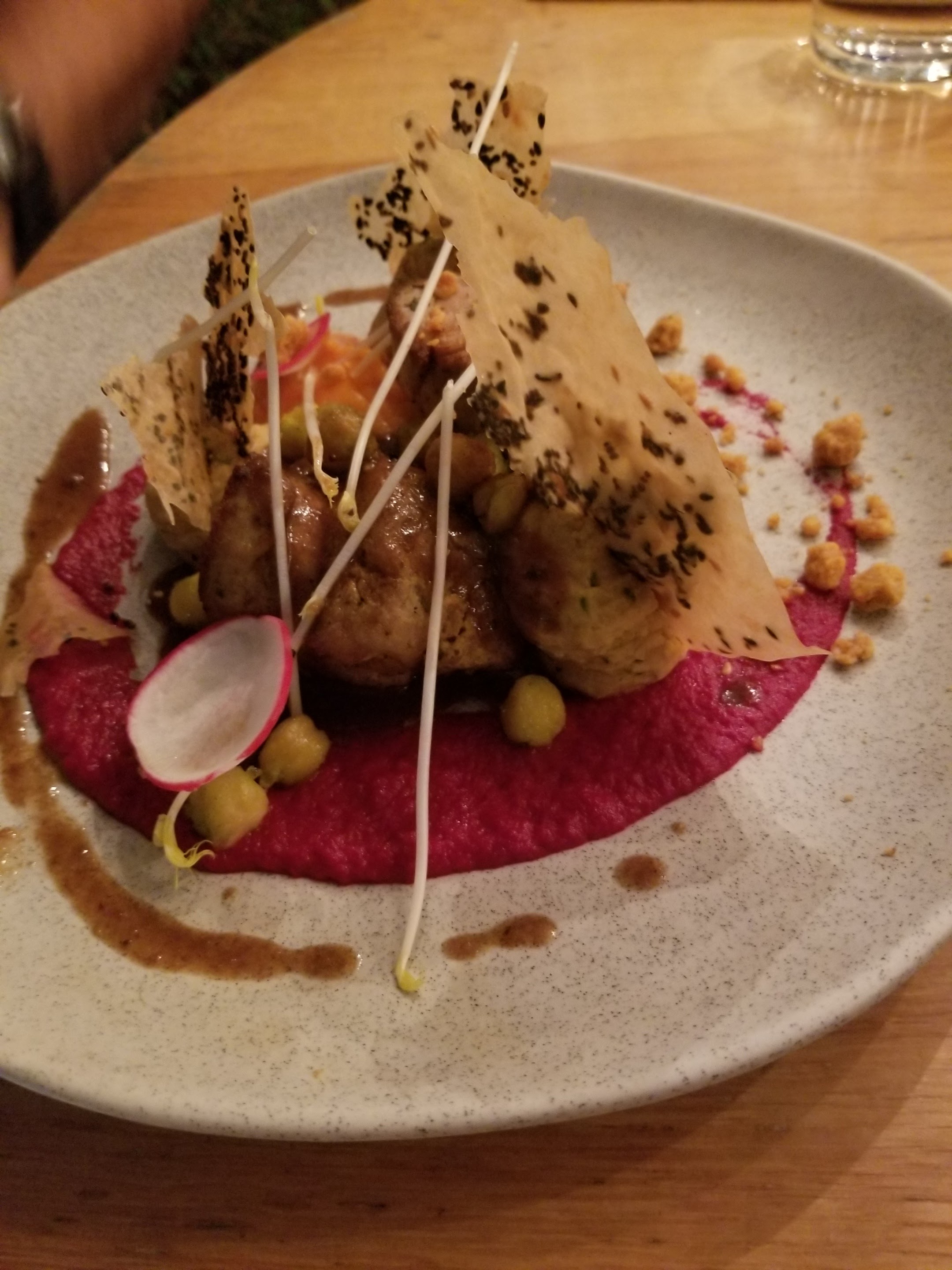 Enfin un restaurant différent , c'est d abord un voyage visuel, puis le goût est au rendez-vous. (il y a des points à améliorer mais cela fait partie du chemin de la perfection...) Chaque plat est une découverte... 🙏