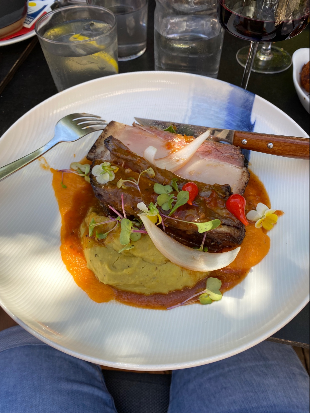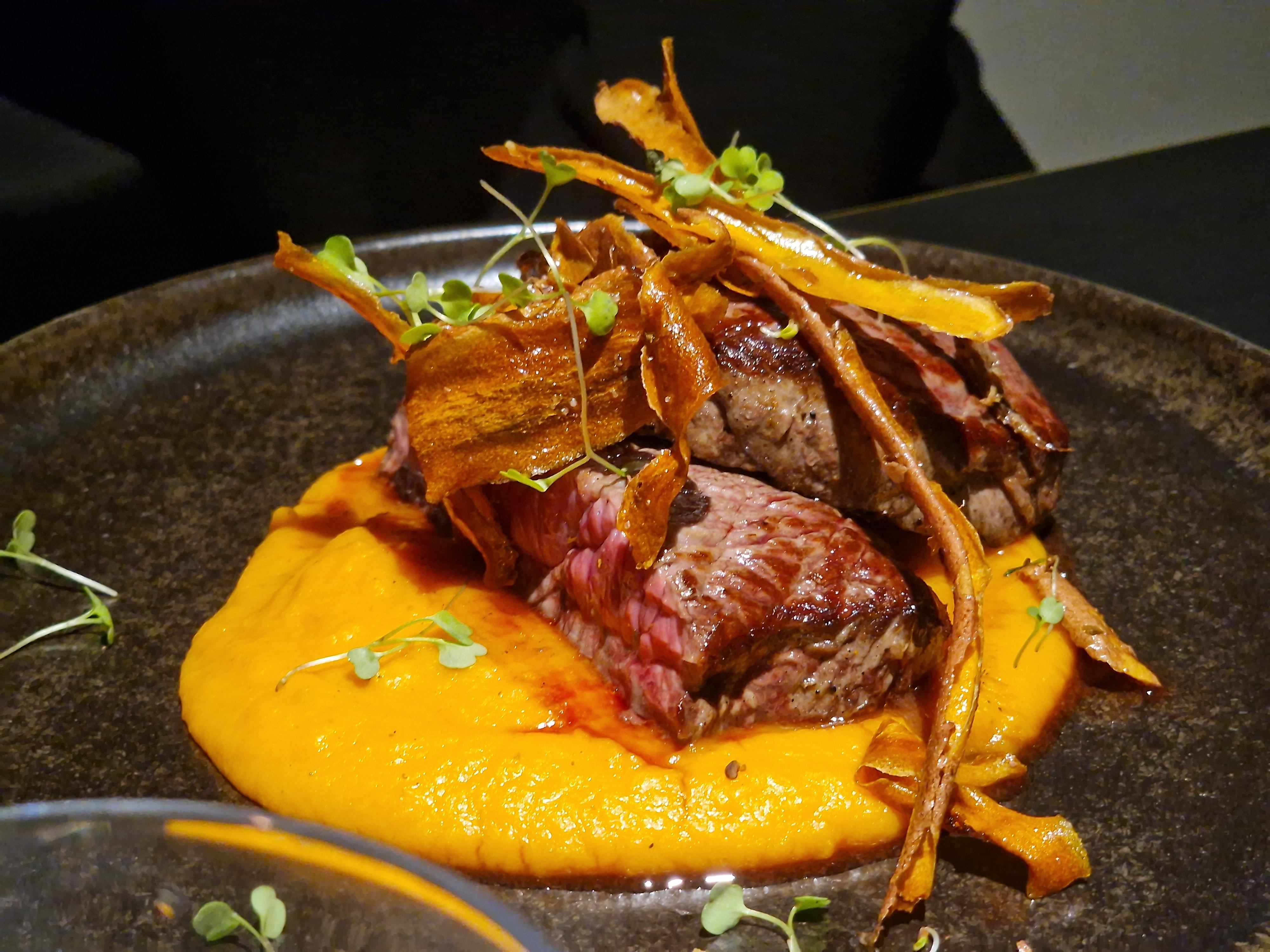 Très joli lieu, en revanche manque d’expérience dans le service (cocktail renversé et non essuyé sur la table, plusieurs serveurs s’occupent de la table et présentation rapide des menus sans attendre les questions. Petit malentendu sur la prise de commande: Deux choix dans la pièce du boucher, on m’annonce que mon plat n’est pas disponible et on me propose en ÉCHANGE d’avoir l’autre plat. En revanche il y avait une différence de 20€ ce qui ne m’a pas été précisé ce moment là. J’étais assez surprise une fois à là caisse car je m’attendais à ce que mon plat soit au prix des côtelettes, étant donnée qu’on me faisais un ÉCHANGE. J’ai essayé de l’expliquer à la serveuse qui n’a pas voulus comprendre. Je n’ai pas prit le plat en photo mais c’était extrêmement copieux et pas très bien travaillé contrairement aux autres plats. Ça m’a vraiment ennuyer de payer un plat 45€ alors que je n’ai rien manger dessus et ce n’étais pas ce que je voulait. Un peu déçues au vue de tout les bons commentaires qu’il y avait je m’attendais globalement à mieux…