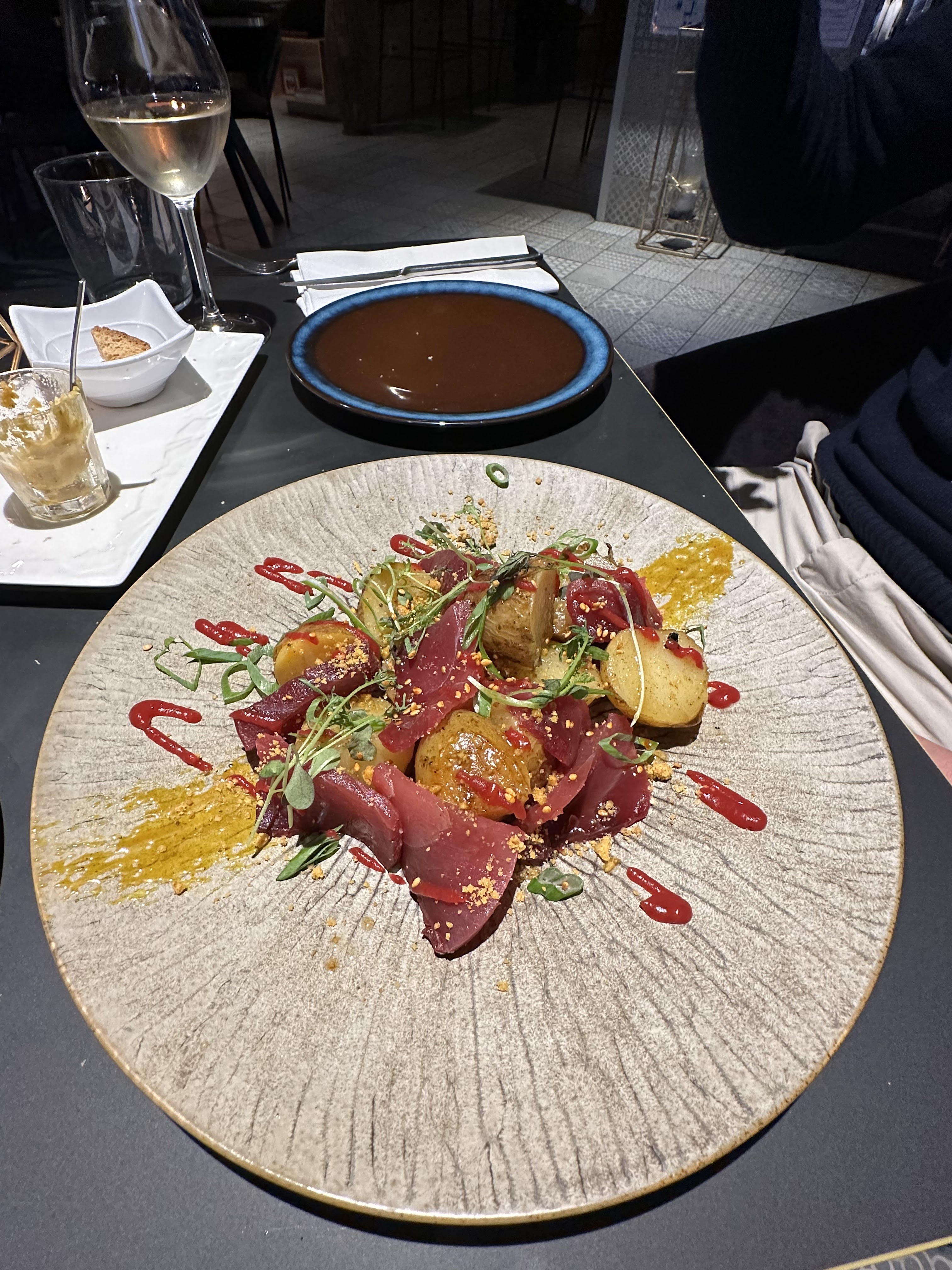 Une belle découverte, délicieux du début à la fin , ont s’est régalé totalement. Bravo au chez ainsi le personnel si gentil.