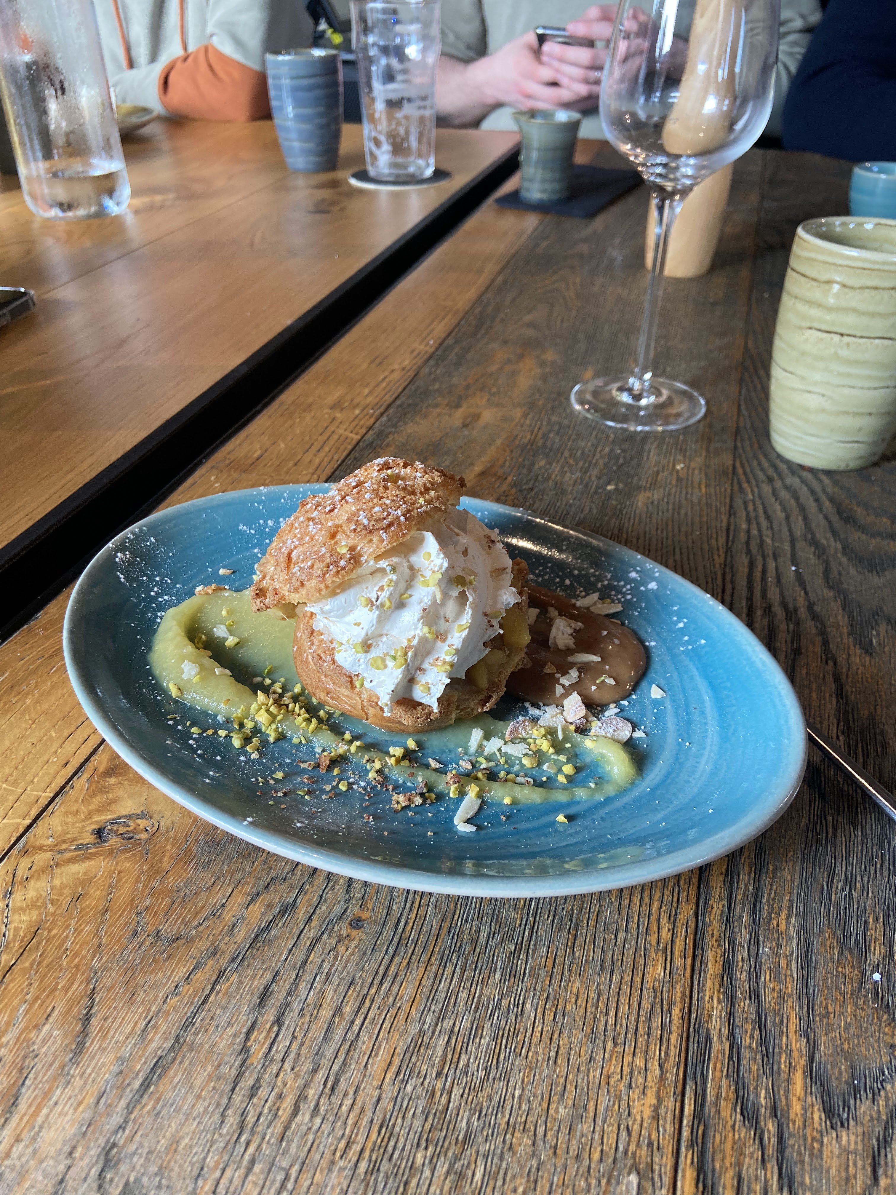 Déjeuner avec un ami. Bon accueil. Décoration et tables soignées. Plats corrects mais trop d'attente notamment pour le dessert.