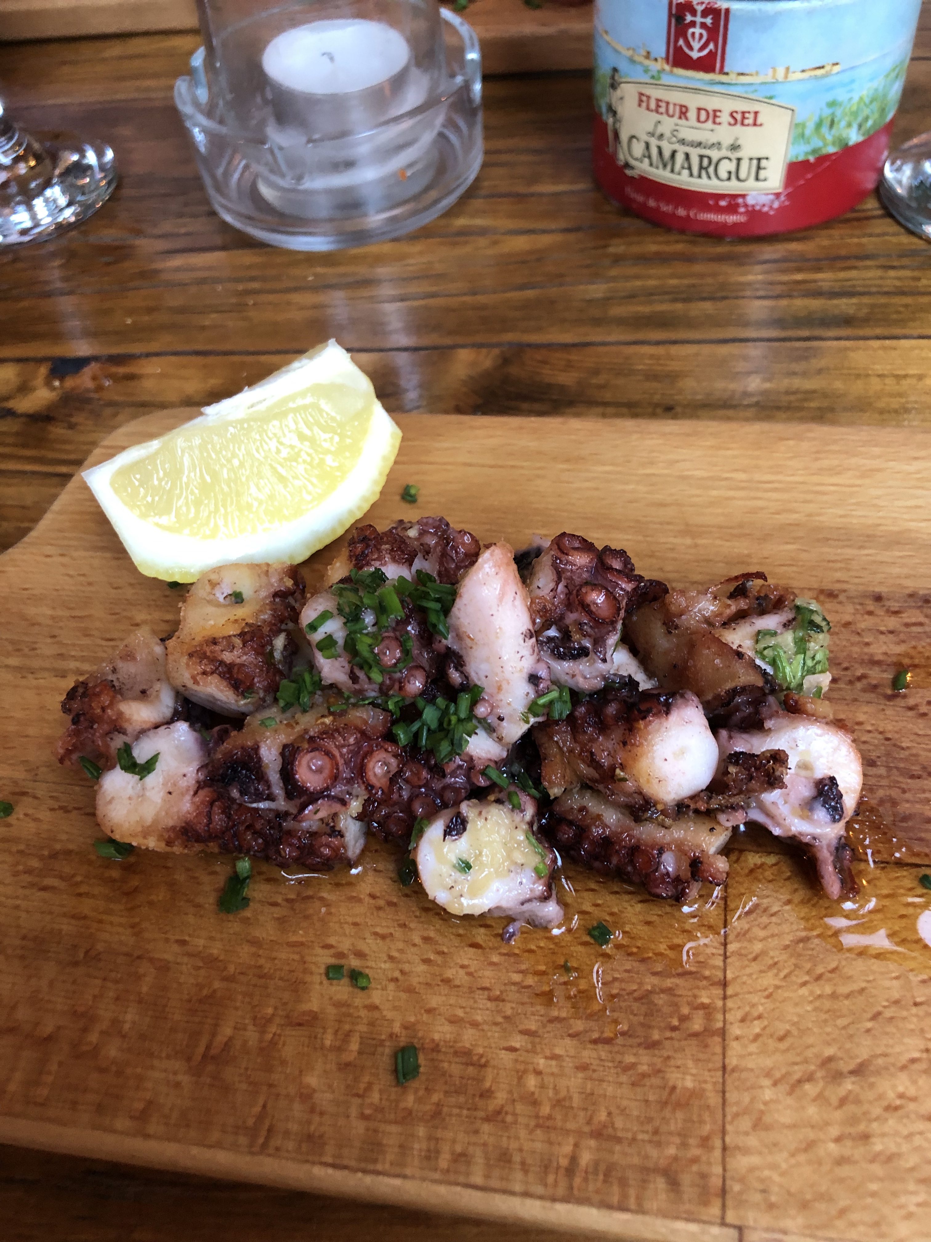 Accueil léger ! Pendant que nous attendons notre tour une table s’installe devant nous. Mais pour y avoir déjà été, nous passons … et nous installons dans le jardin, tout aussi agréable . Nous ferons de notre repas les « grignottes » toutes aussi délicieuses les unes que les autres, agrémentées d’un excellent rosé de Provence. Et les desserts : sublimes ! Nous y retournerons avec plaisir !