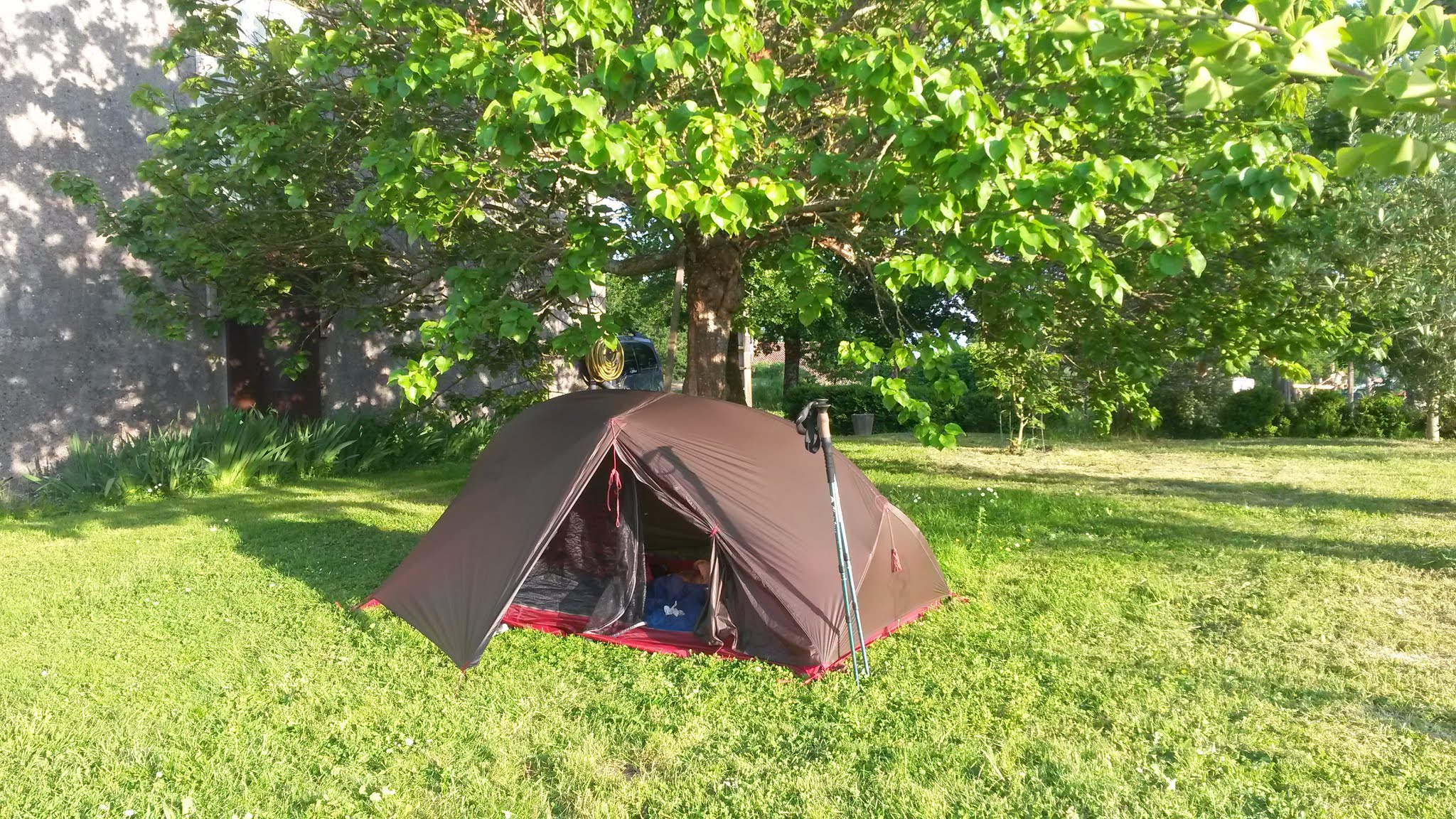 Arrivés sous la pluie, nous n'avons pas pu profiter du beau jardin... dommage ! Mais nous avons passé une belle soirée, avec des hôtes accueillants, un bâtiment original, un joli dortoir pour notre groupe de 6 où nous avons dormi comme des bébés, après un repas excellent en compagnie d'autres marcheurs très sympathiques. Merci et bonne continuation