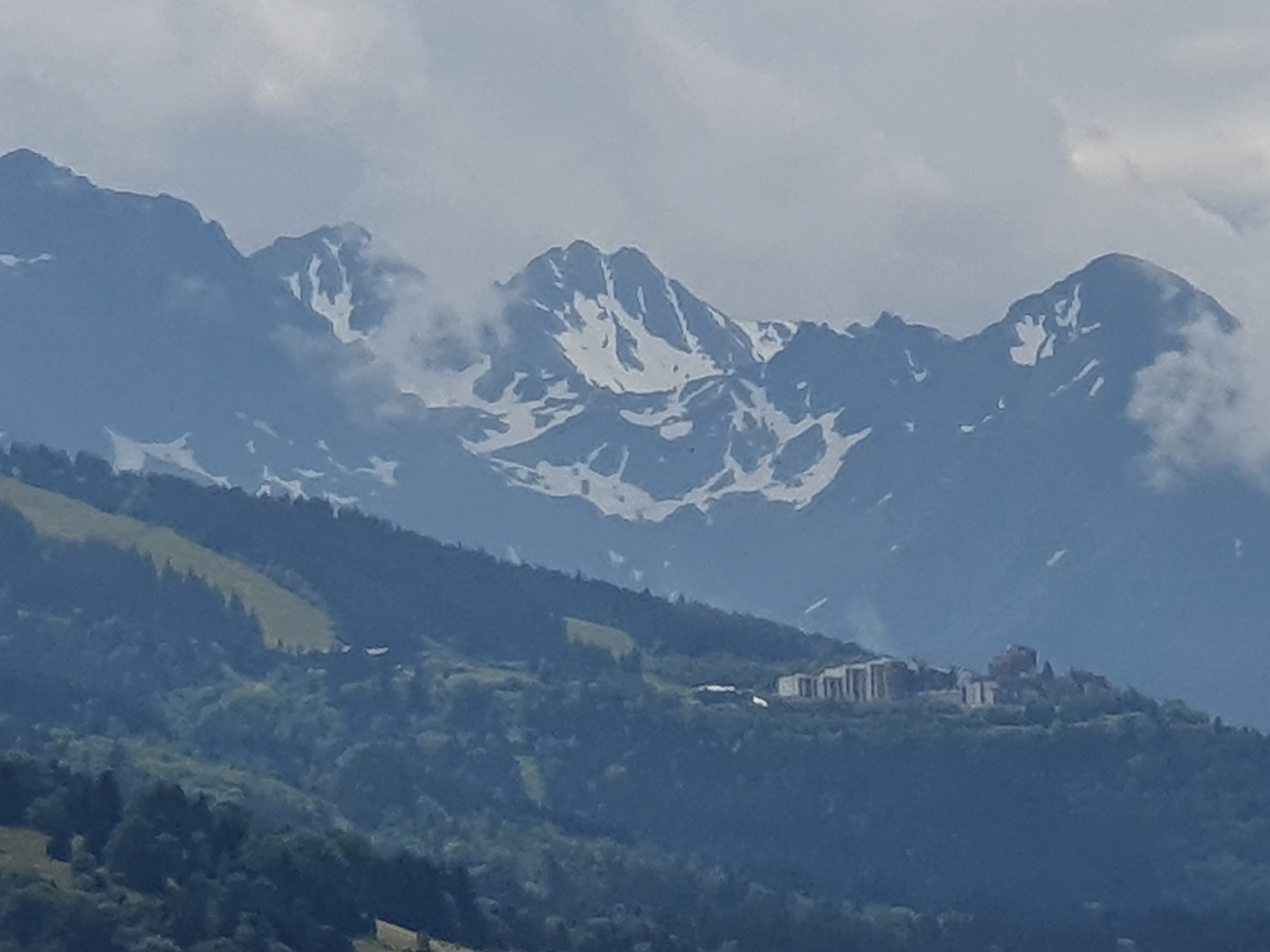 Vue sur la montagne imprenable! Ça donne envie de goûter à la cuisine traditionnelle.. malheureusement c'était le jour de fermeture. On va revenir ;-)