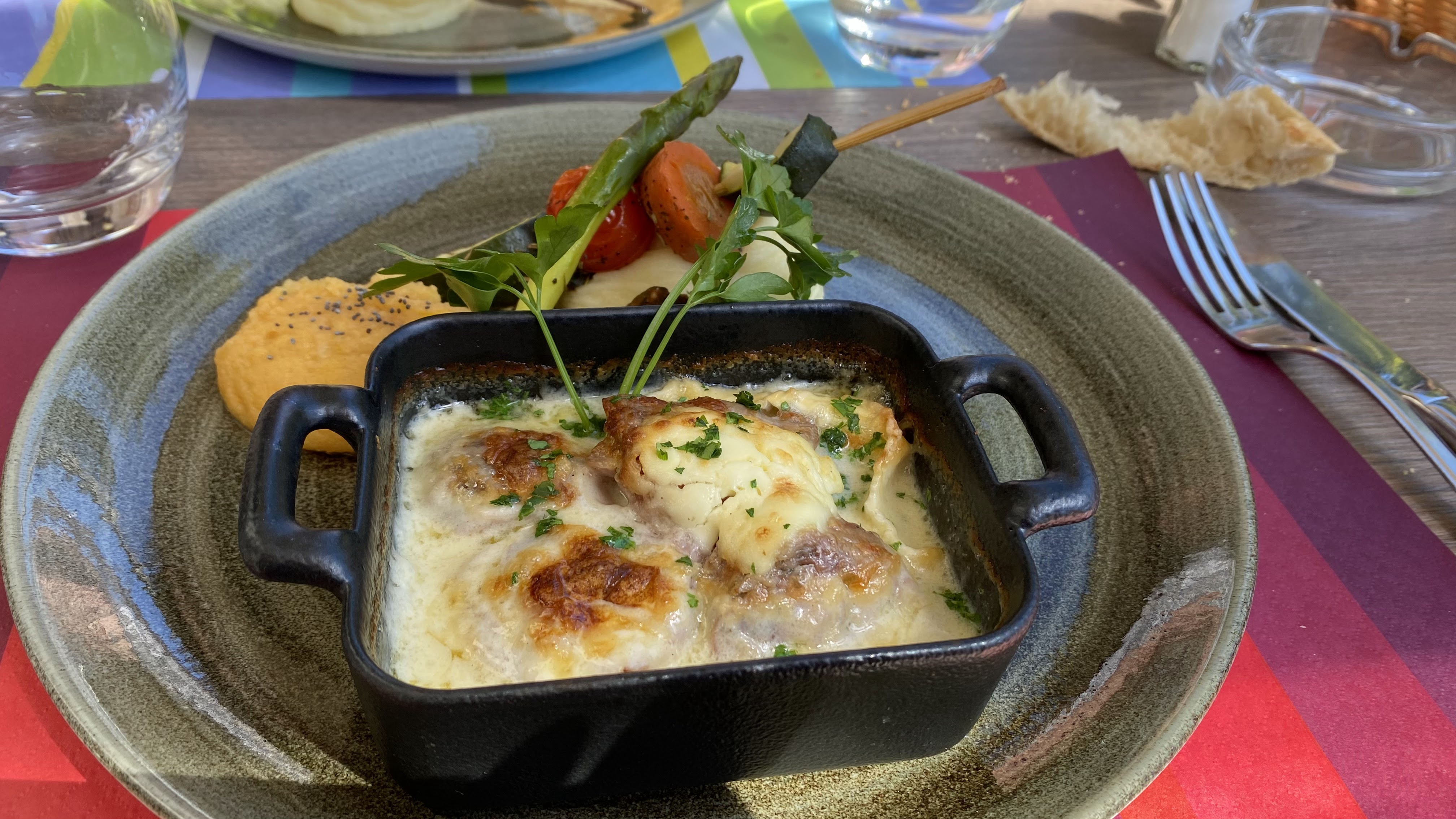 Excellent accueil. Serveuses bien attentionnées et très a l'écoute malgré leurs rythme bien soutenue. C'est très agréable d'avoir ce côté pro ki se perd malheureusement dans bcp d'établissements. Il existe différents menus entrée plat dessert et un beau choix en carte. Nous avons opté pour la 1/2 douzaines d'escargots et gaspacho tomate basilic (sa particularité une boule de glace au gaspacho) en entrée. Brochette d'onglet de boeuf et noix de jambon a la sauce au miel et ratafia en plats. En dessert 2 boules vanille avec grottes tièdes et crêpes au miel. Un régal de produits simples. Un petit magasin est lié au resto pour kelkes souvenirs Je valide !