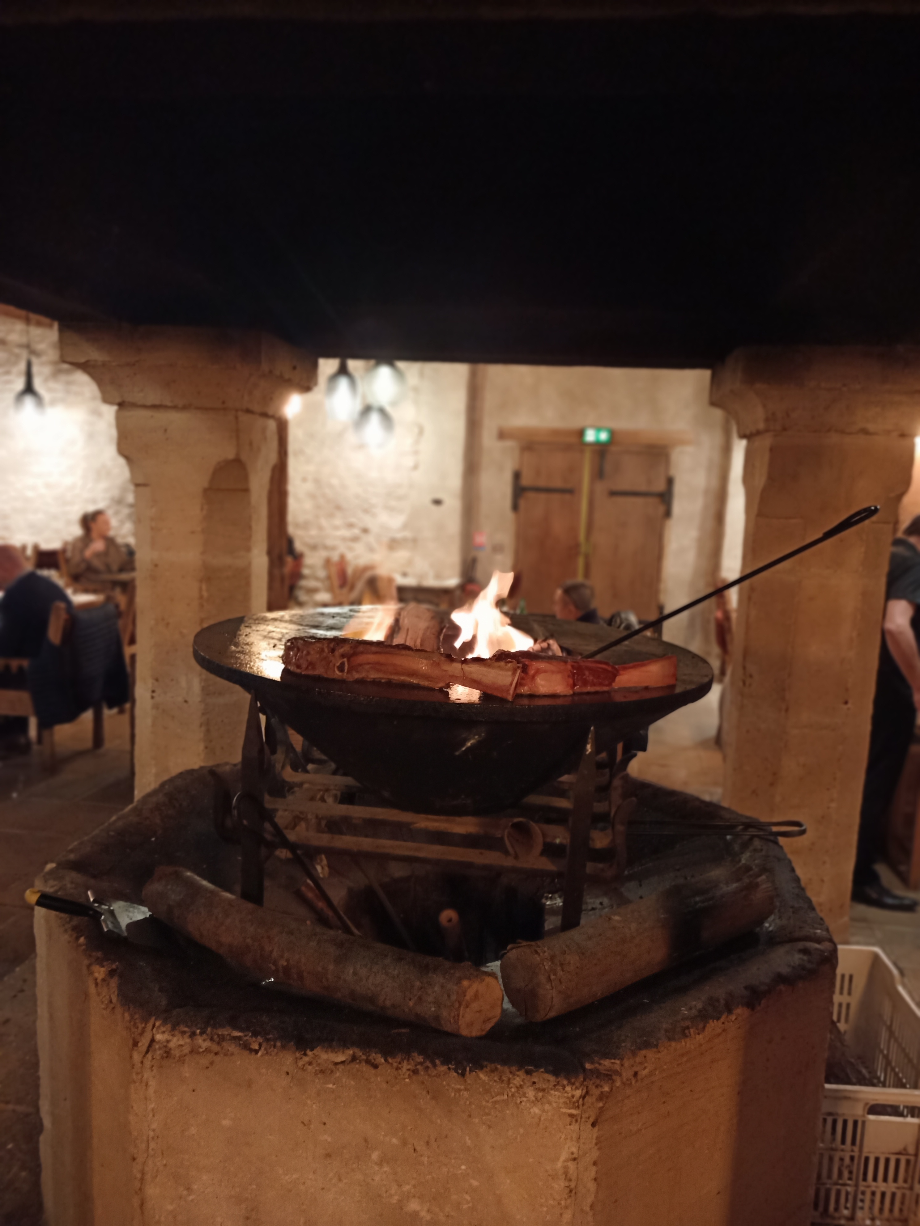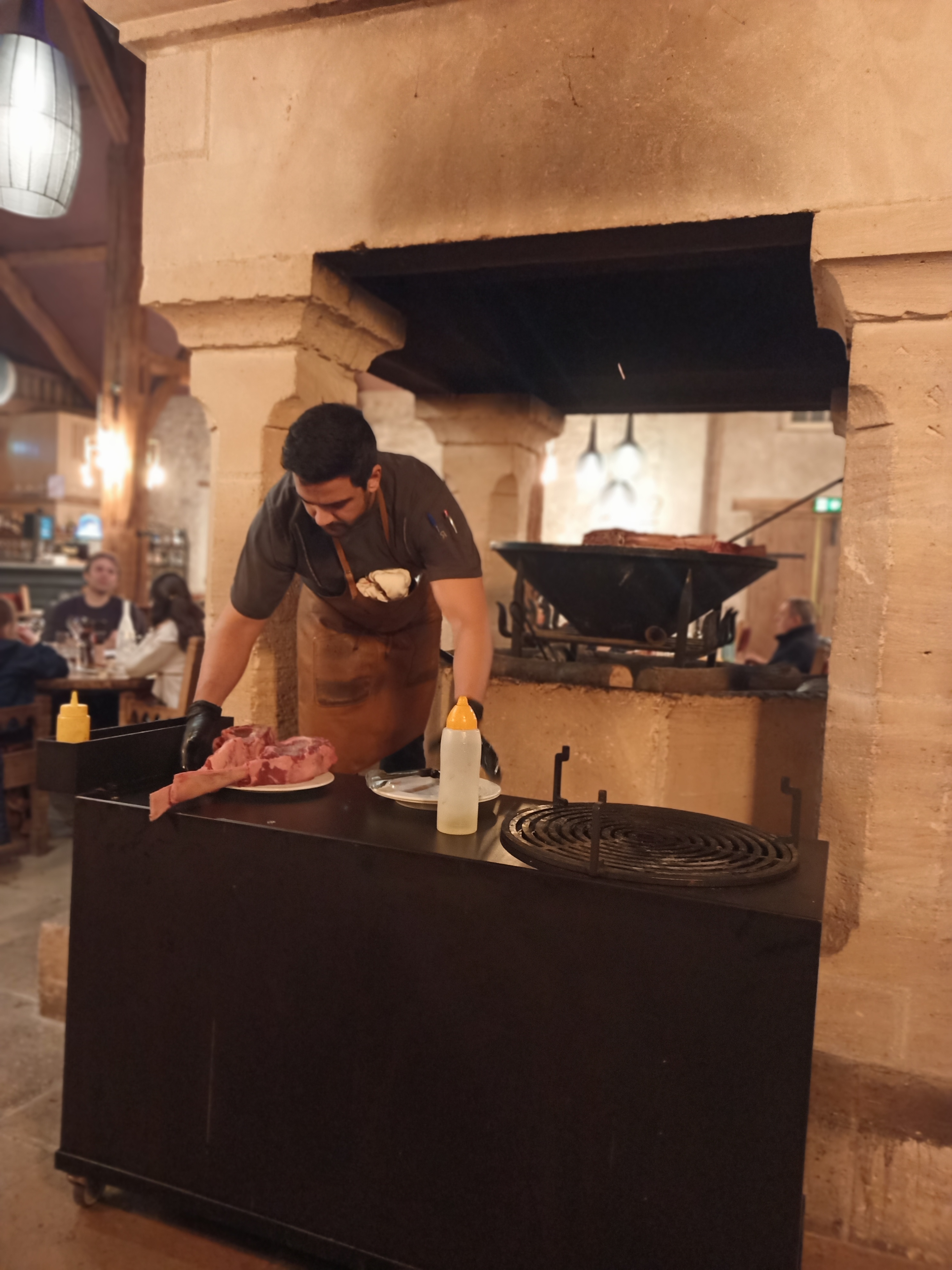 Lieu atypique avec un décor médiéval un peu kitsch. Une originalité pour les amateurs, grillade au Boufadou directement sur le brasero.