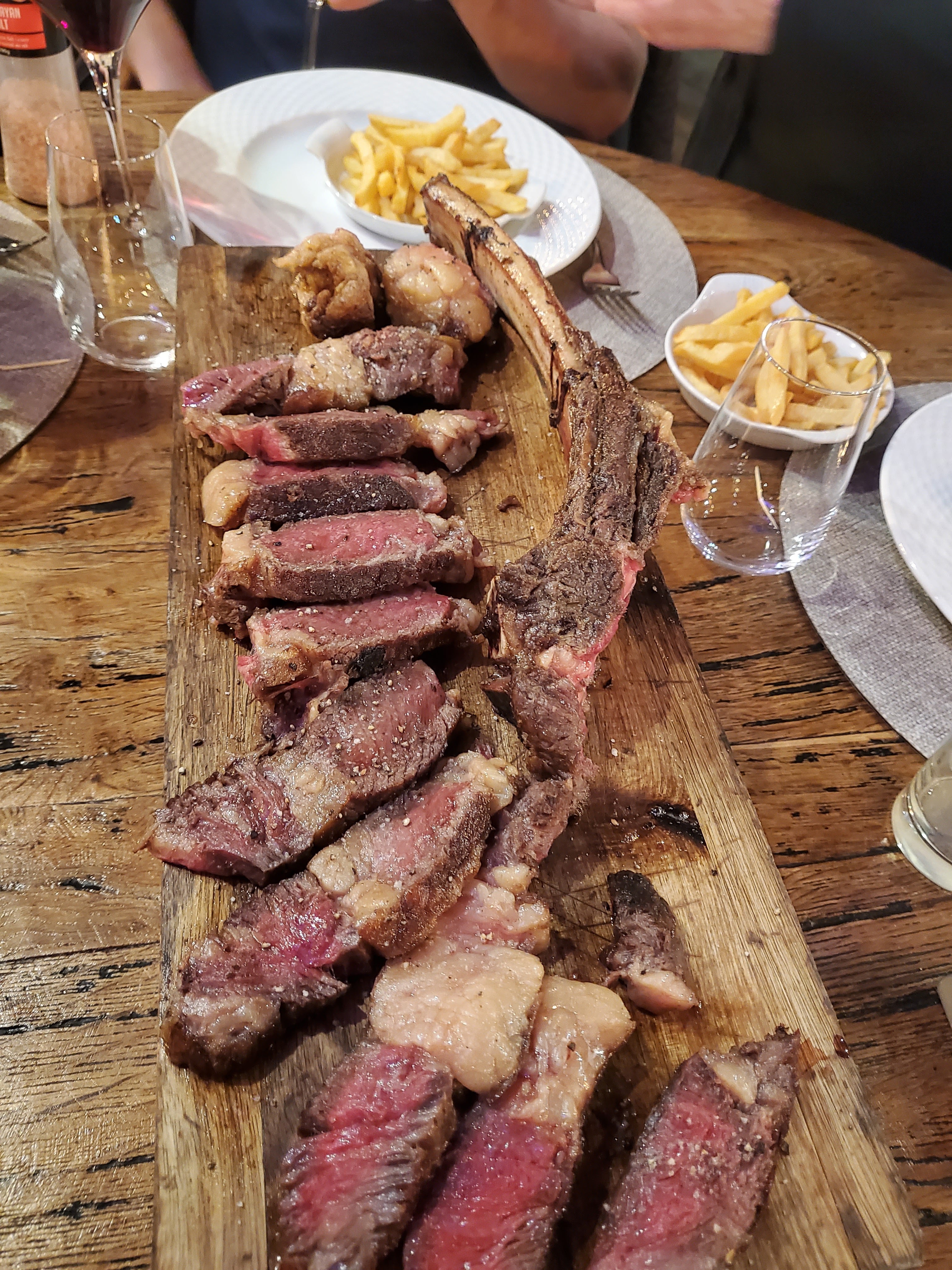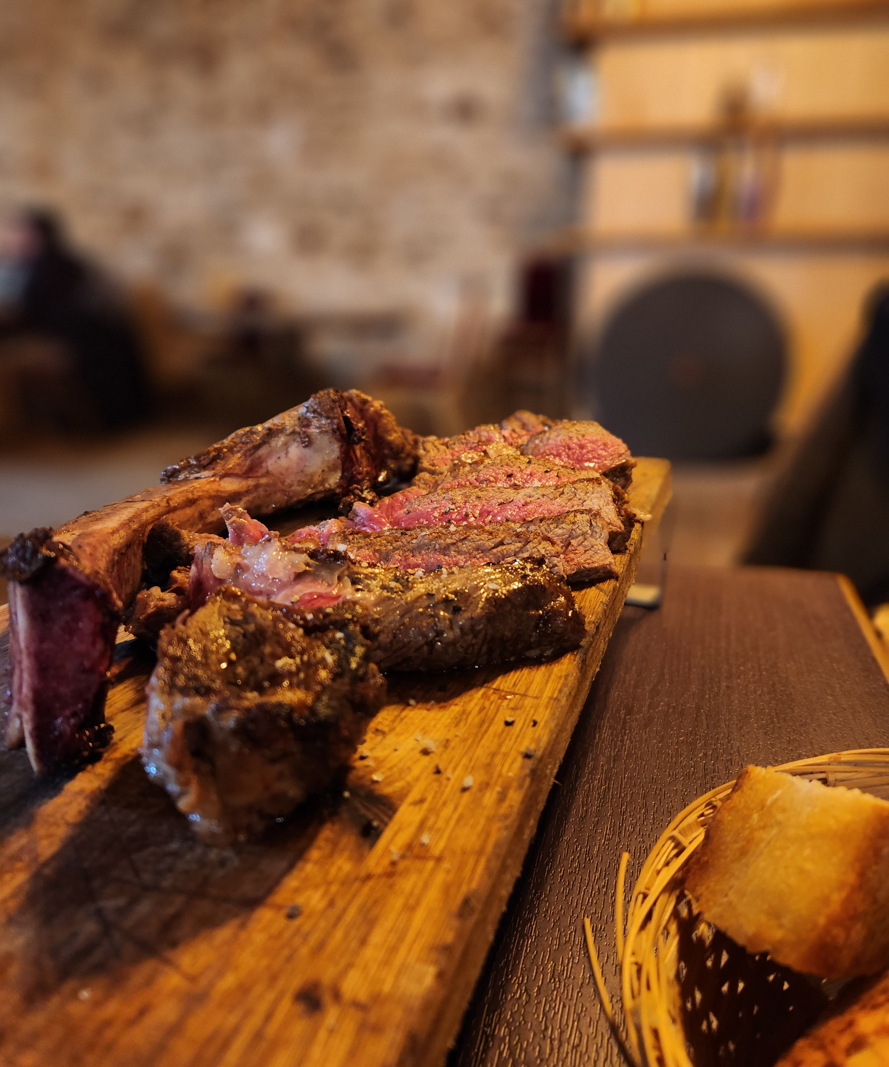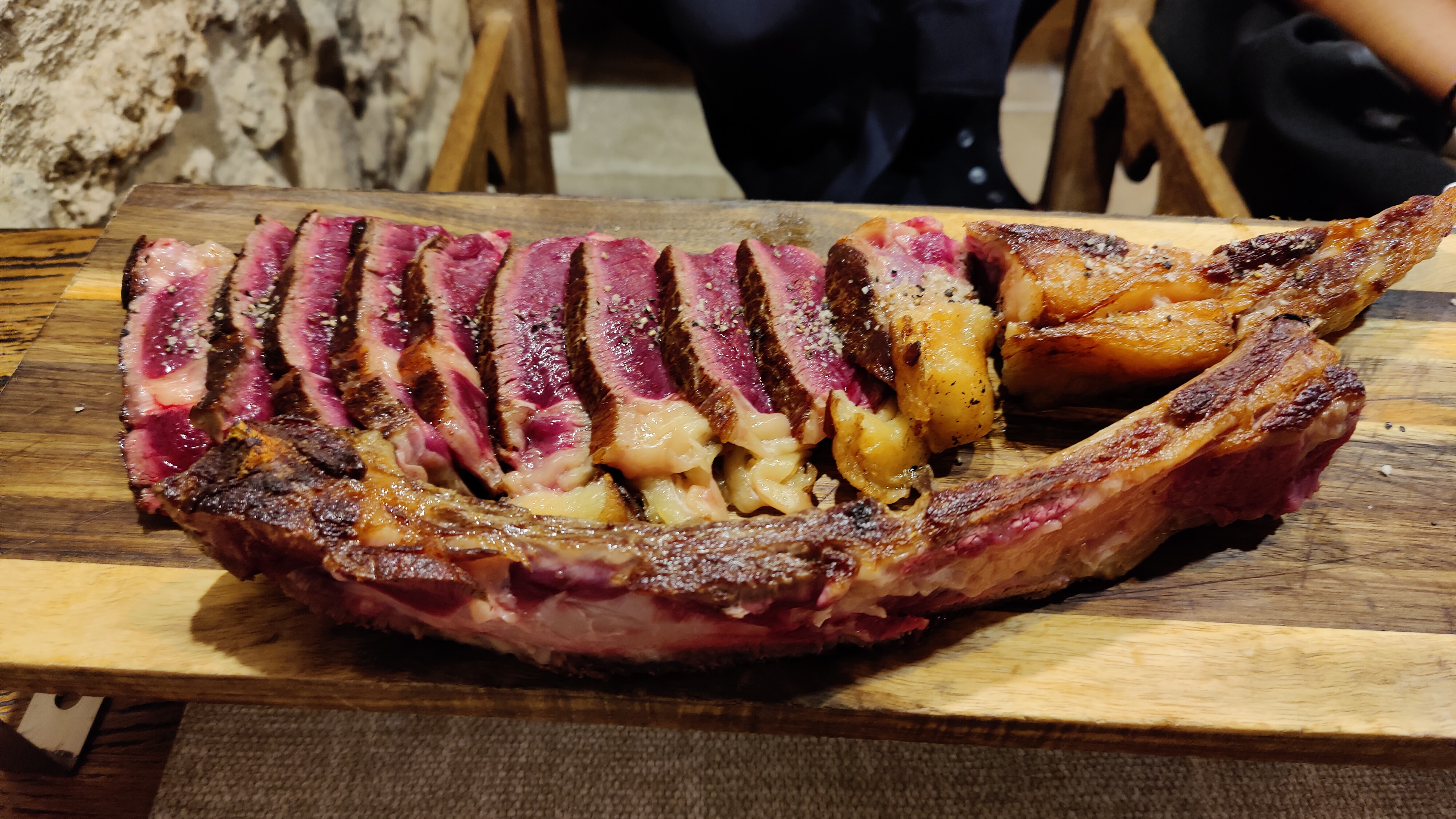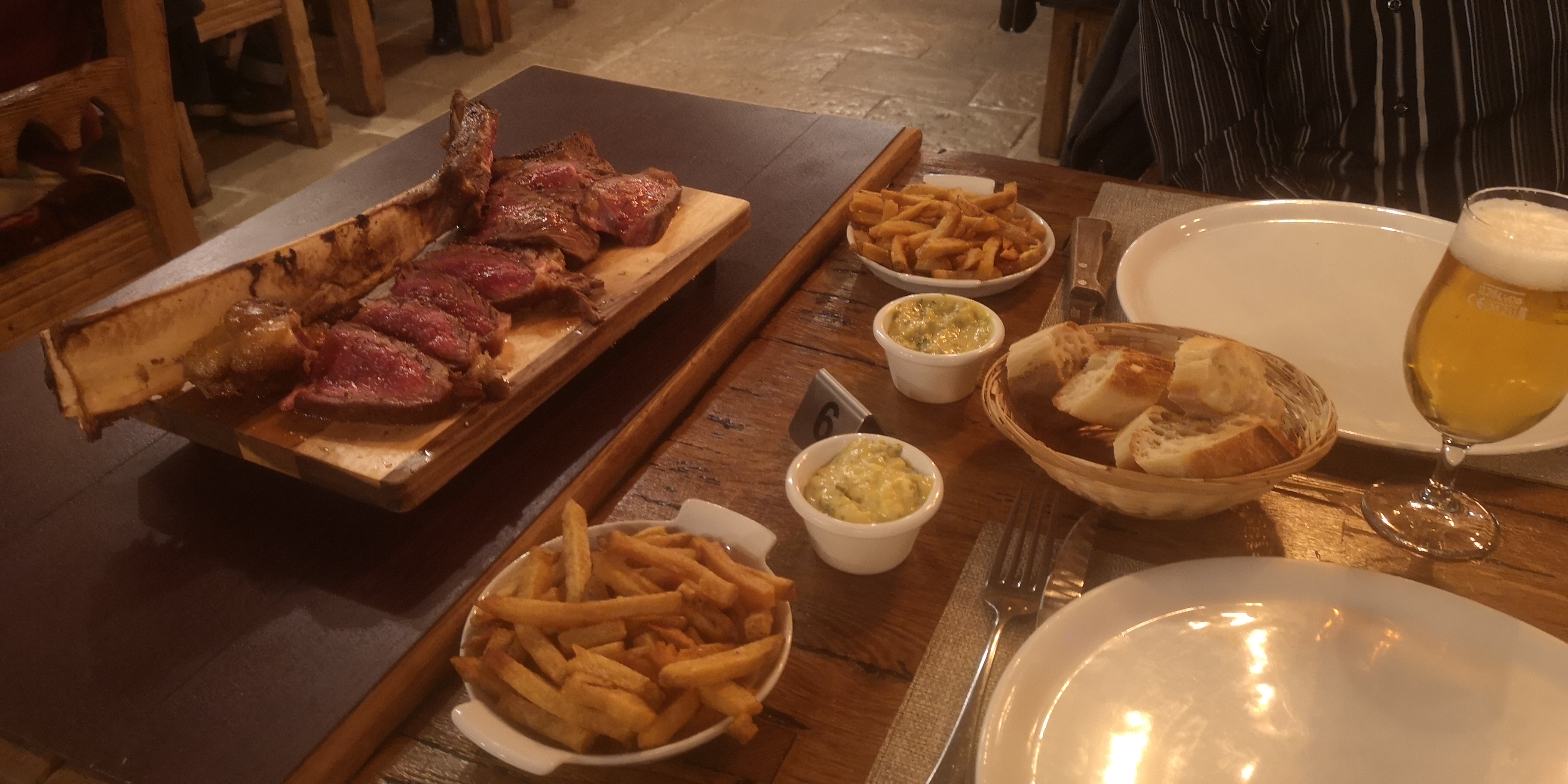 La viande est excellente et très bien cuite. La cuisson se fait sur le bord d'un grand brasero/cheminée en plein milieu du restaurant. C'est assez sympa à regarder. Les frites en revanche mériteraient d'être plus cuites. Le cadre est très sympa aussi, avec de la vieille pierre et l'environnement n'est pas bruyant.