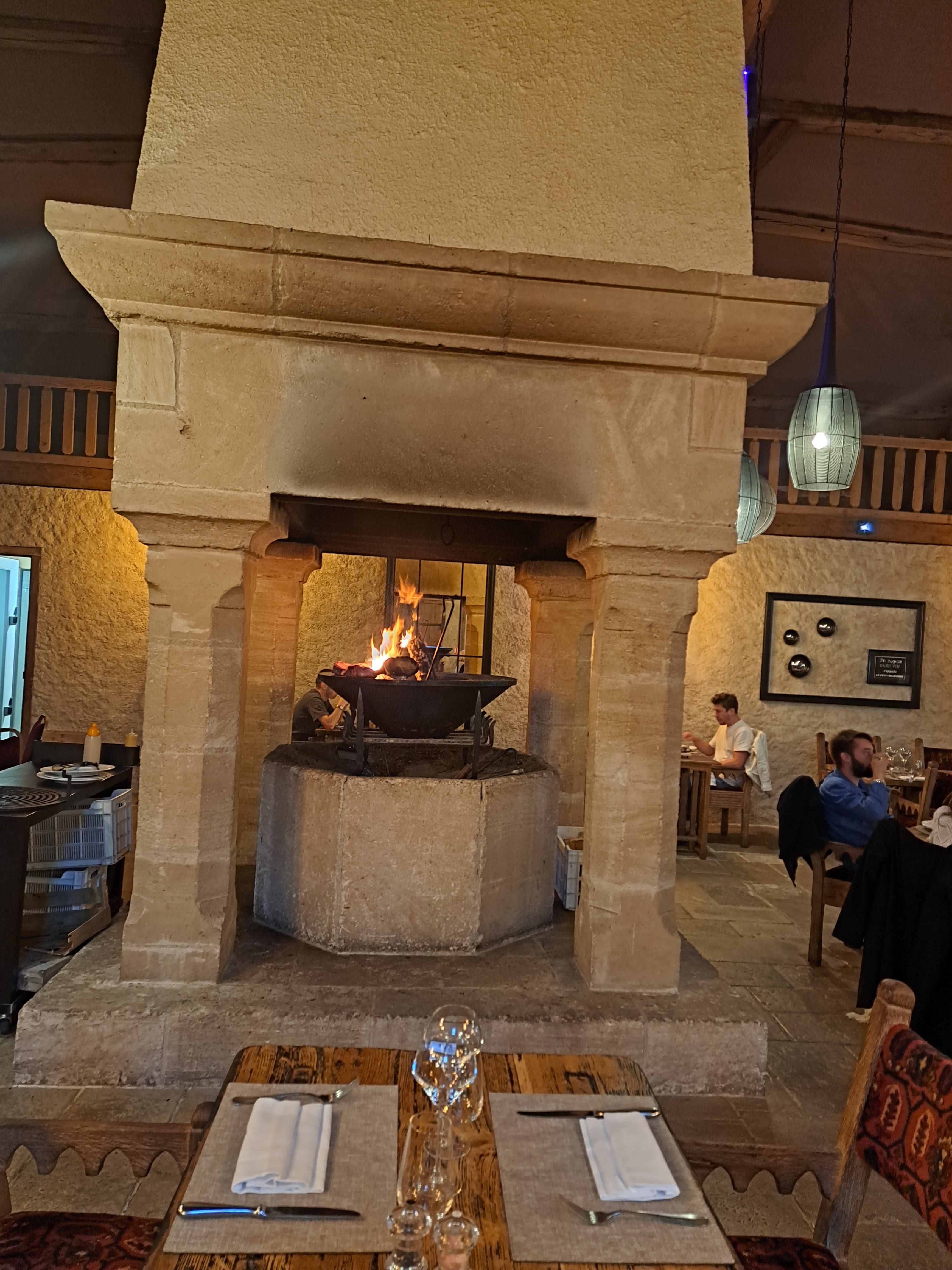 Accueil chaleureux dans un cadre magnifique et convivial datant du XIIIe siècle avec un grande cheminée centrale où le chef cuit la viande au feu de bois sous nos yeux, les plats sont très bon les produits de qualités. Nous avons passé un moment très agréable 👌