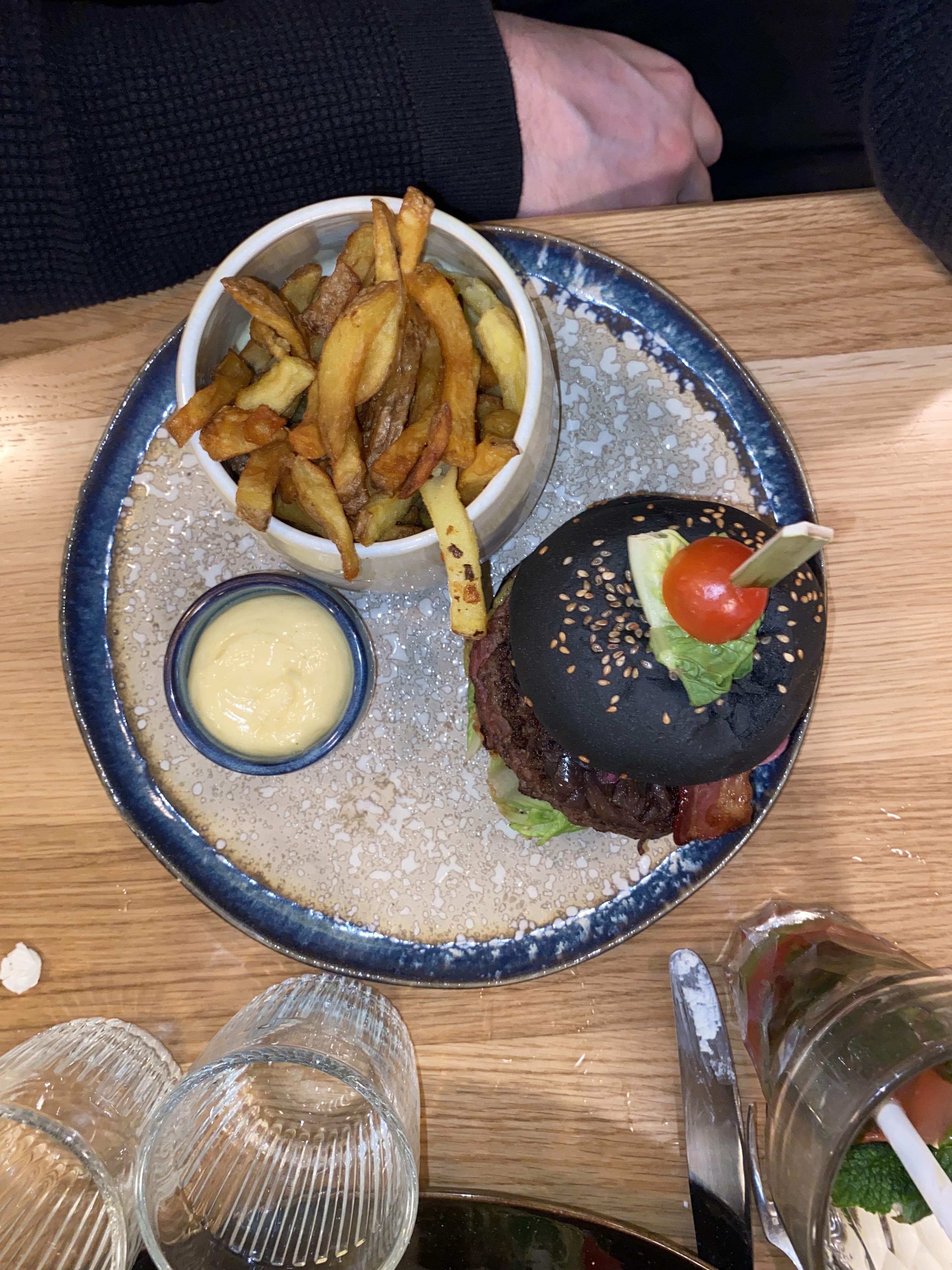 Déco et cadre tres sympa entree bien mais hamburger froid salade pas assaisonnée frites trop cuites dommage a corriger