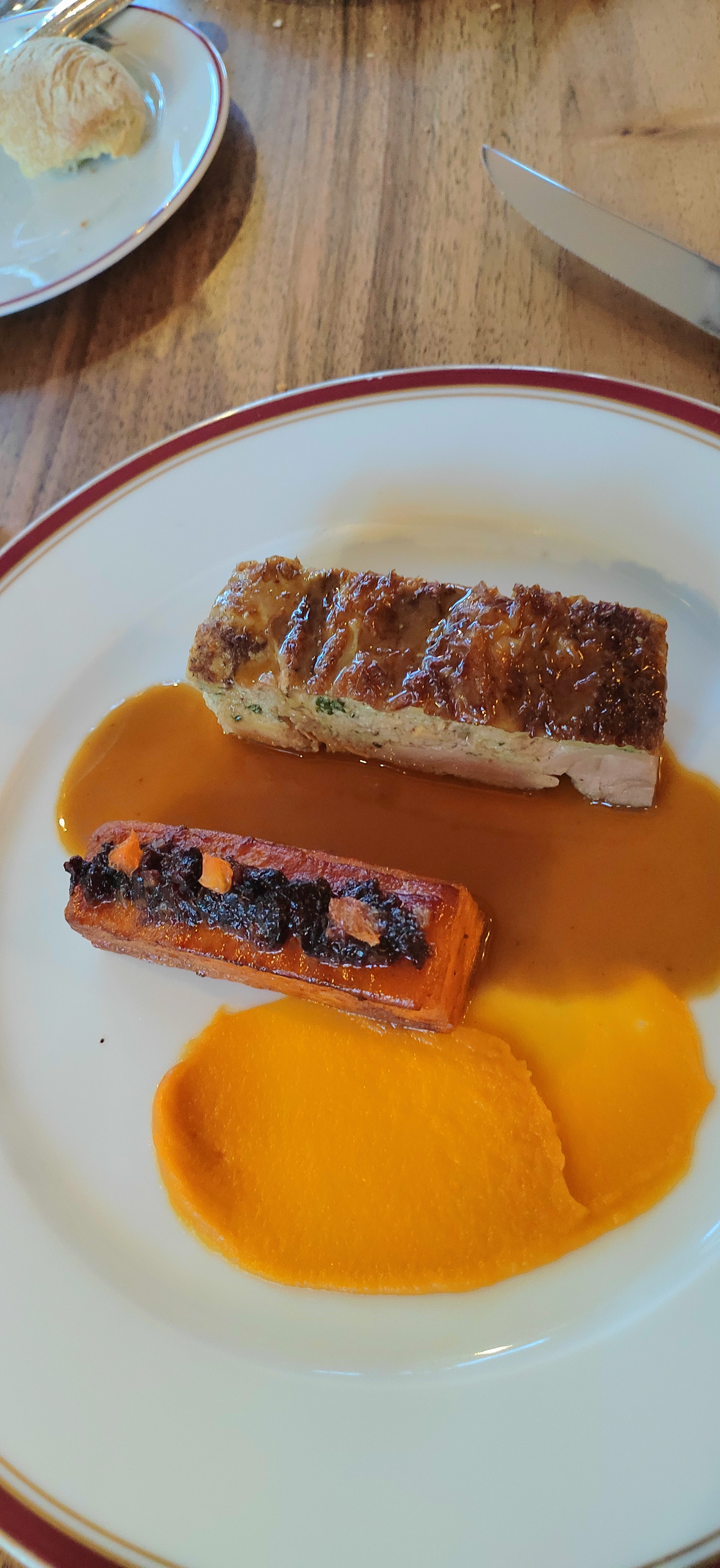 Si je devais résumé je dirais incroyable le lieu est magnifique les plats aussi le service est vraiment de qualité Ce restaurant me rappele beaucoup de souvenirs Je conseille vraiment aux personne qui y vont de prendre la purée elle est incroyable je pourrai revenir au restaurant juste pour celle ci la vue est très sympa aussi en salle sur le jardin