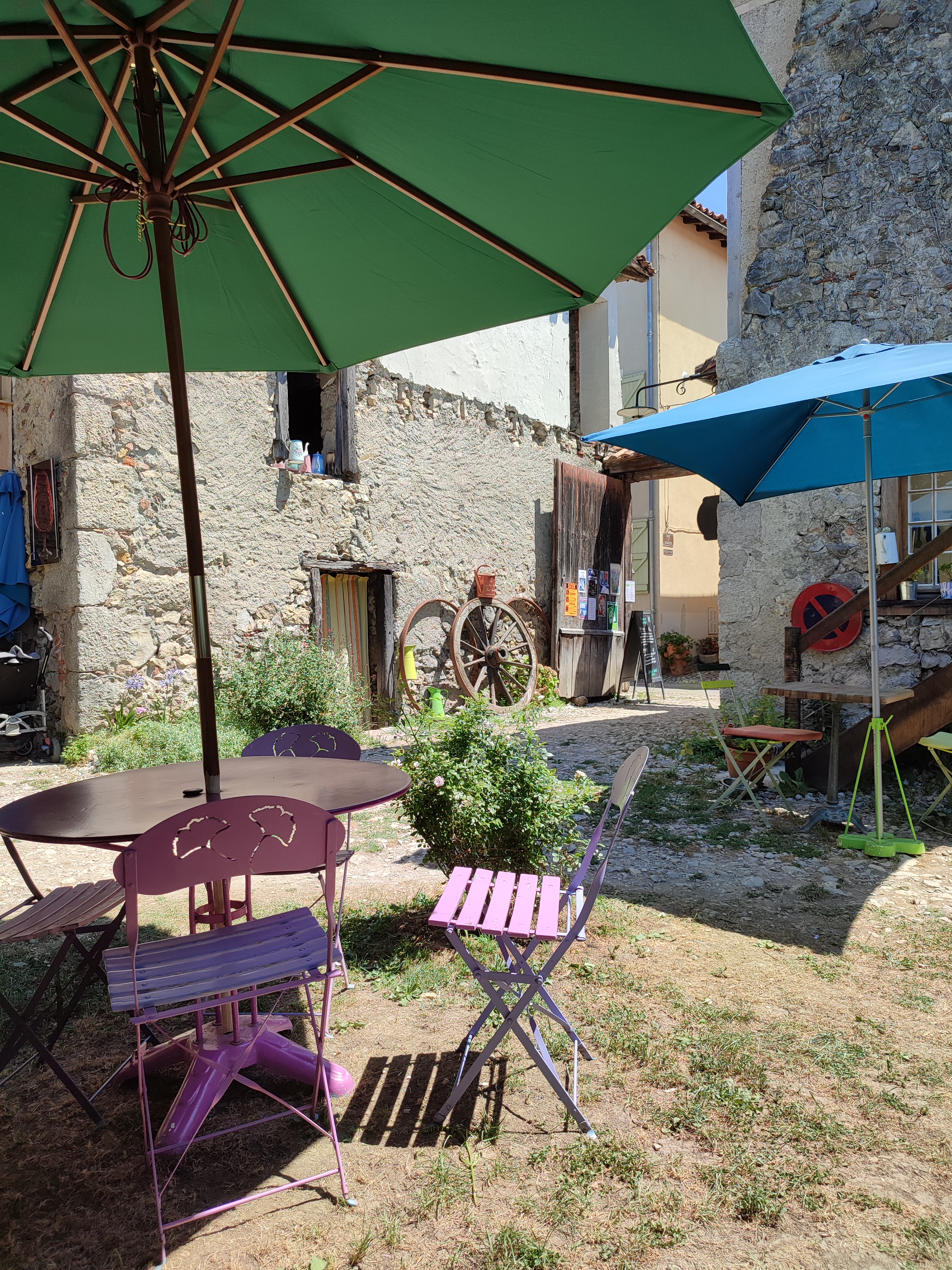 Du champ à l'assiette, venez déguster de délicieux plats originaux dans un cadre très agréable, ombragé, tenant lieu d'exposition aux artistes locaux. L'équipe fort sympathique vous fera également découvrir les produits transformés par leurs soins : biscuits, confitures, sels arrangés, tisanes, etc. Je recommande vivement !